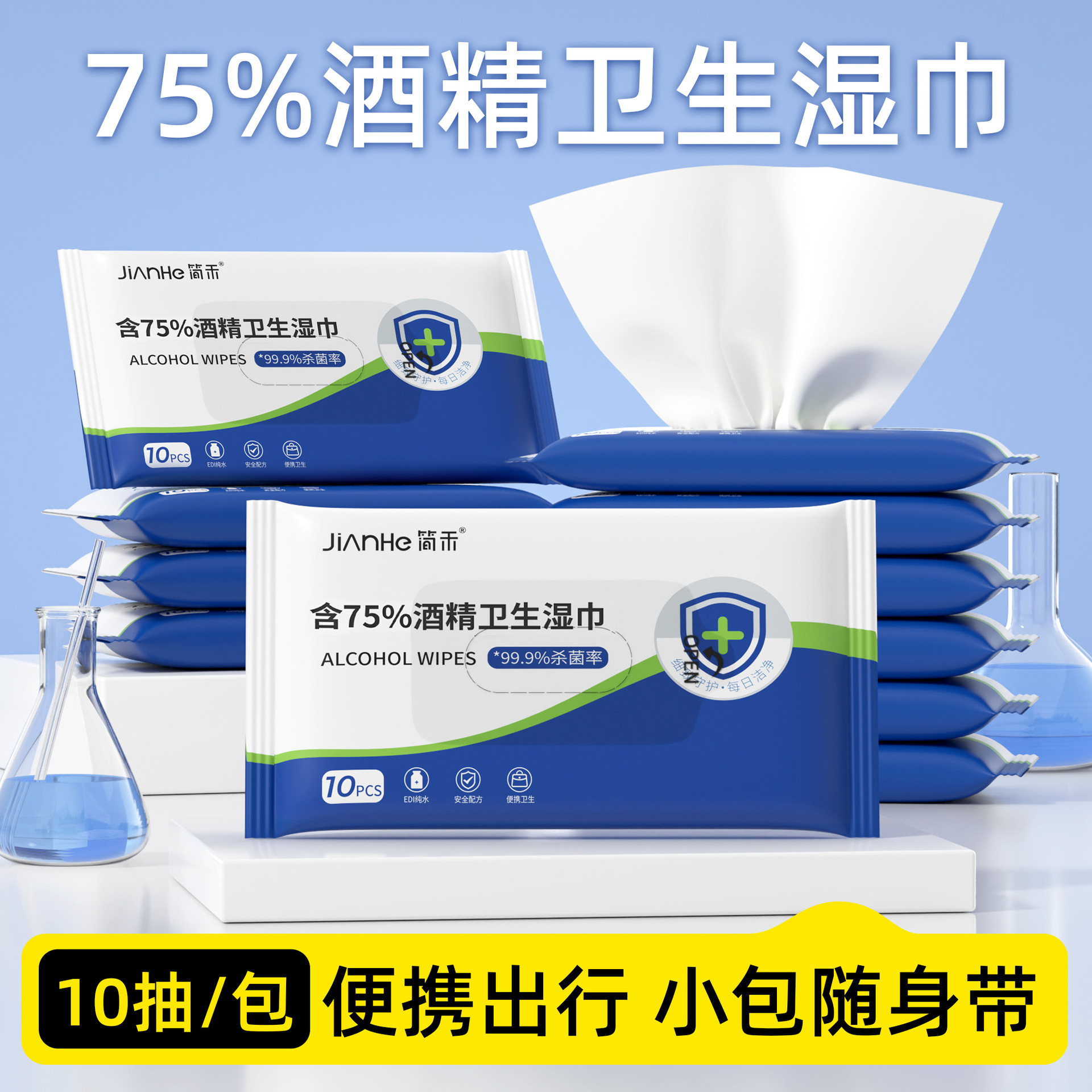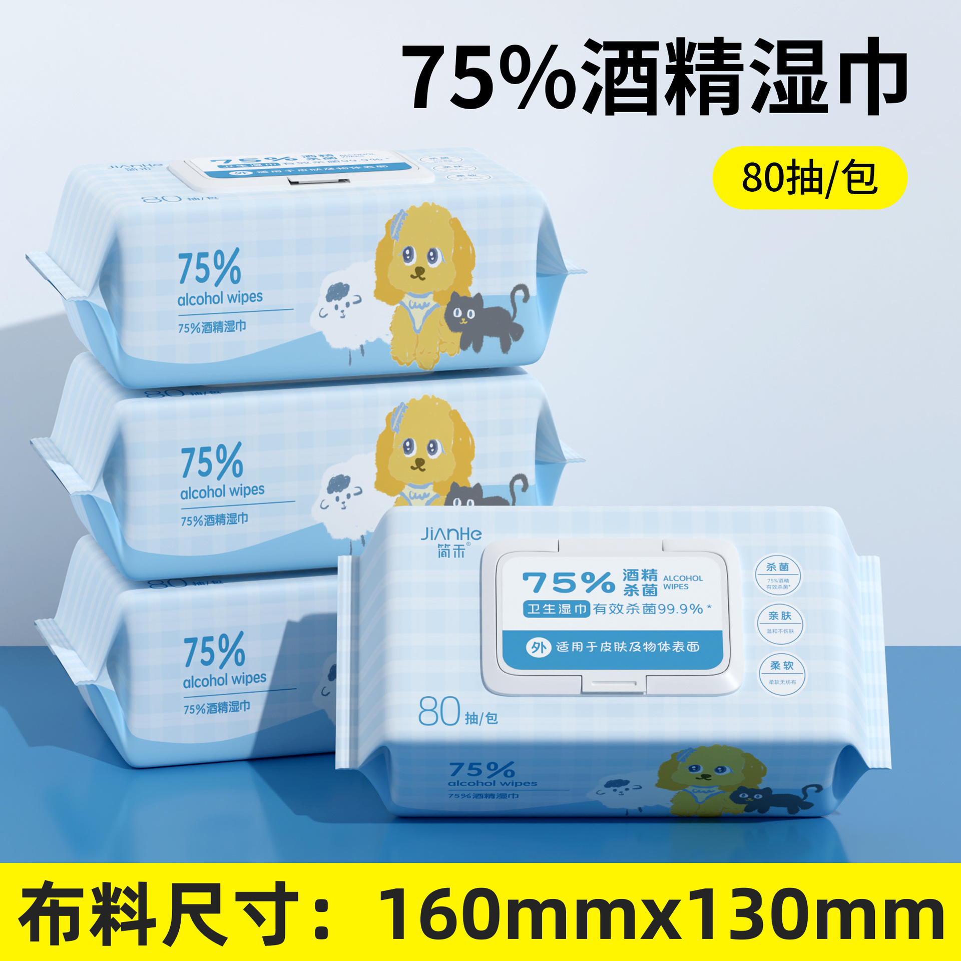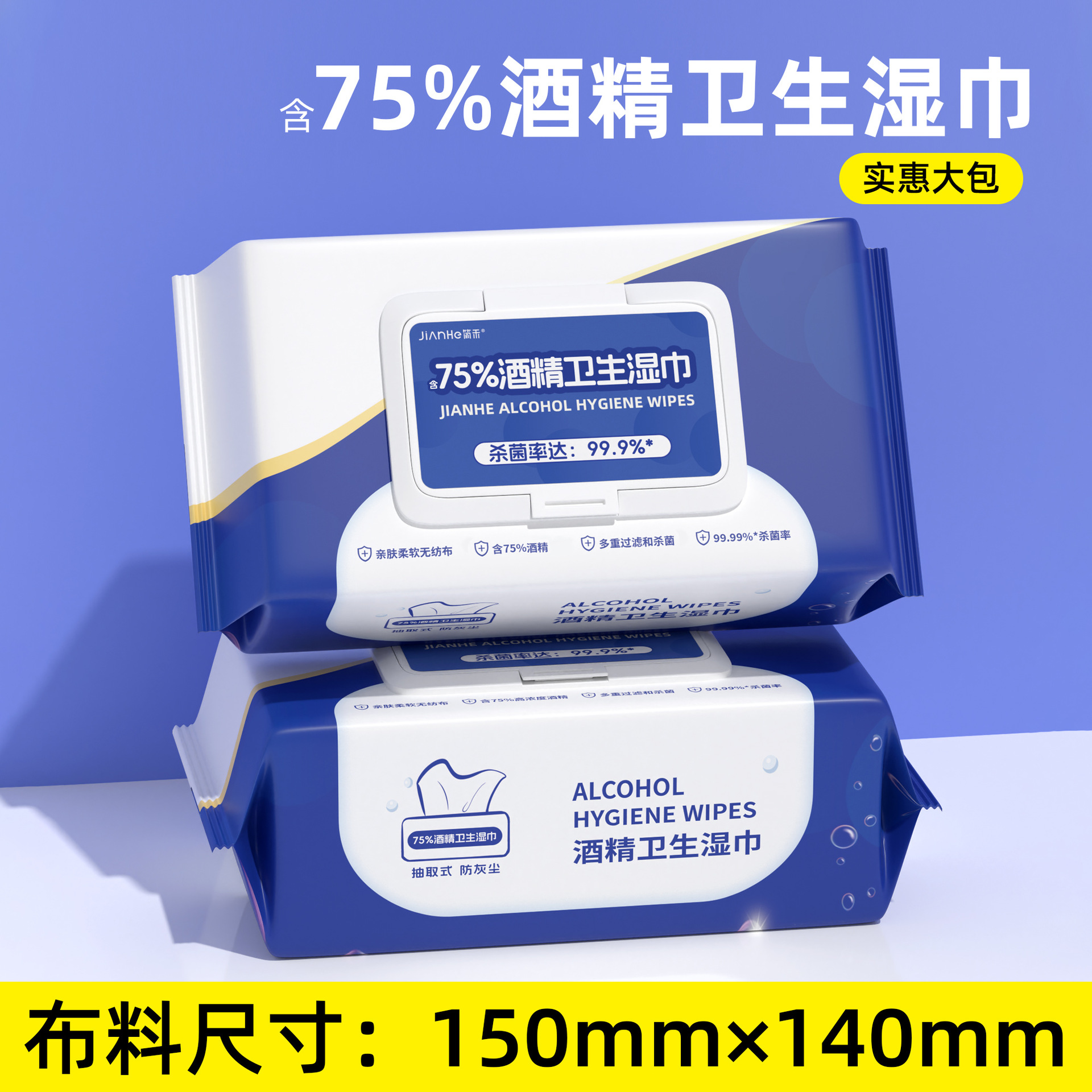 简禾酒精湿巾75度大包消毒棉片湿纸巾一次性独立包装清洁义乌家用