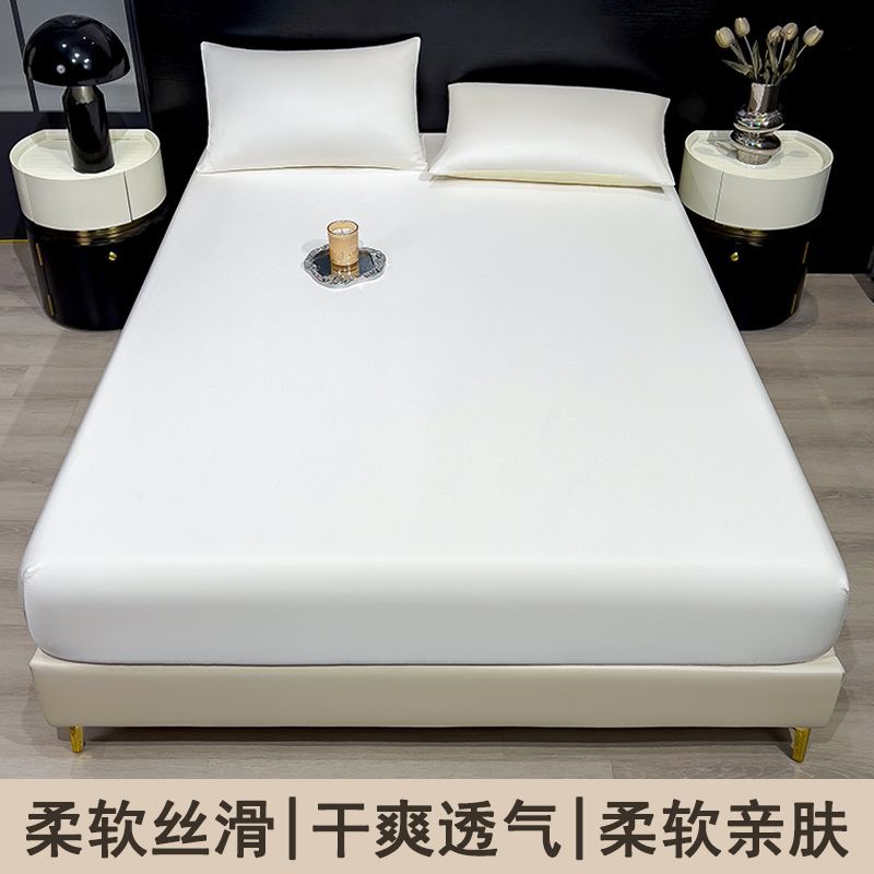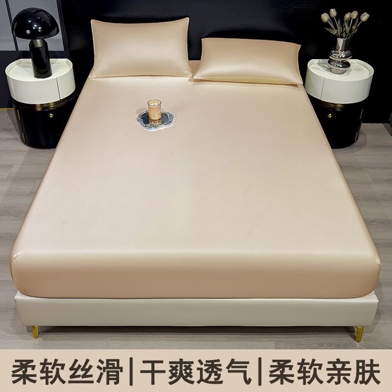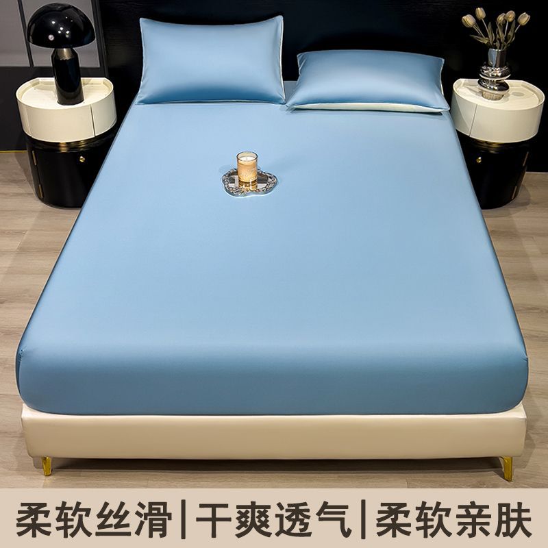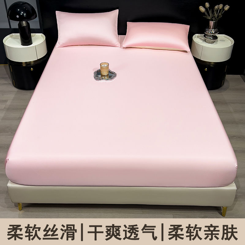 26新款冰丝床笠单件夏季纯色床罩全包床单三件套夏天降温凉快床单