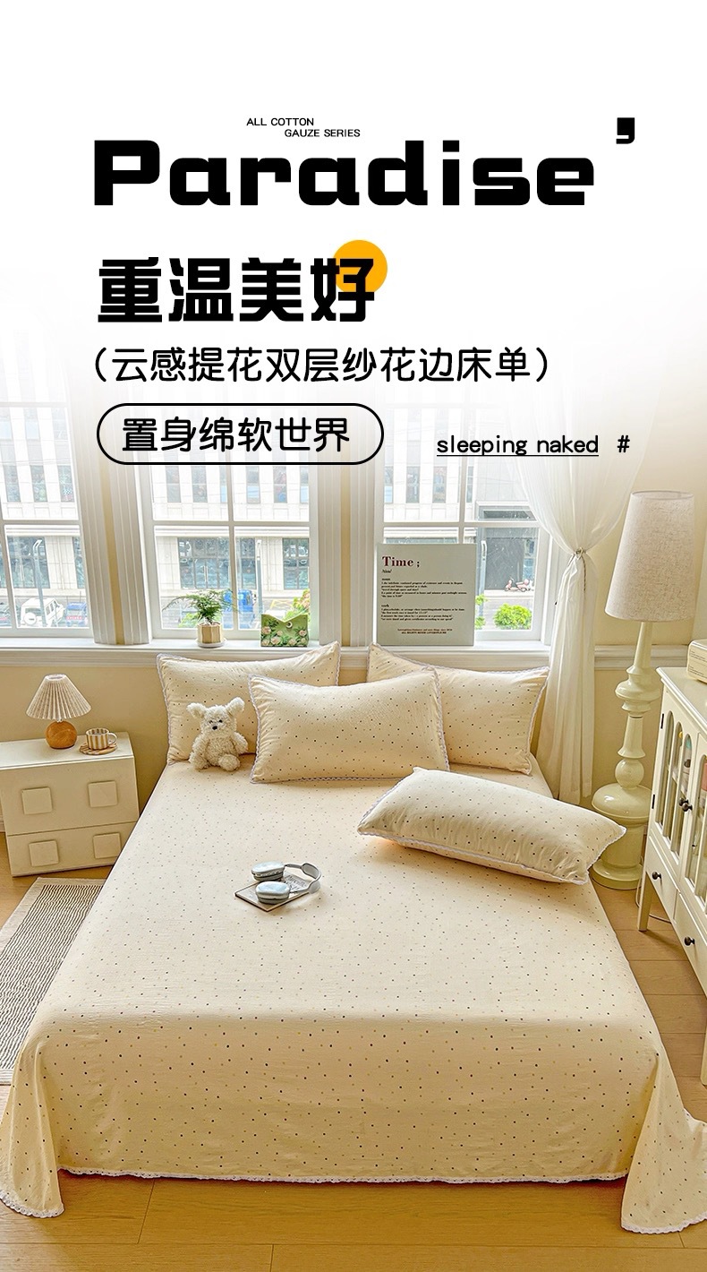 法式轻奢花边床单亲肤柔软时尚新款公主风单人学生宿舍床单三件套