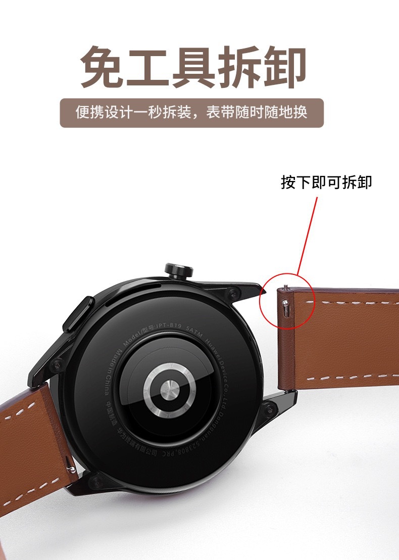 适用华为46mm皮质手表带GT3/45表带22mm20mm智能手表皮表带平尾款