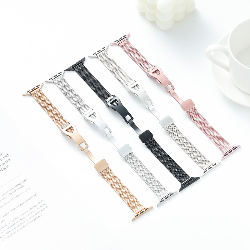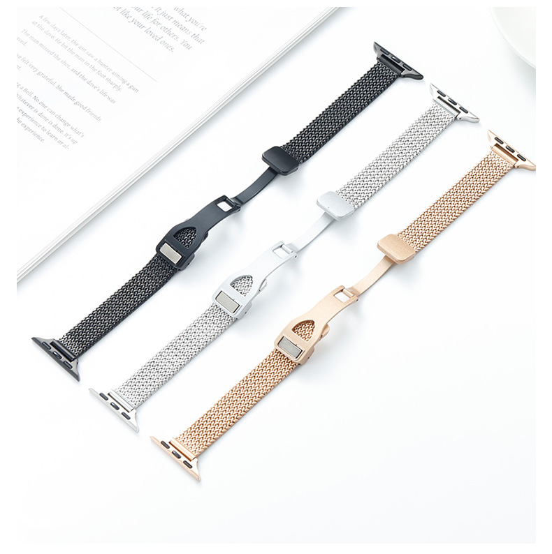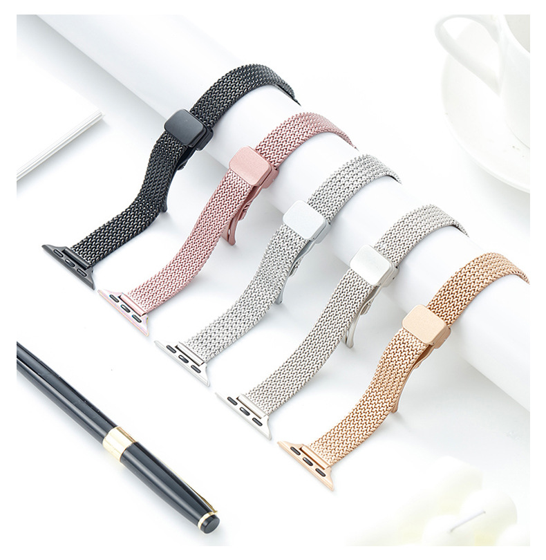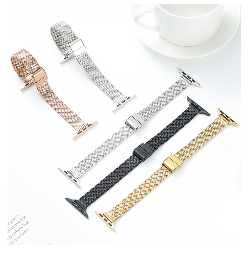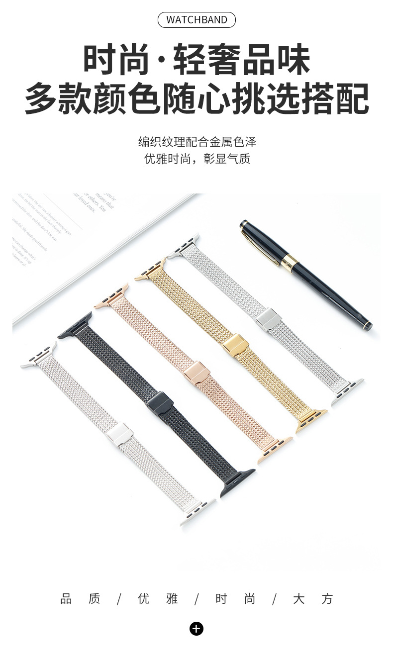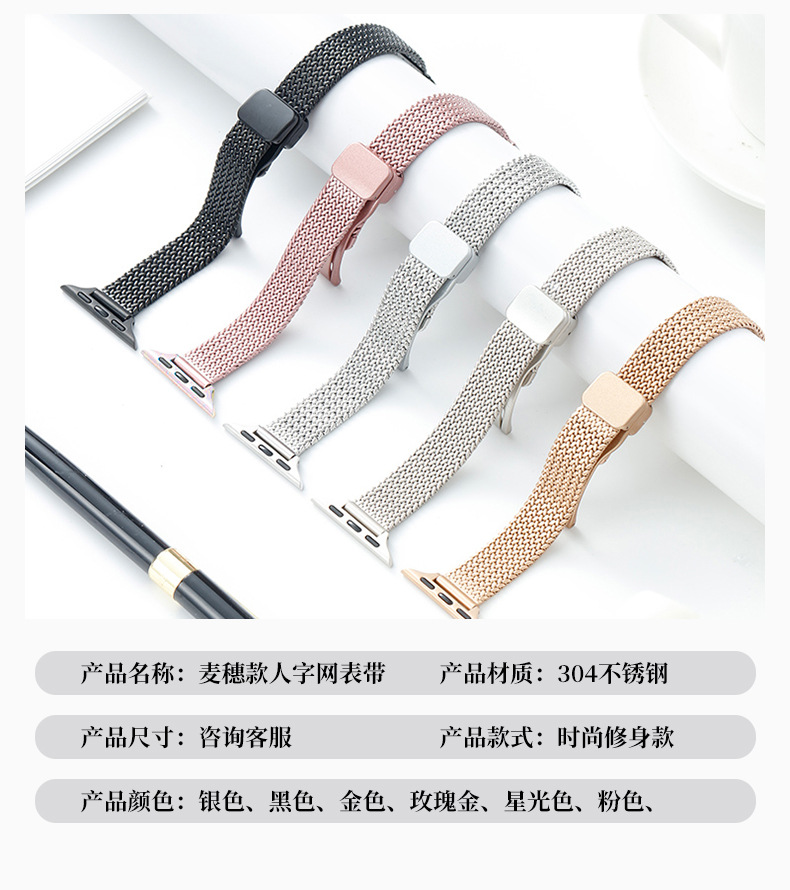 适用苹果手表带iwatch麦穗人字网磁吸扣表带女款不锈钢手表带小米