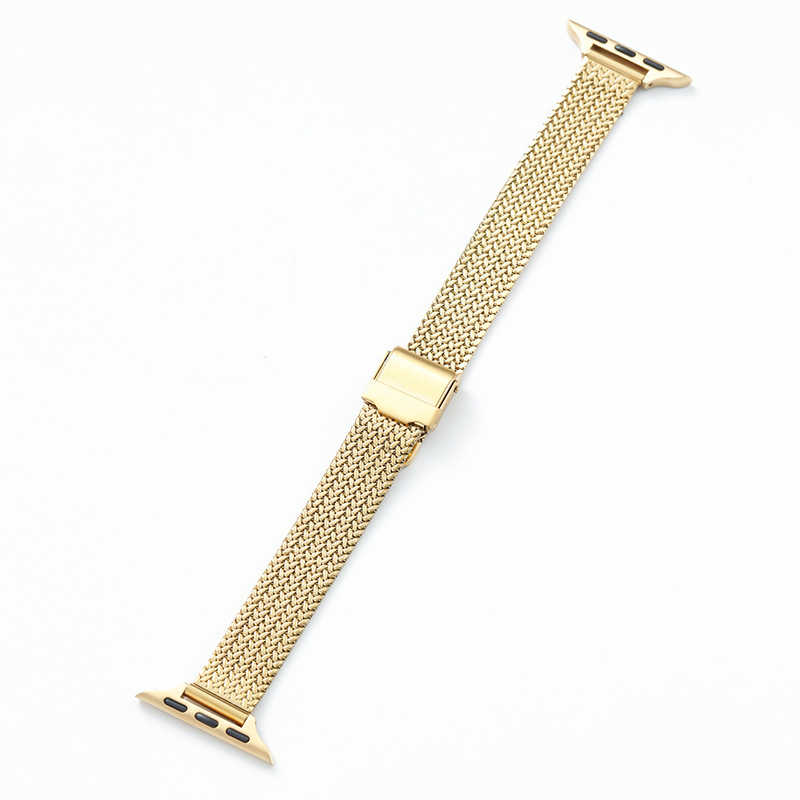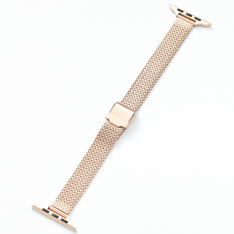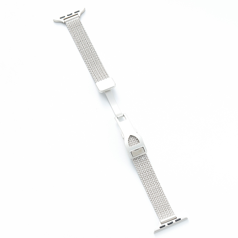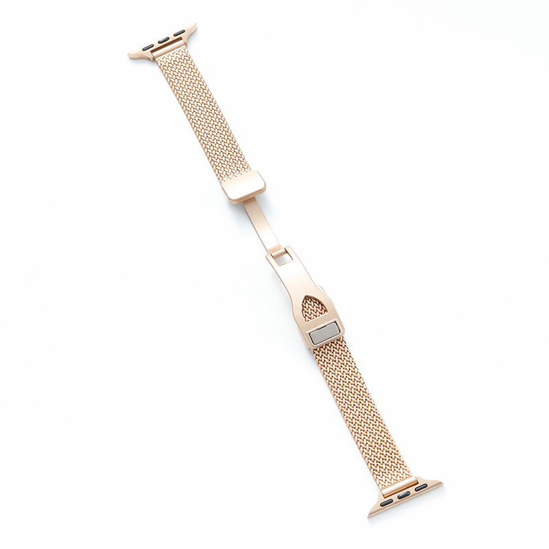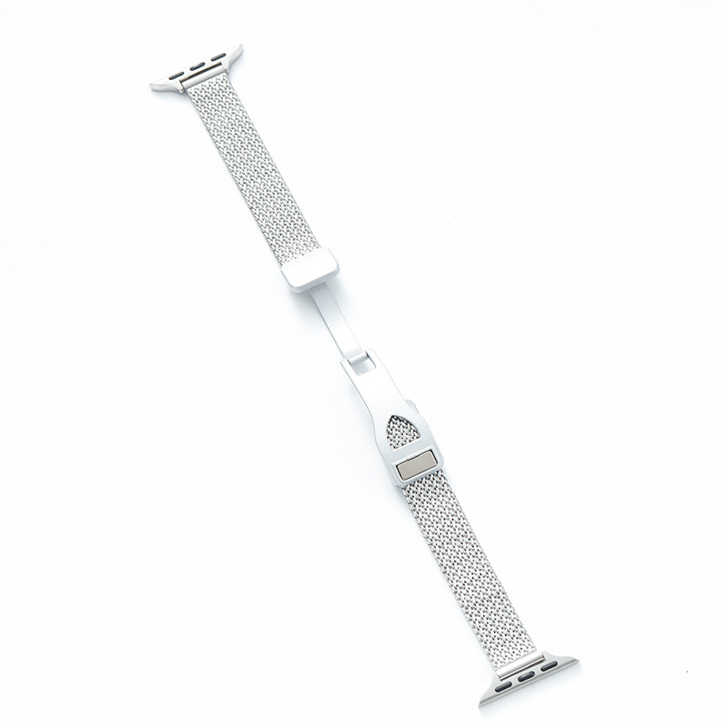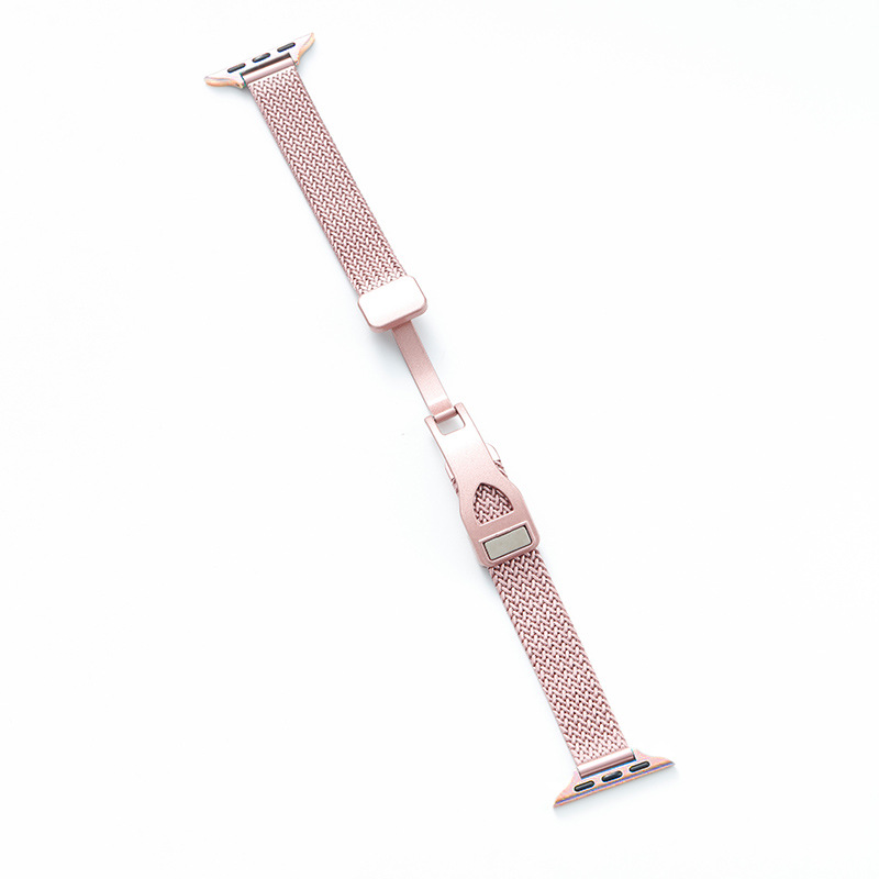 适用苹果手表带iwatch麦穗人字网磁吸扣表带女款不锈钢手表带小米
