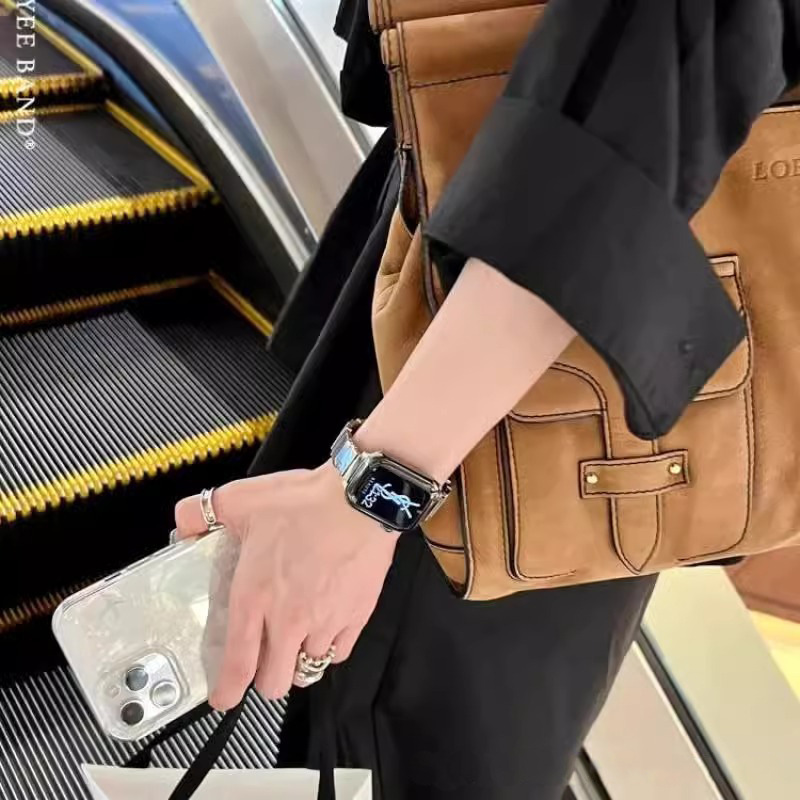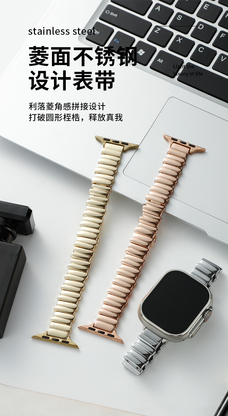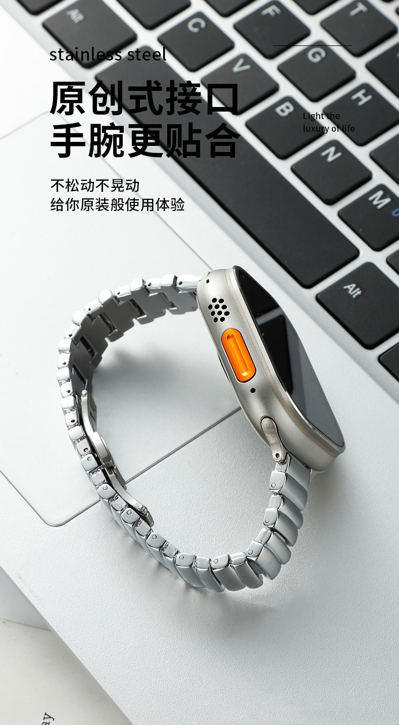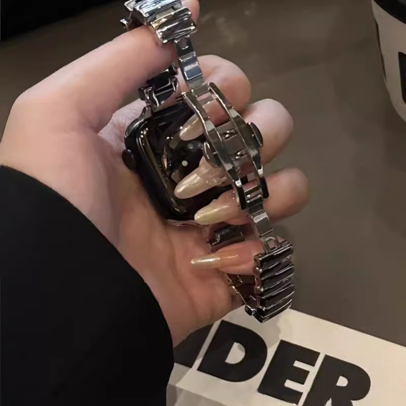 适用AppleWatch金属表带蝴蝶扣S78910苹果手表带小米手环10表带