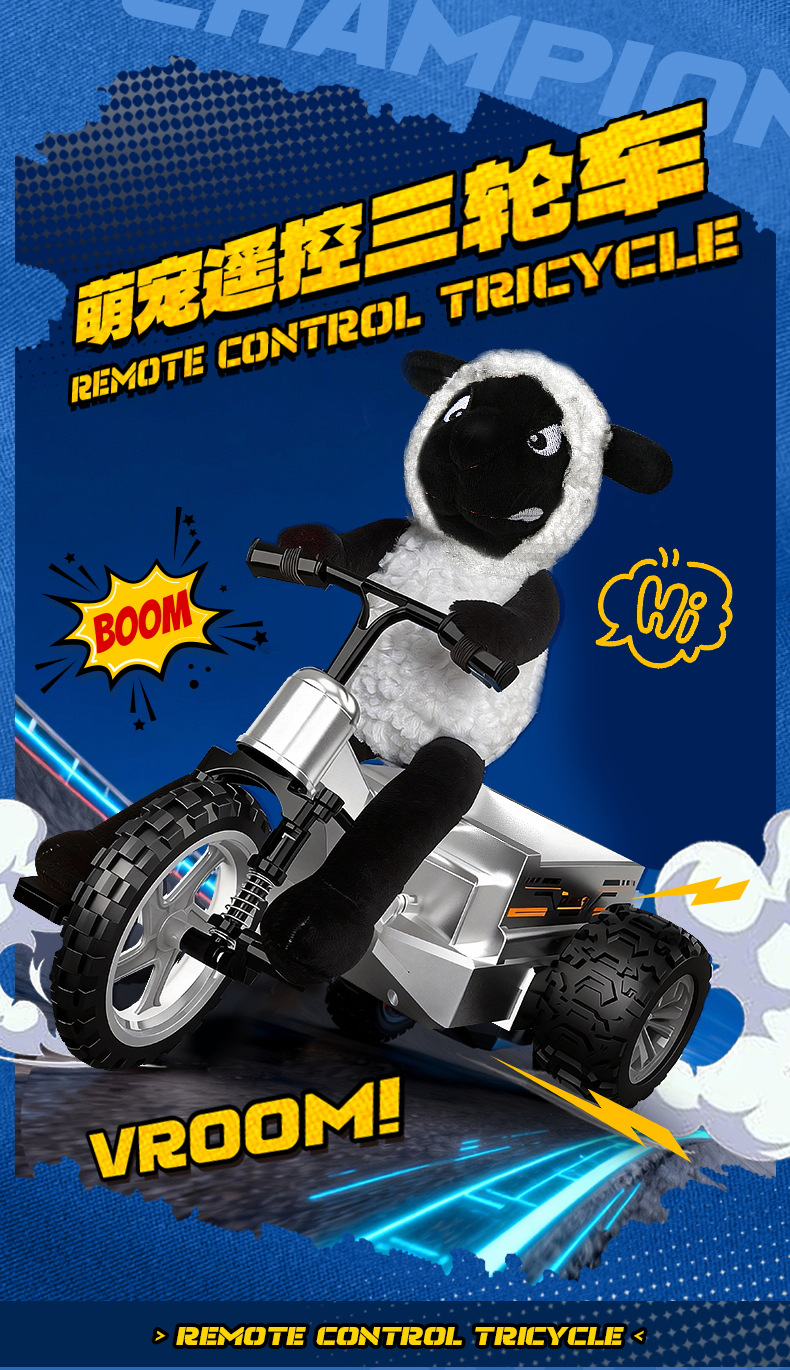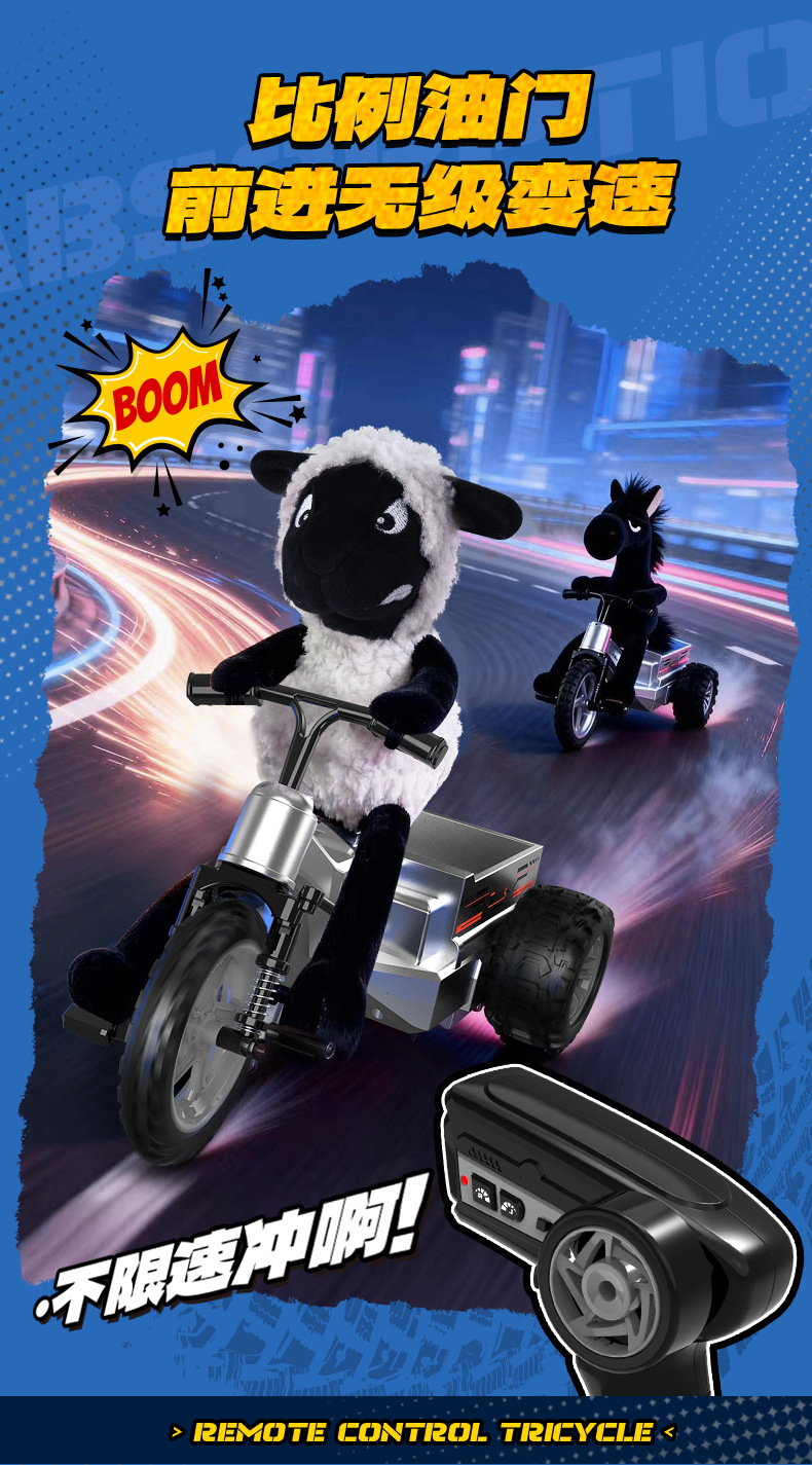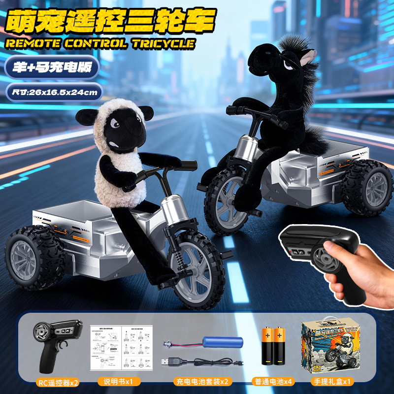 rc小羊三轮遥控车黑马漂移特技车毛绒男女孩玩具马年礼物春节礼品