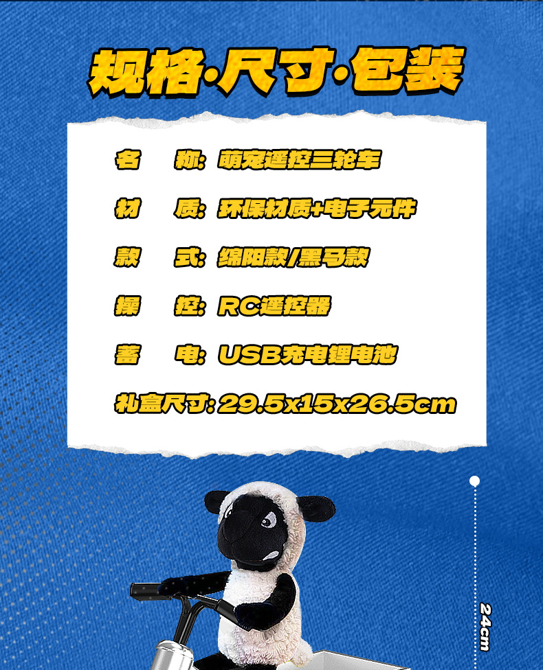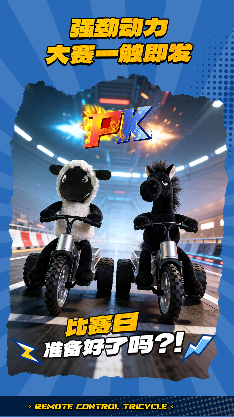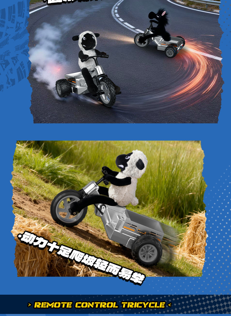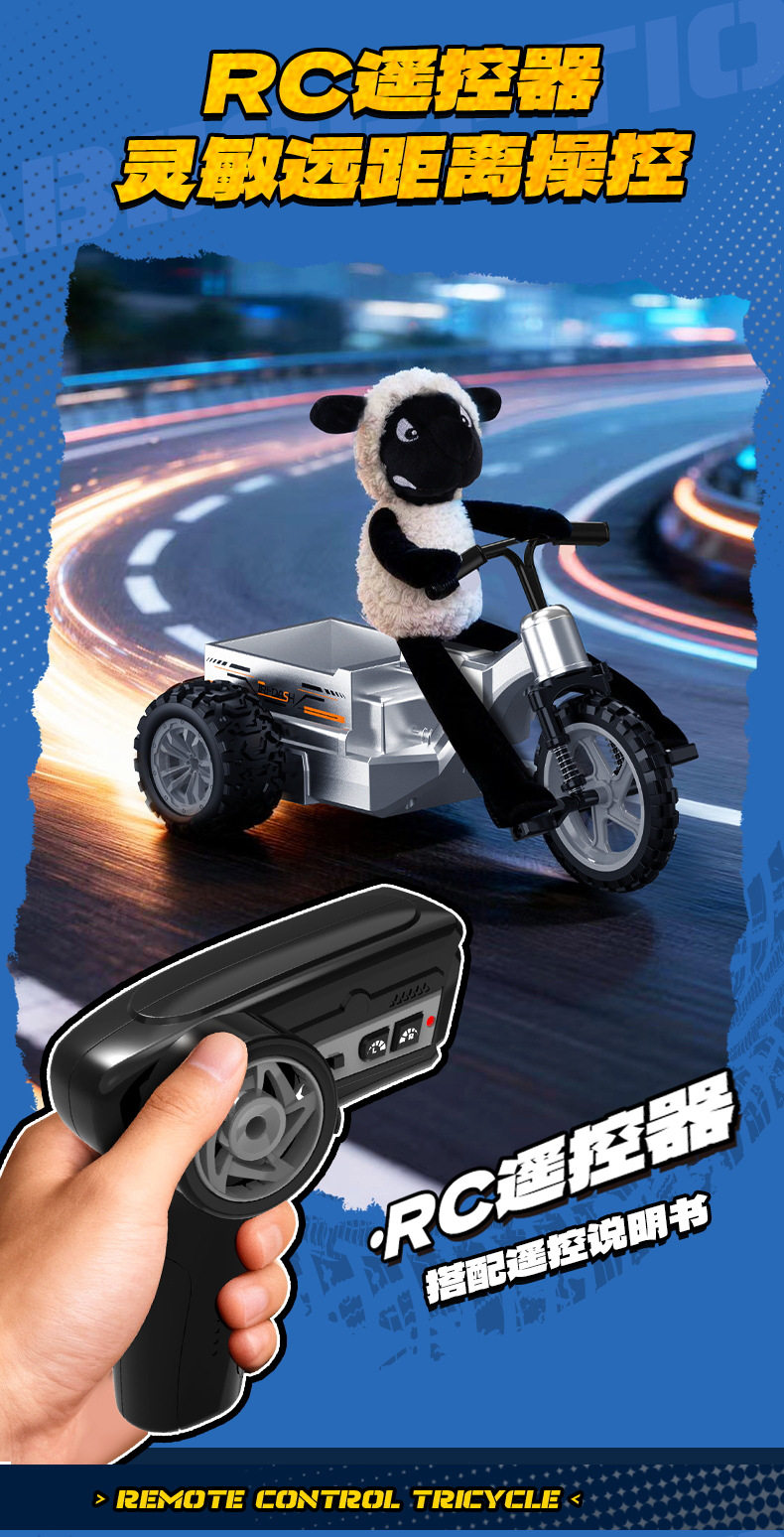 rc小羊三轮遥控车黑马漂移特技车毛绒男女孩玩具马年礼物春节礼品