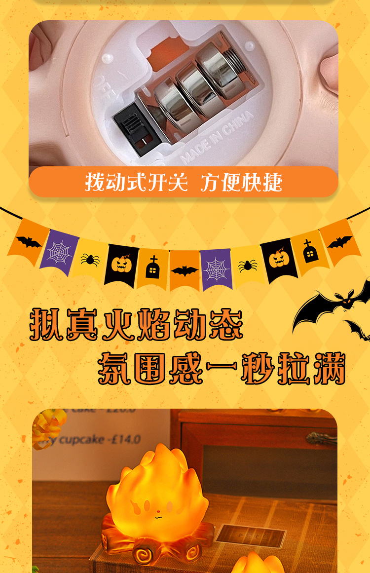 创意新款篝火小夜灯led电子蜡烛元宵节送儿童礼物房间装饰小摆件