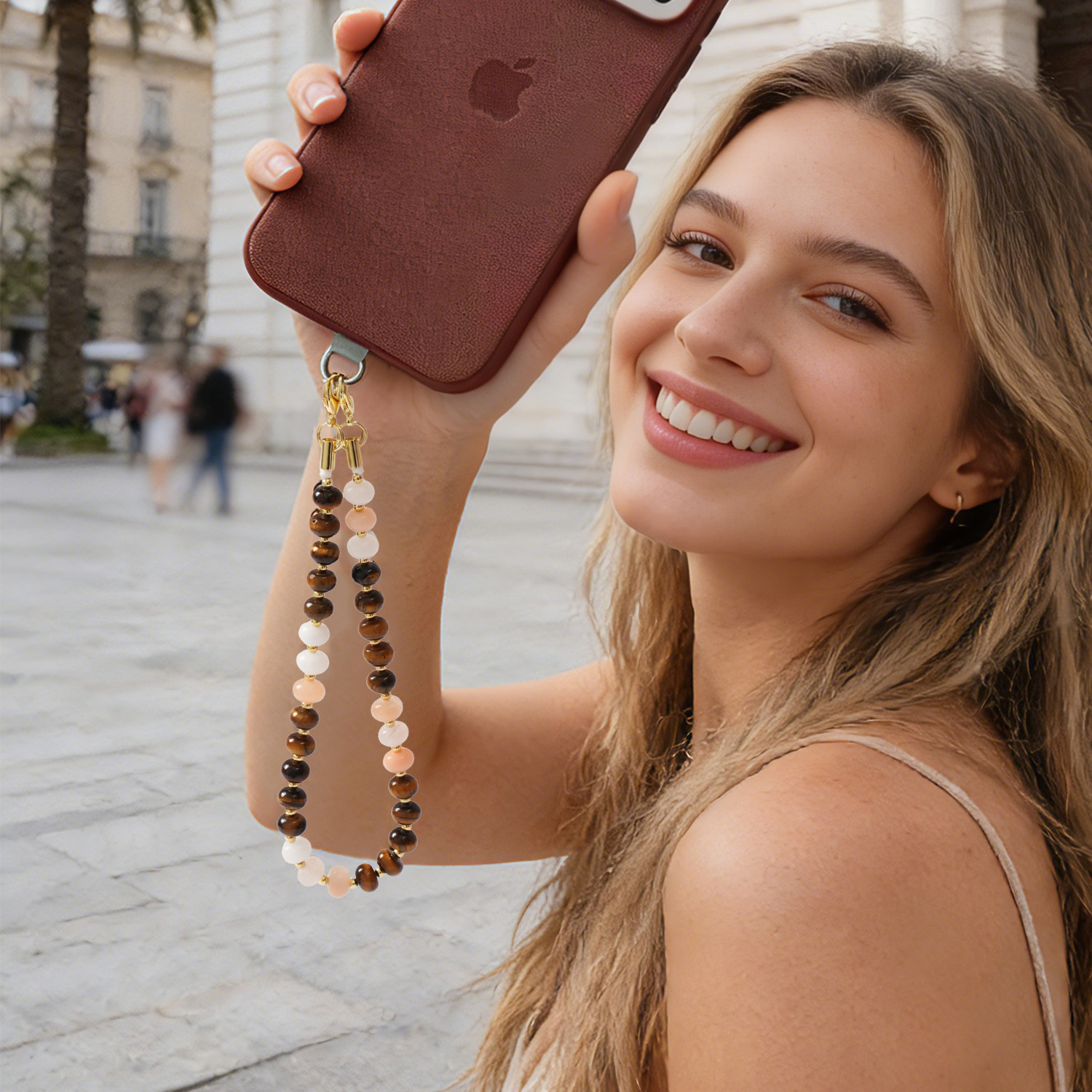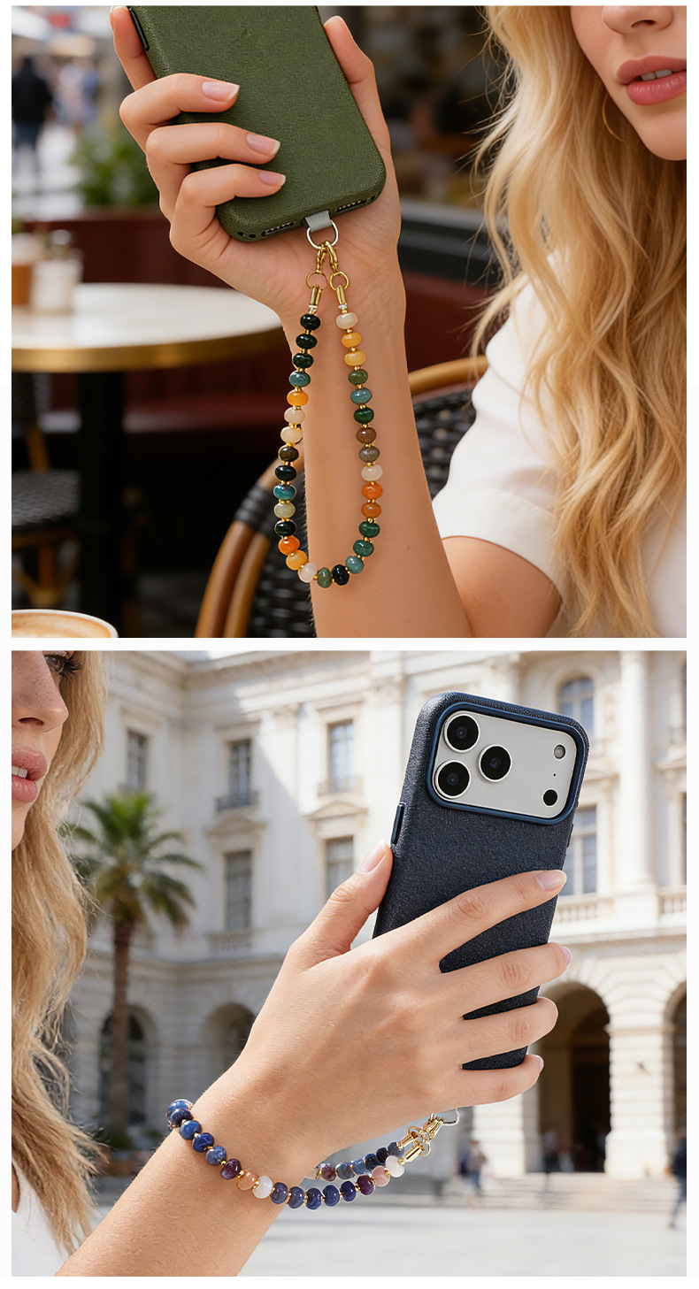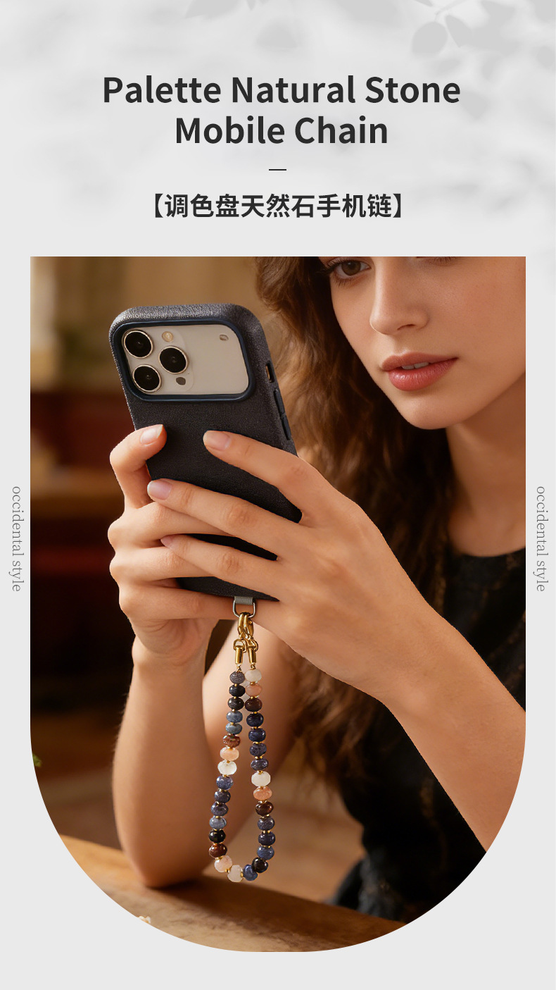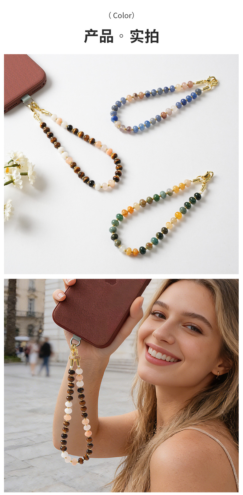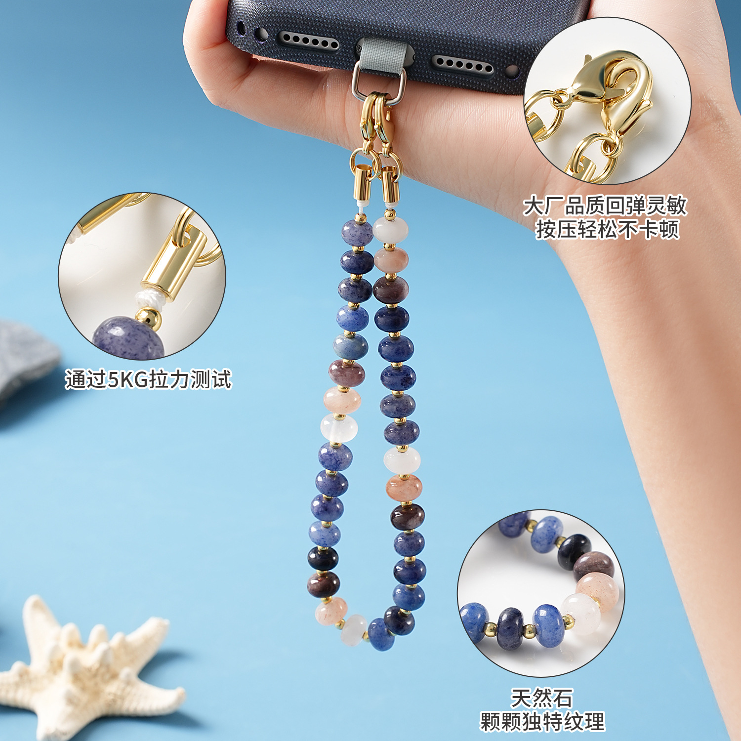 亚马逊新款天然石手机链原创高级感欧美个性街头风防丢手机挂绳女