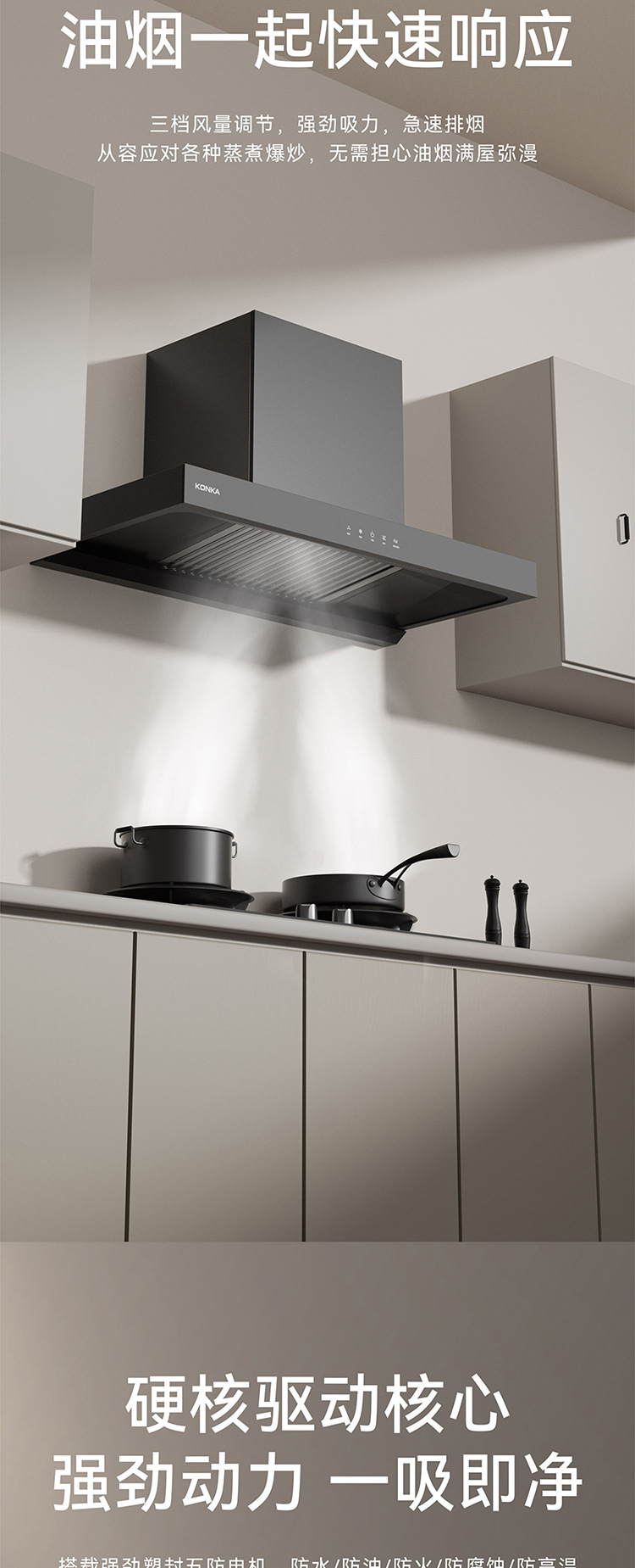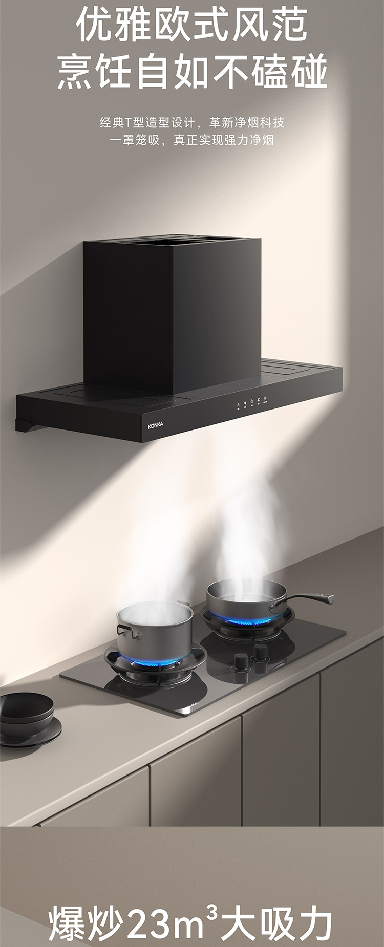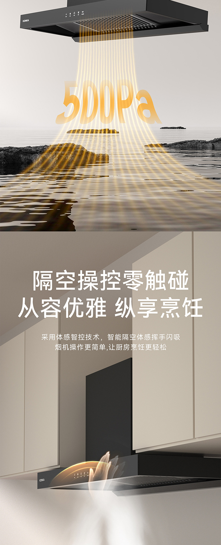 康佳厂家直销低噪音顶吸大吸力油烟机家用厨房自清洗抽油烟机批发