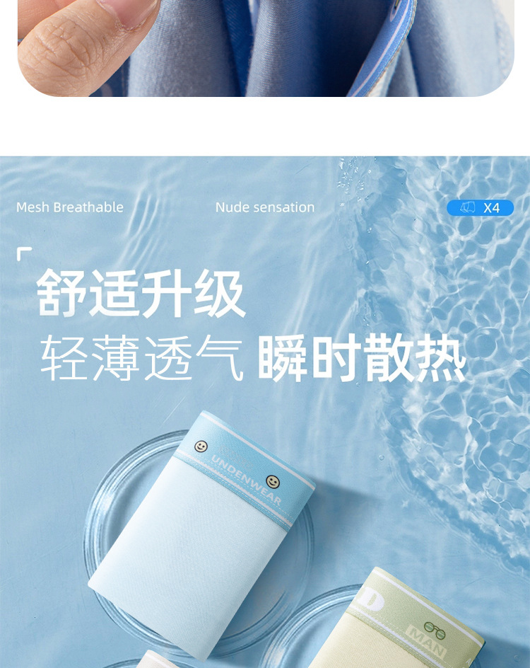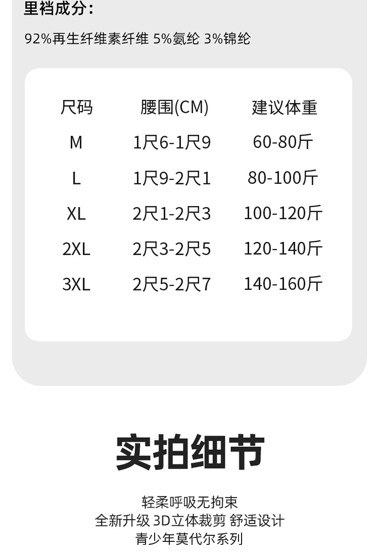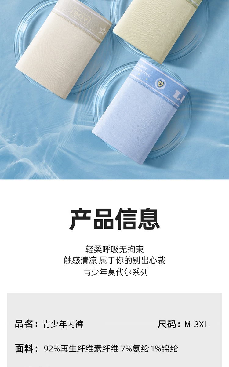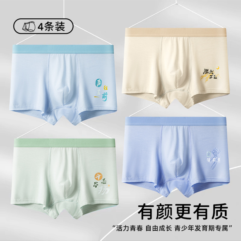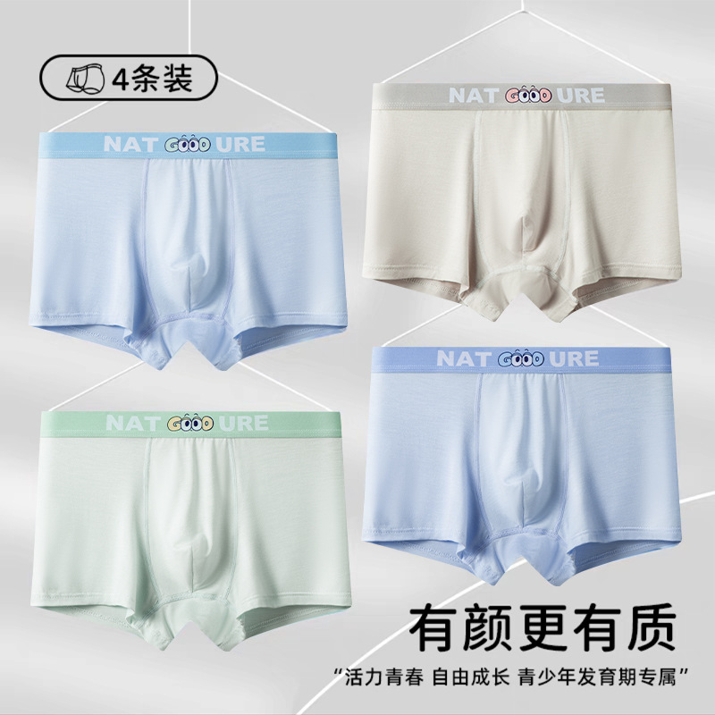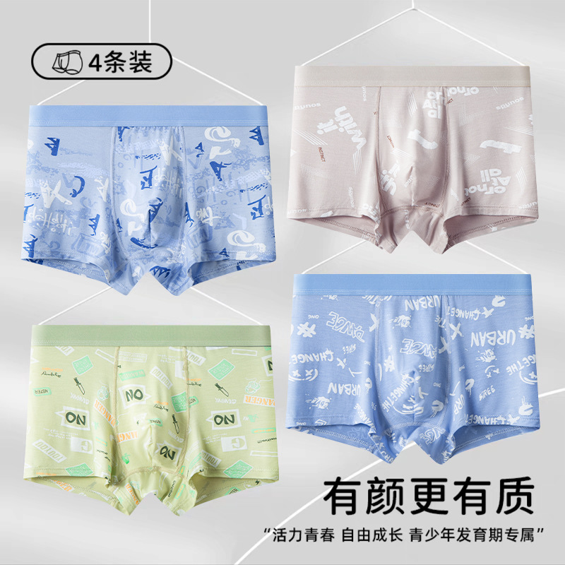 【4条装】青少年内裤莫代尔平角短裤10A级透气发育期四角裤衩