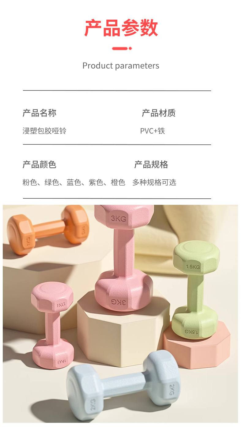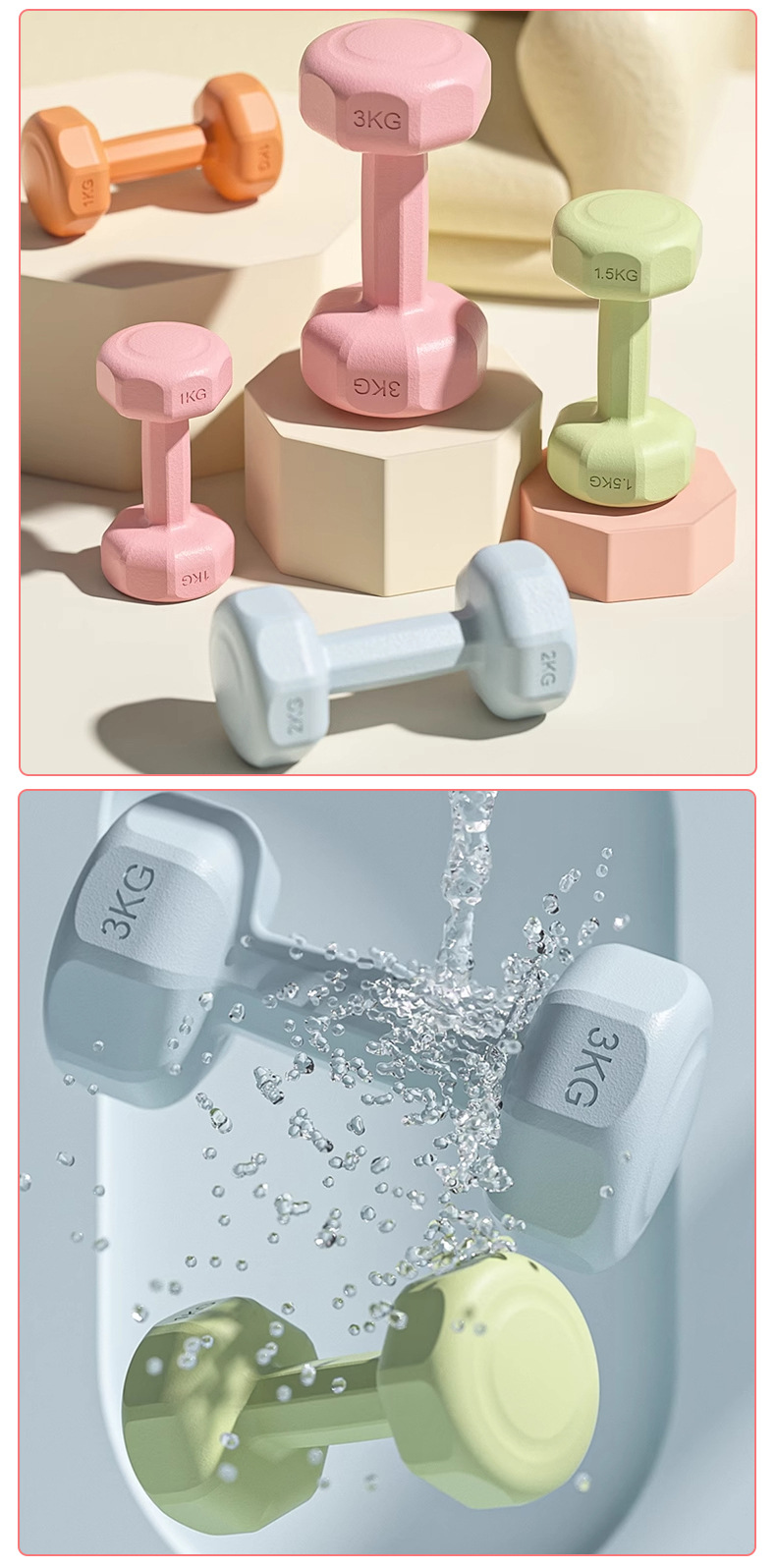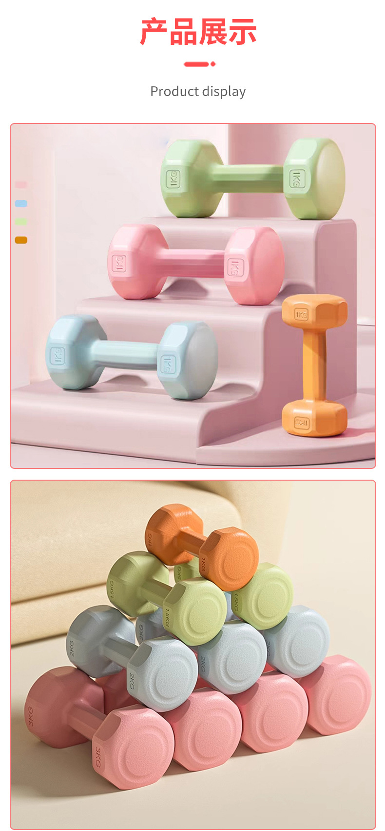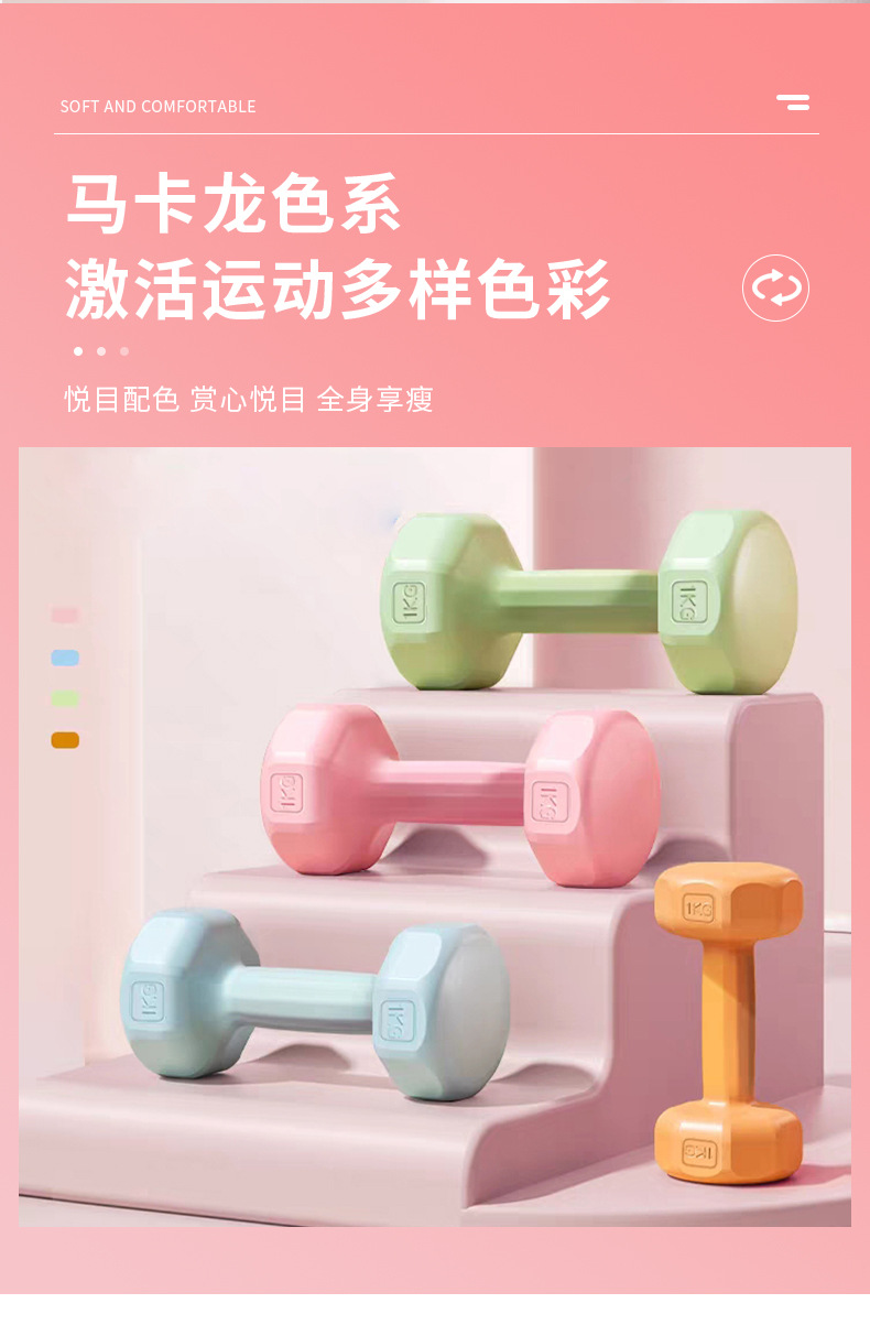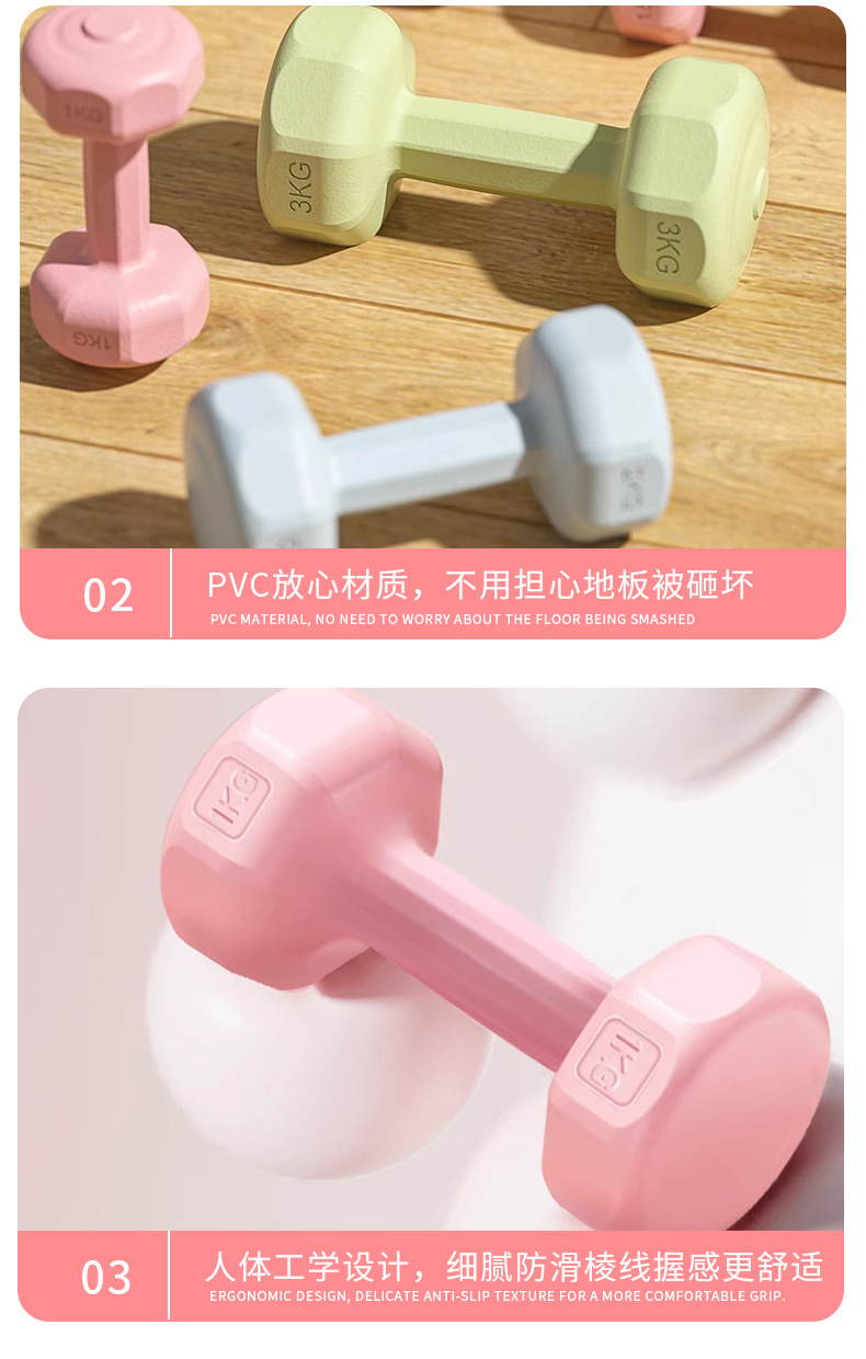 运动pvc包胶哑铃女士健身家用器材六角儿童练臂肌瑜伽哑铃厂