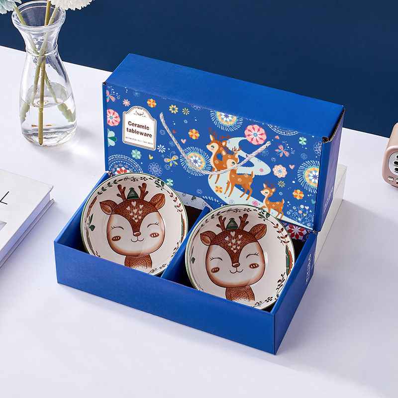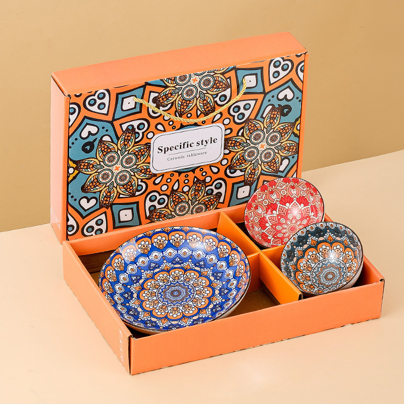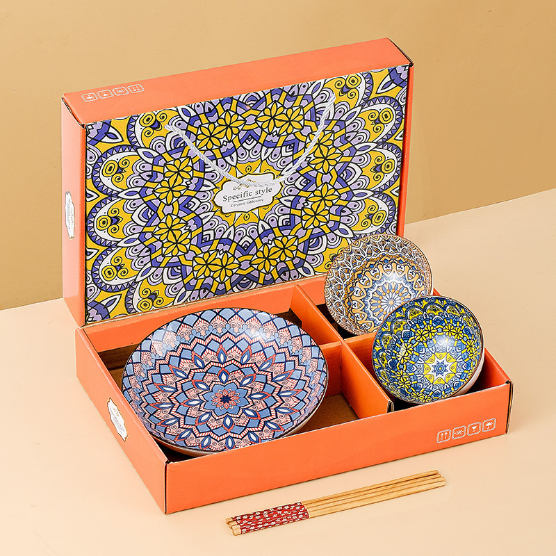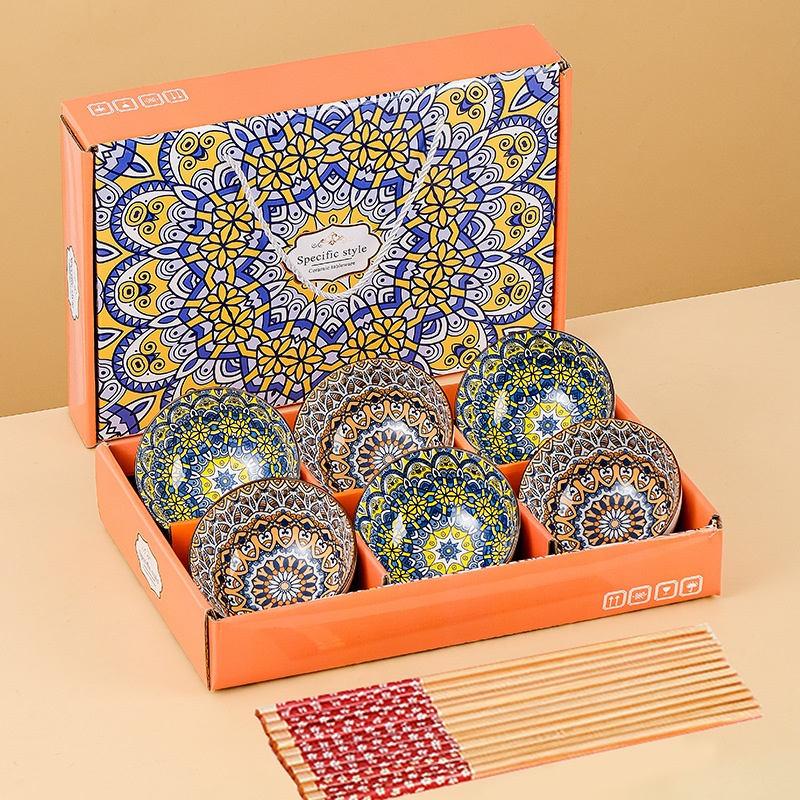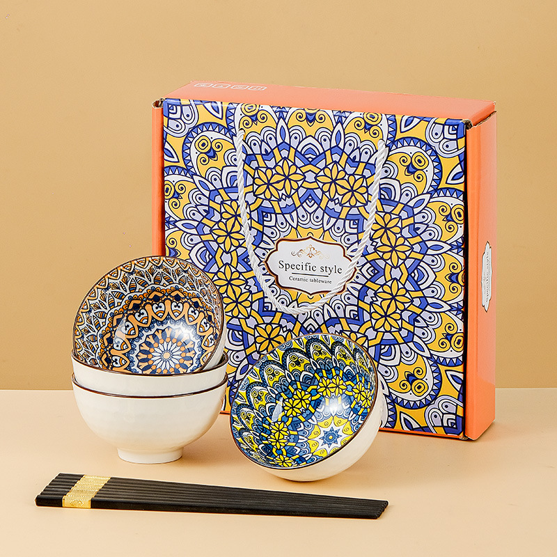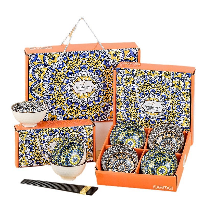 波西米亚跨境陶瓷碗礼盒装碗筷餐具送客户小礼品伴手礼家用饭碗具
