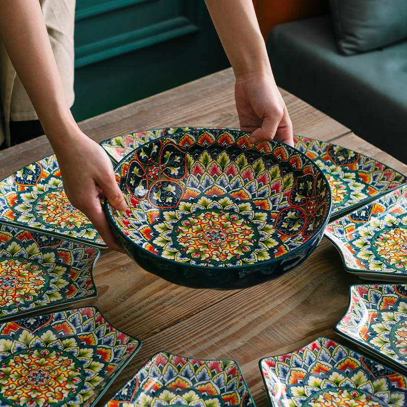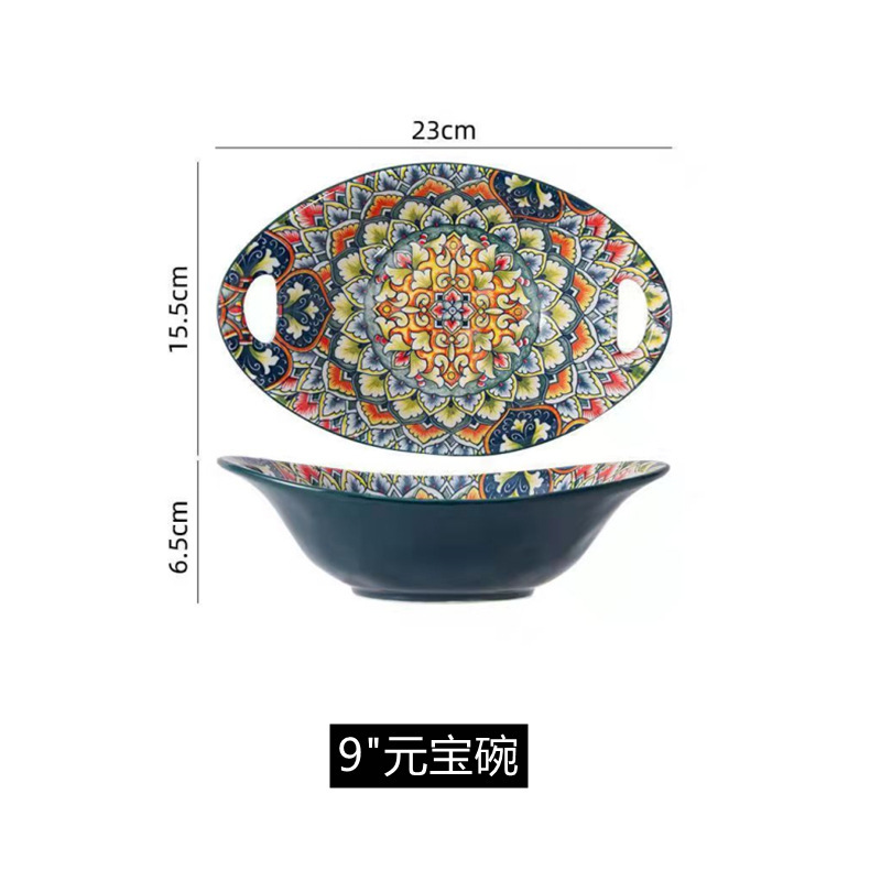 外贸欧式波西米亚陶瓷碗家用盘子泡面碗餐具创意个性碗碟套装批发