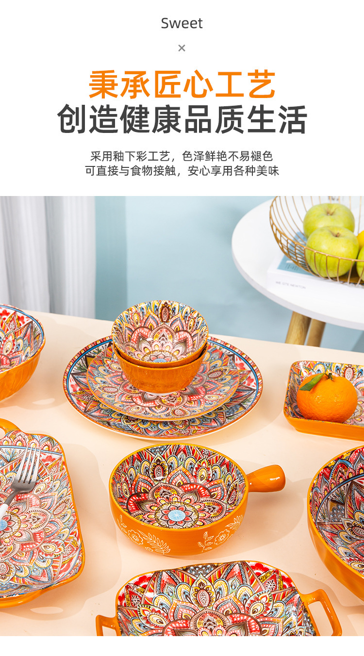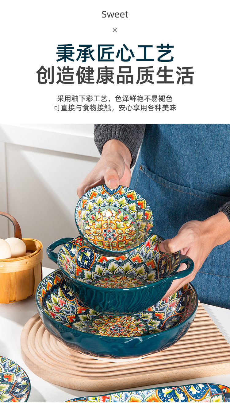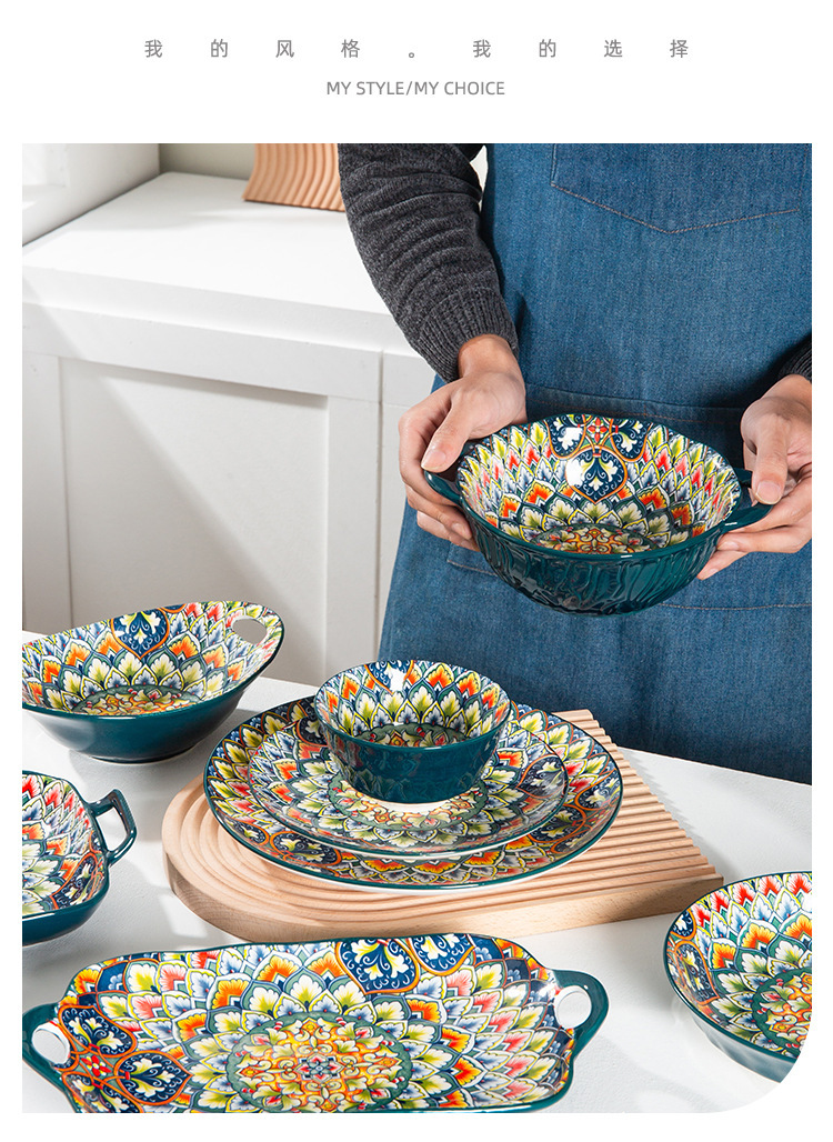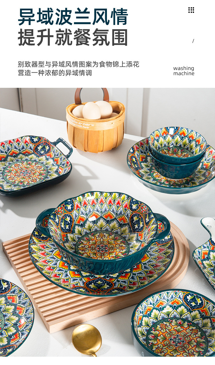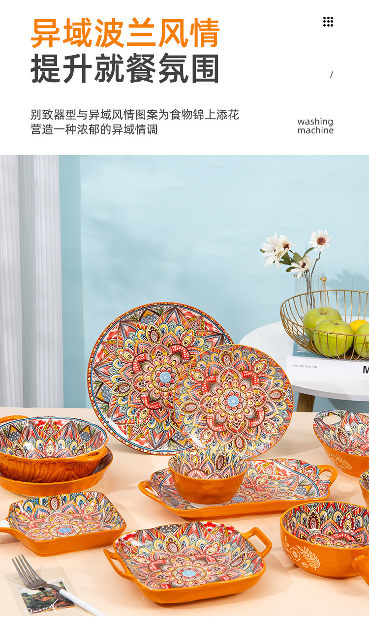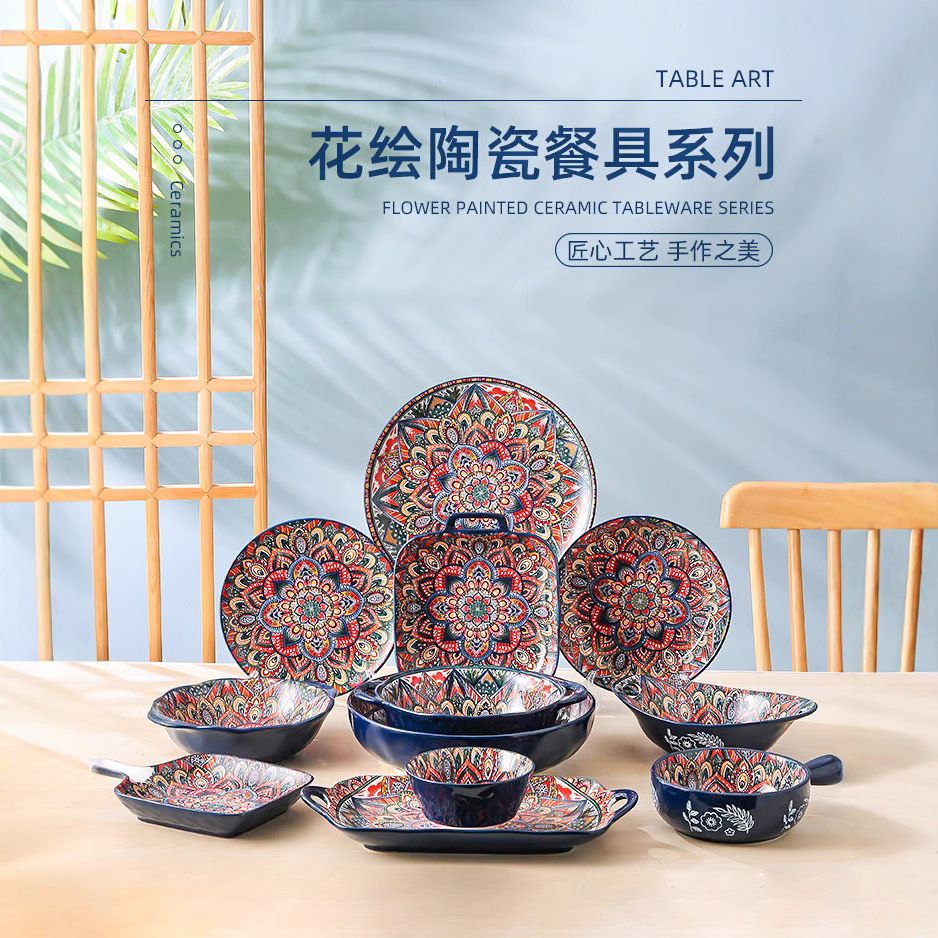 波西米亚盘子陶瓷餐盘碗碟套装汤碗碟子菜盘饺子盘亚马逊爆款跨境