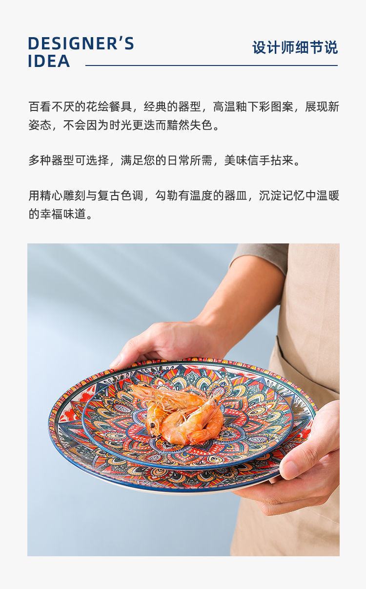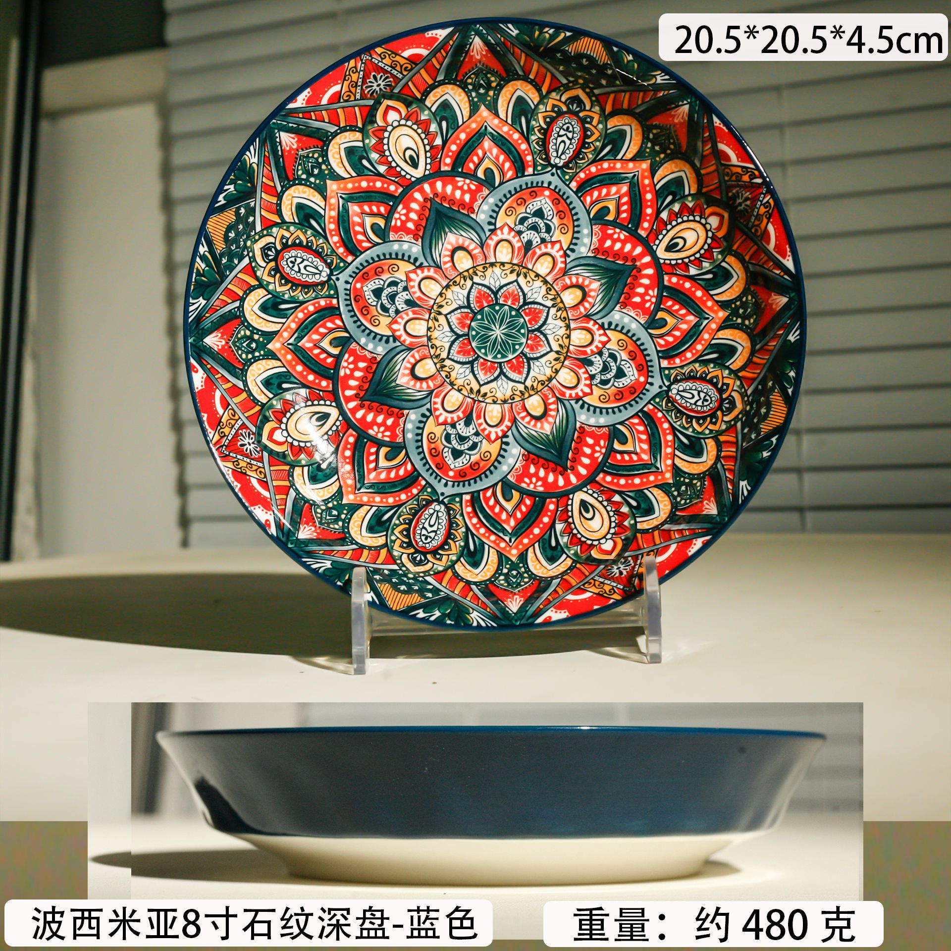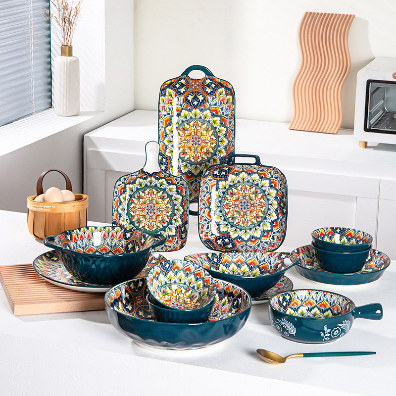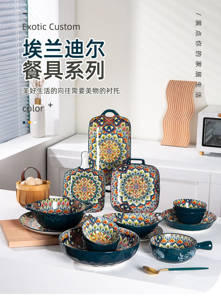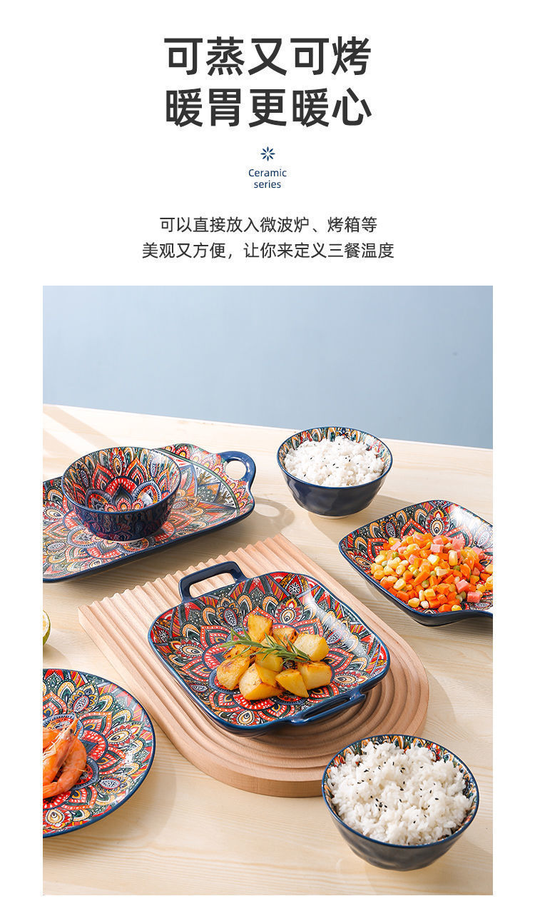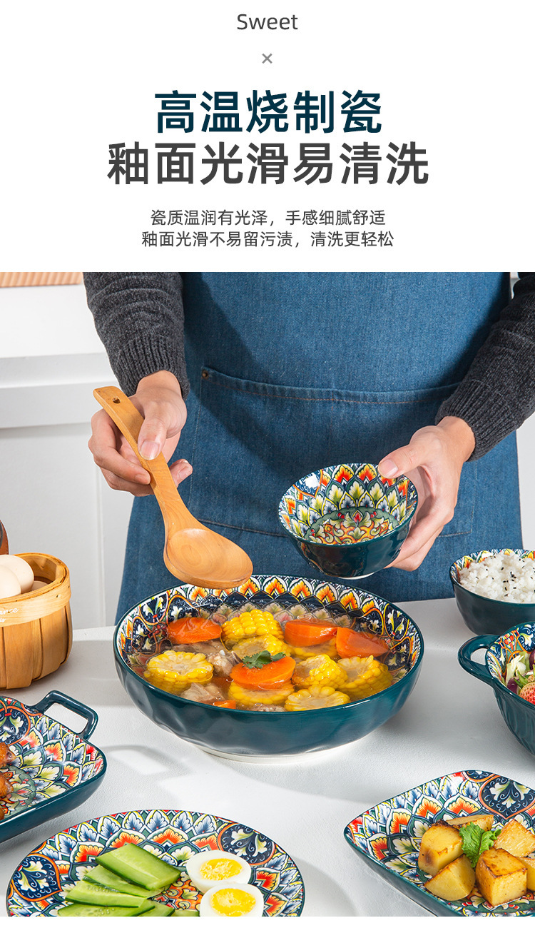 波西米亚盘子陶瓷餐盘碗碟套装汤碗碟子菜盘饺子盘亚马逊爆款跨境