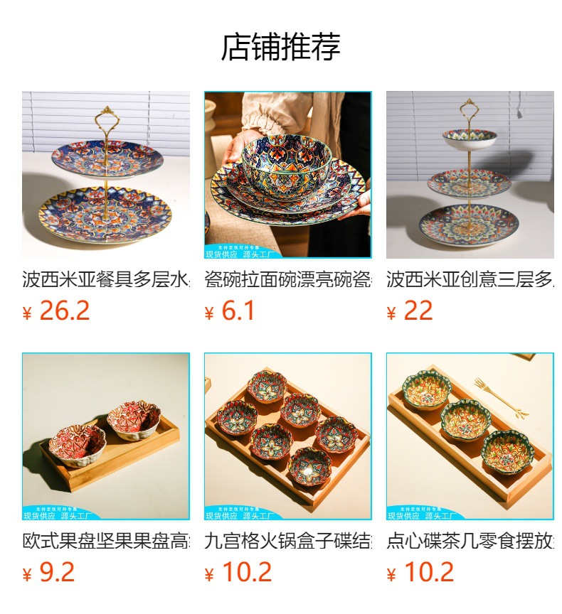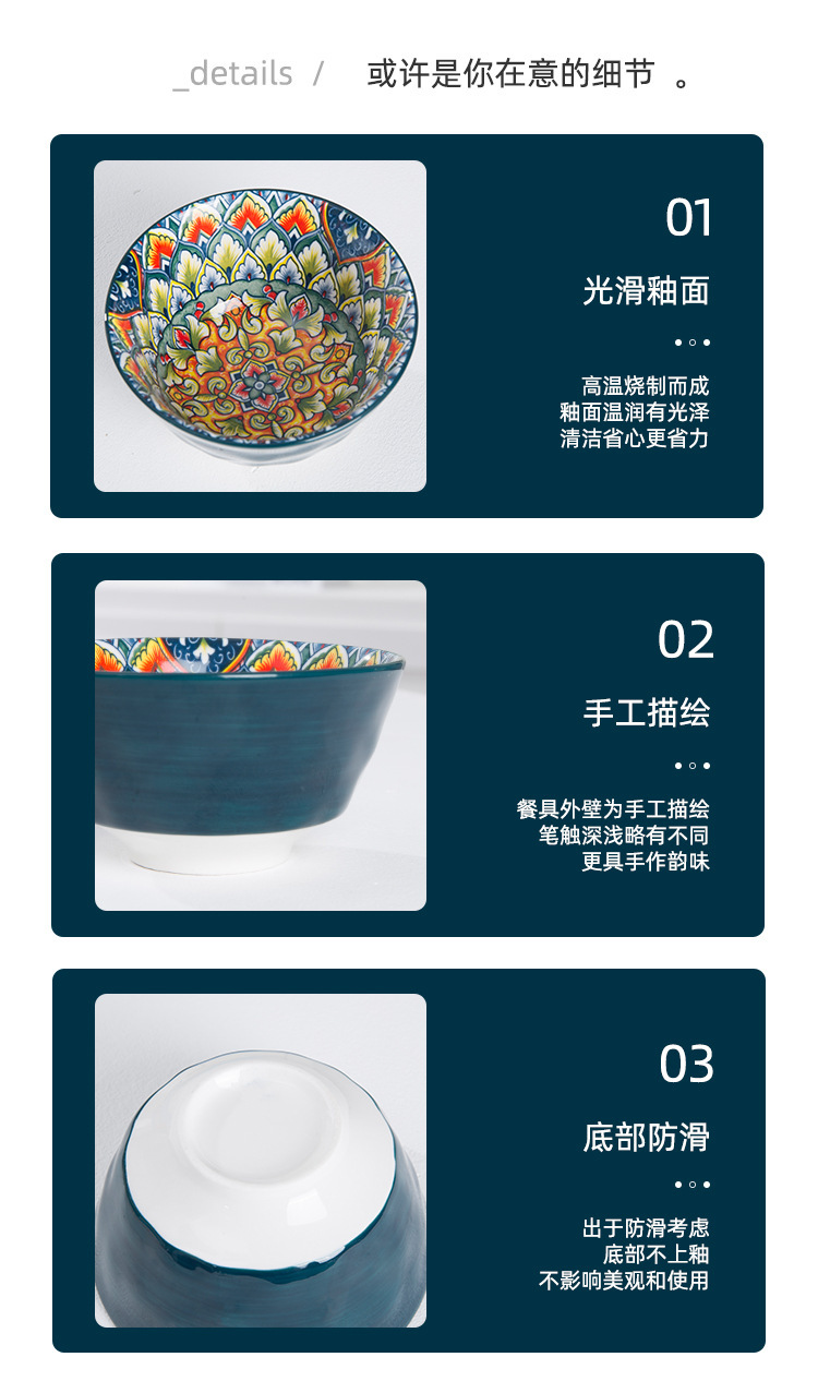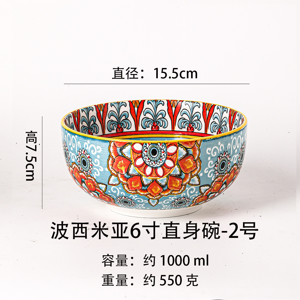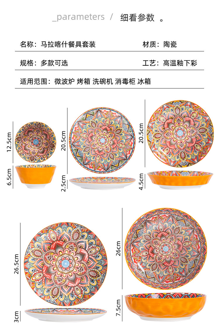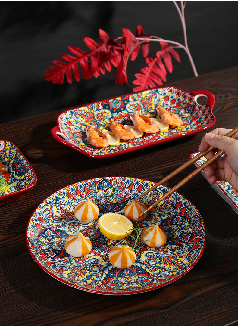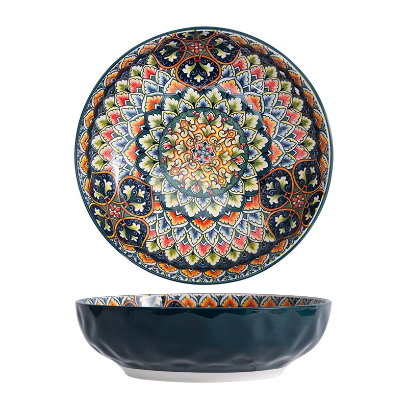 波西米亚盘子陶瓷餐盘碗碟套装汤碗碟子菜盘饺子盘亚马逊爆款跨境