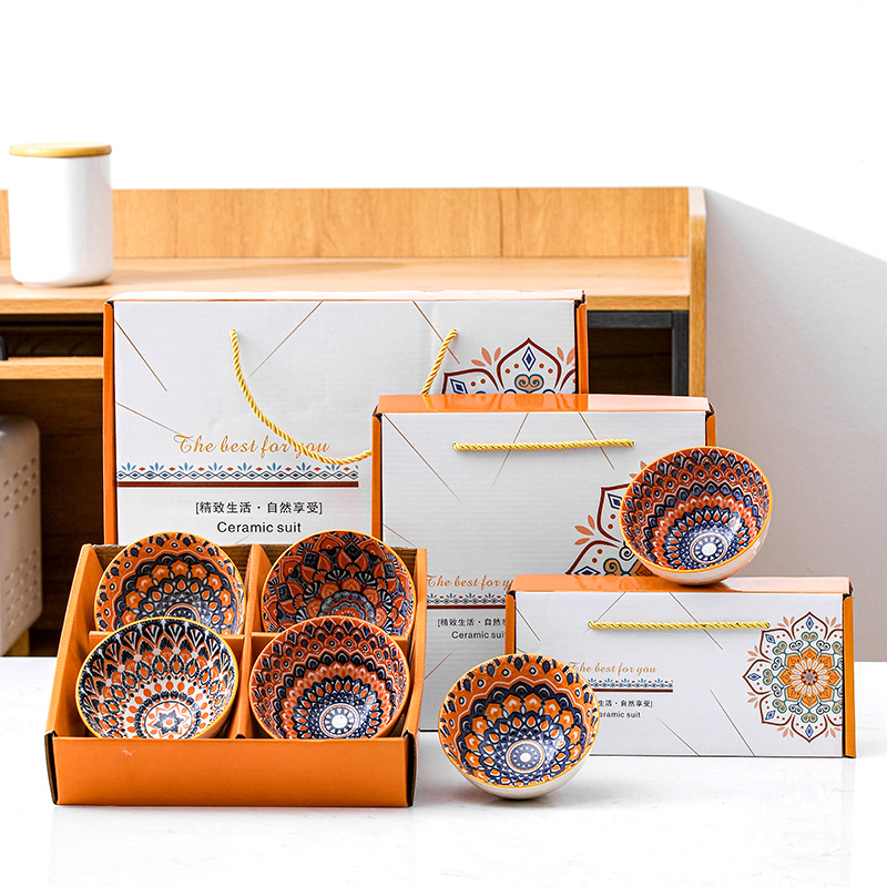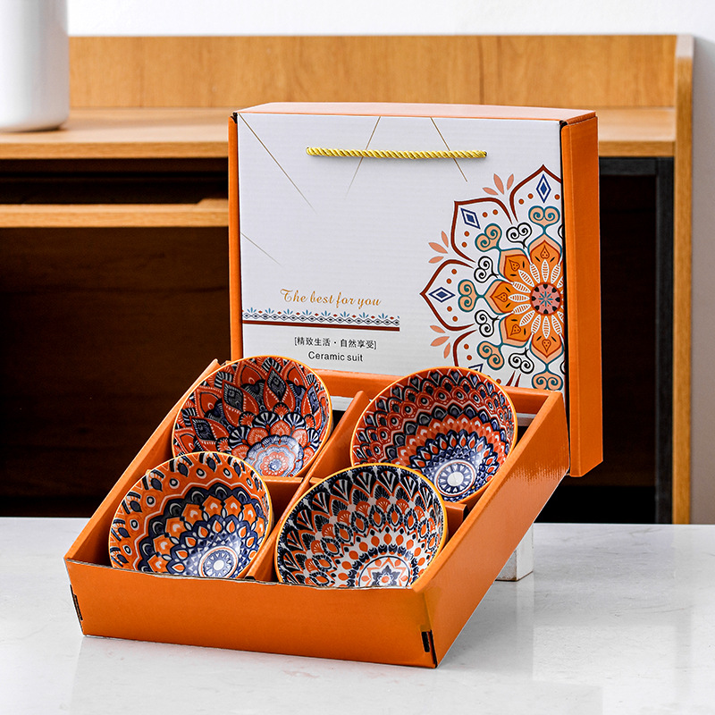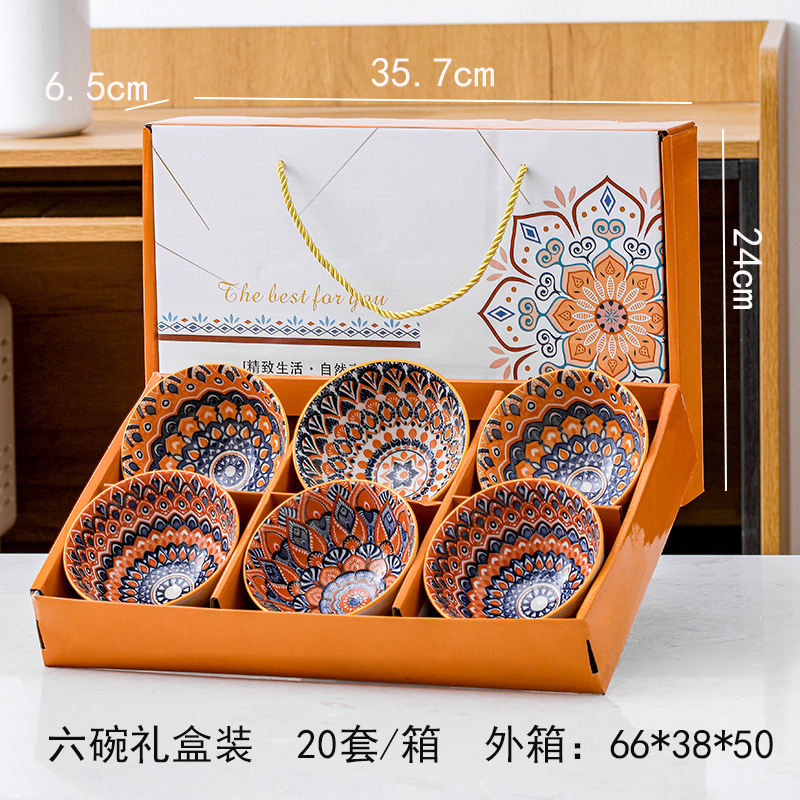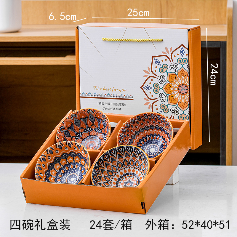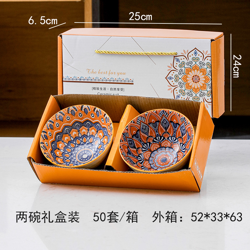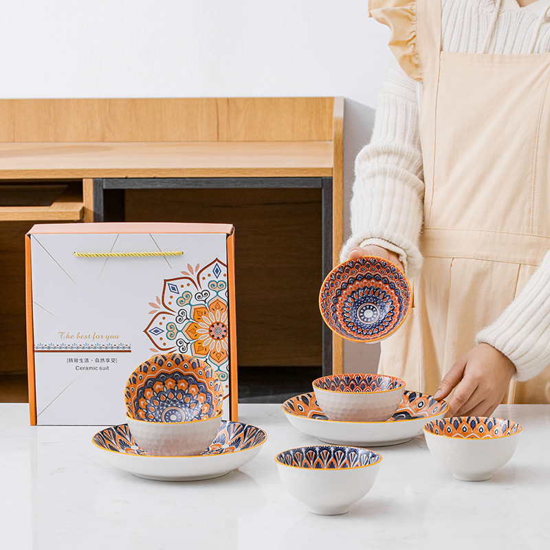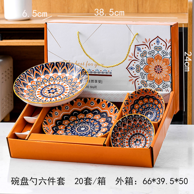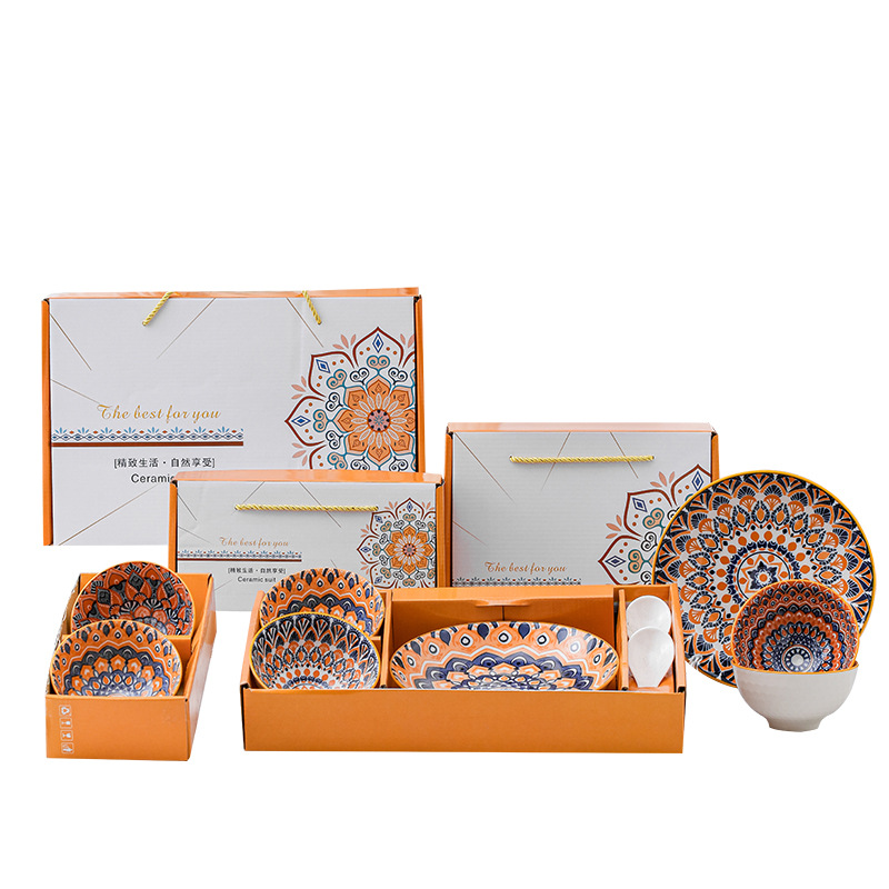 跨境塔克西套碗复古礼品碗盘陶瓷碗碟盘饭碗盘子外贸餐具礼盒套装