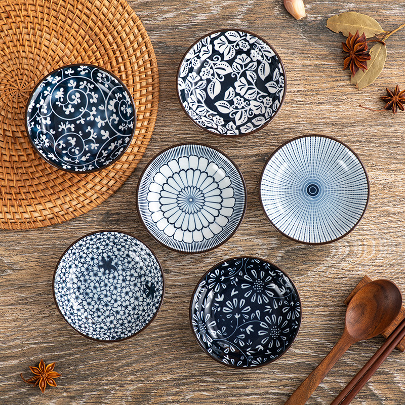 跨境日式创意陶瓷小吃碟子寿司芥末蘸料碟碎花调味酱料碟商用味碟