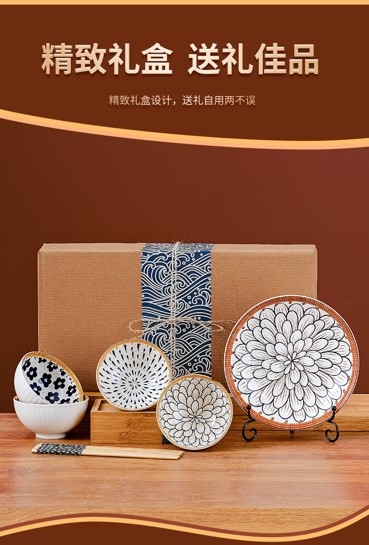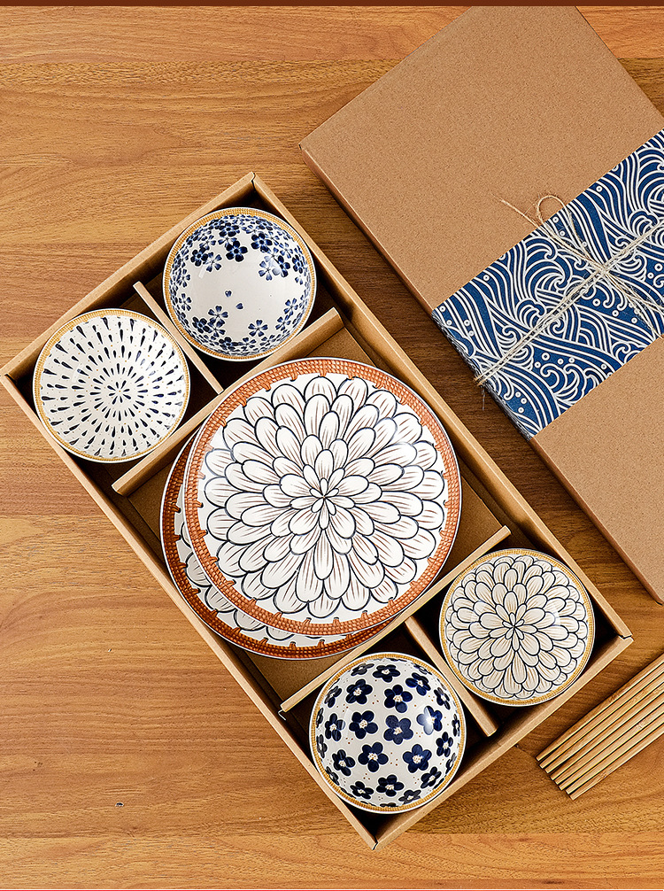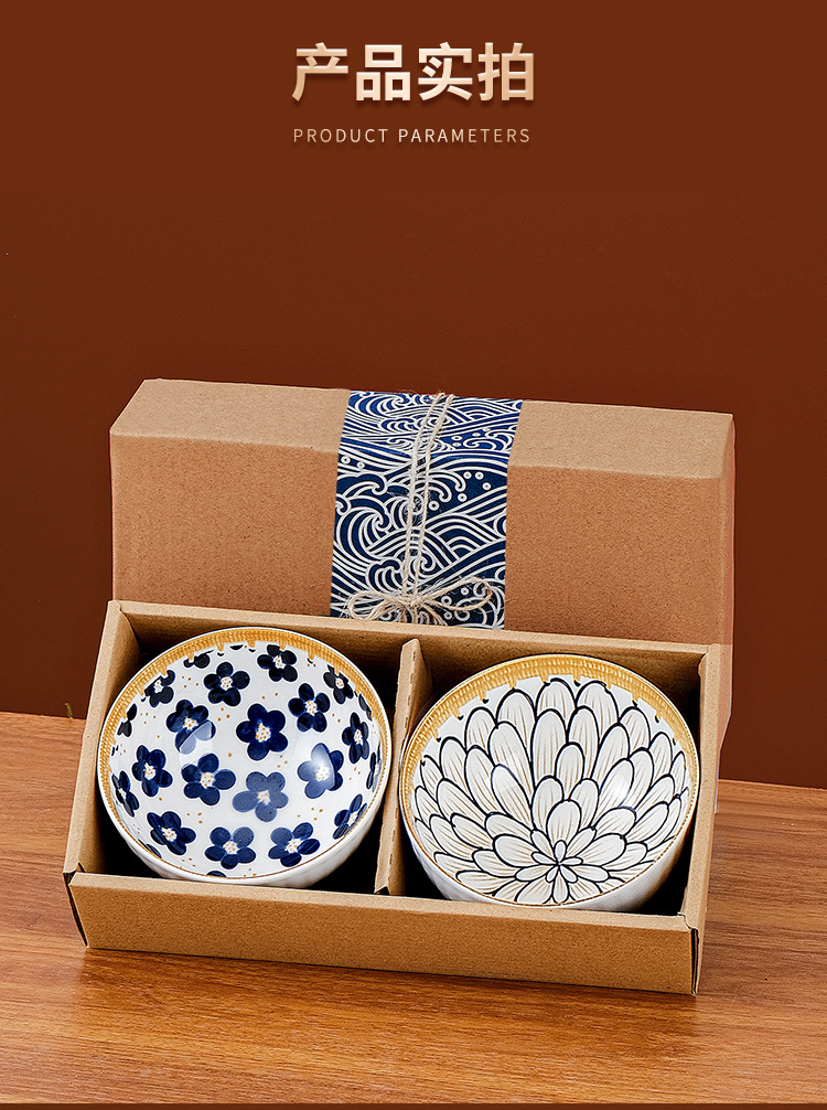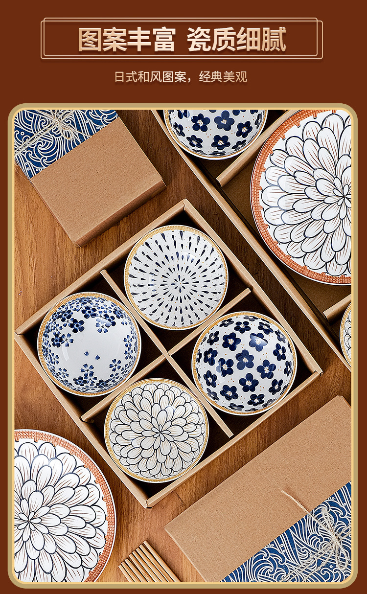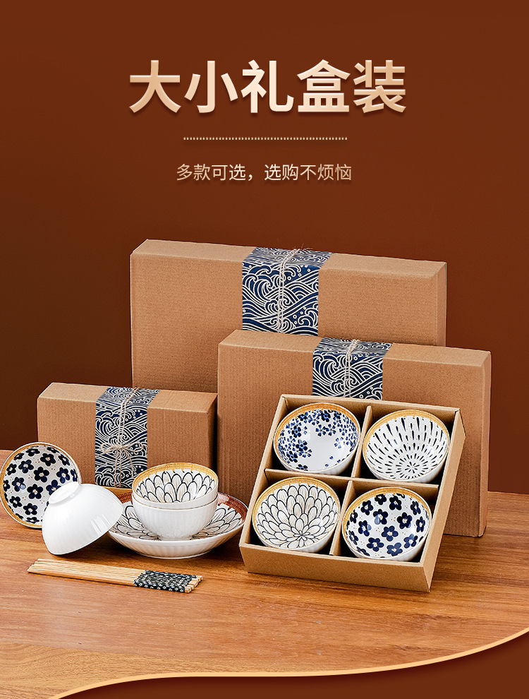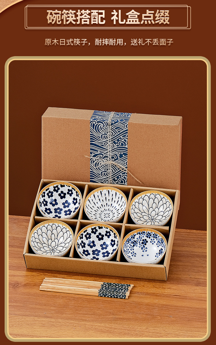 跨境陶瓷碗餐具釉下彩套碗礼盒装日式碗筷套装活动礼品批发伴手礼