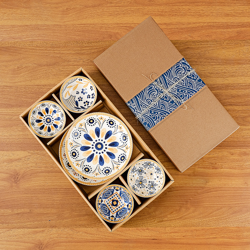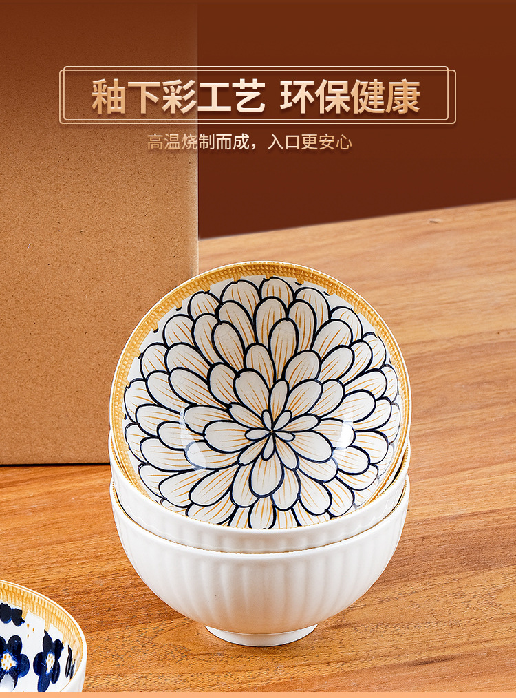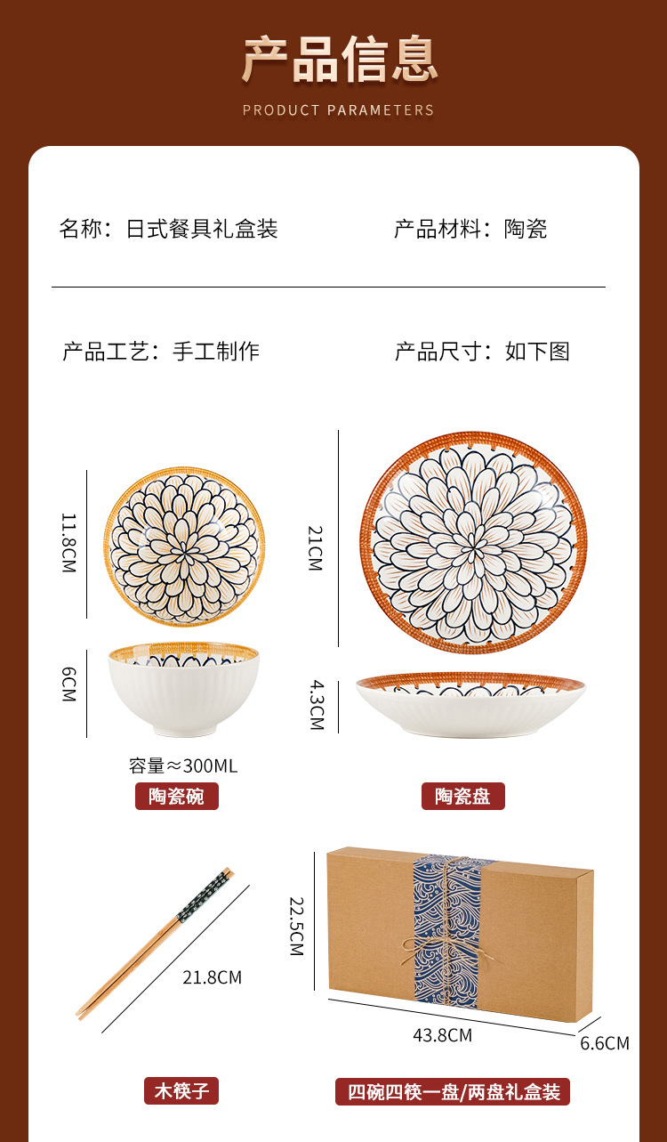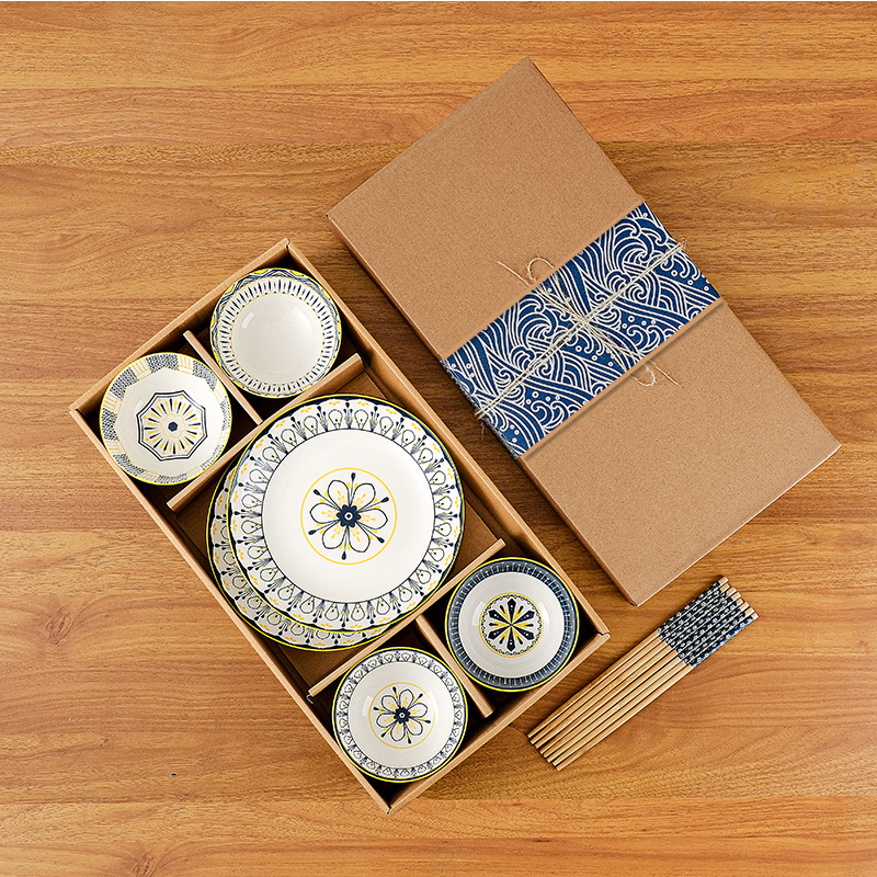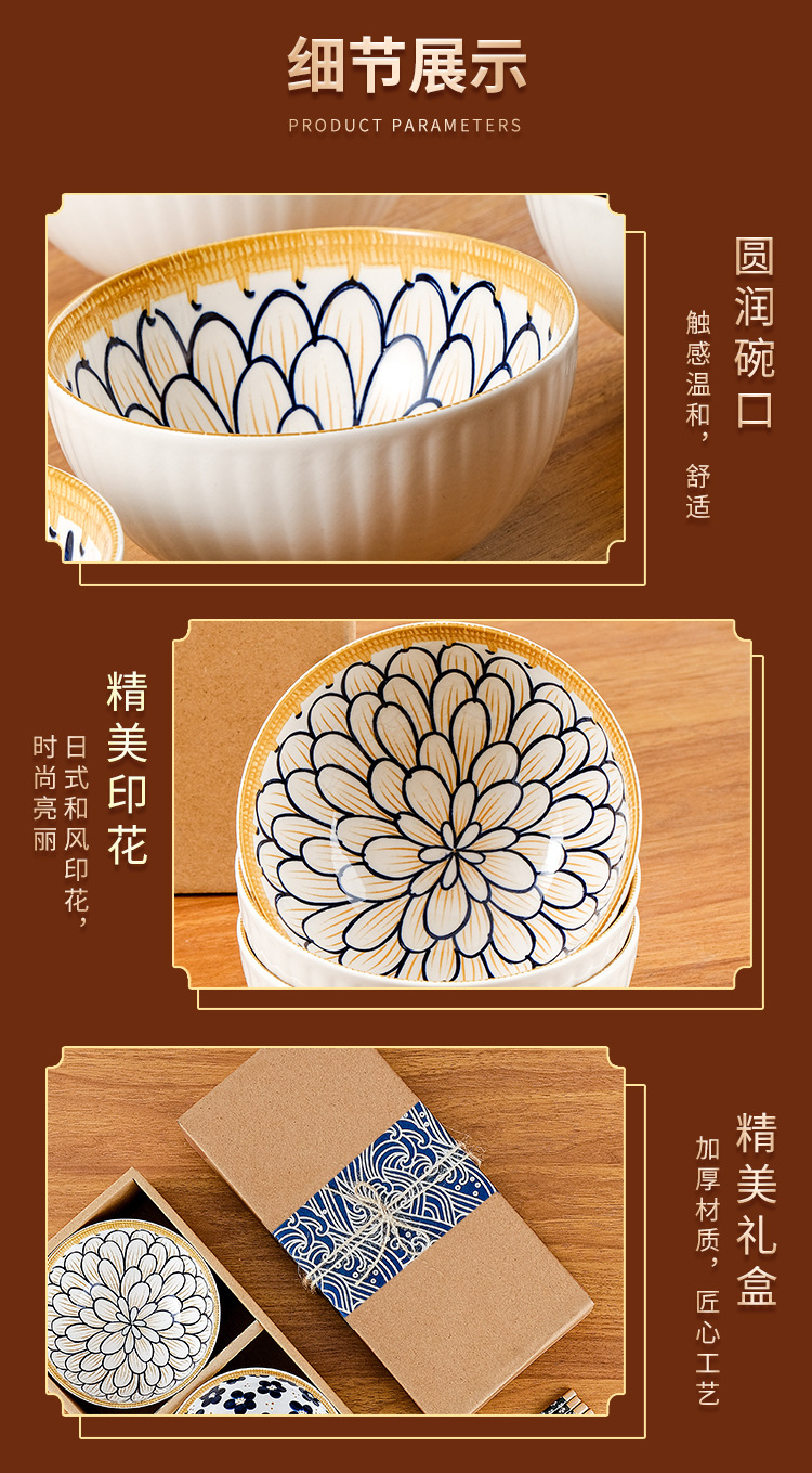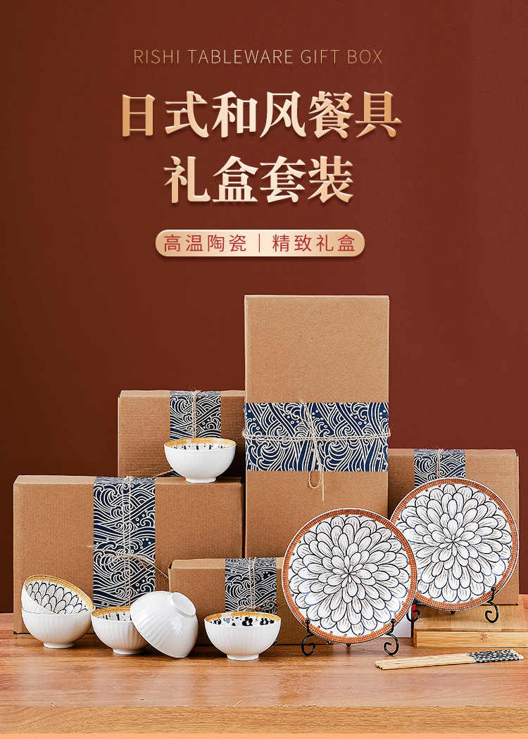 跨境陶瓷碗餐具釉下彩套碗礼盒装日式碗筷套装活动礼品批发伴手礼