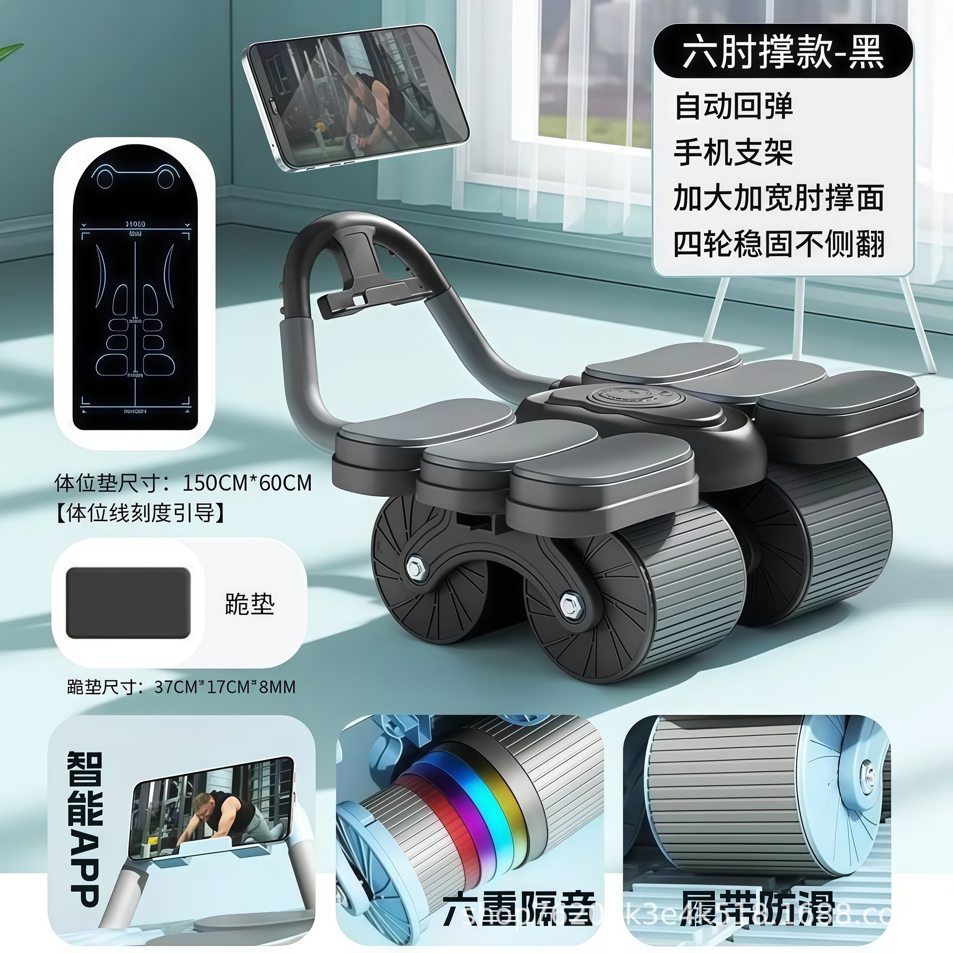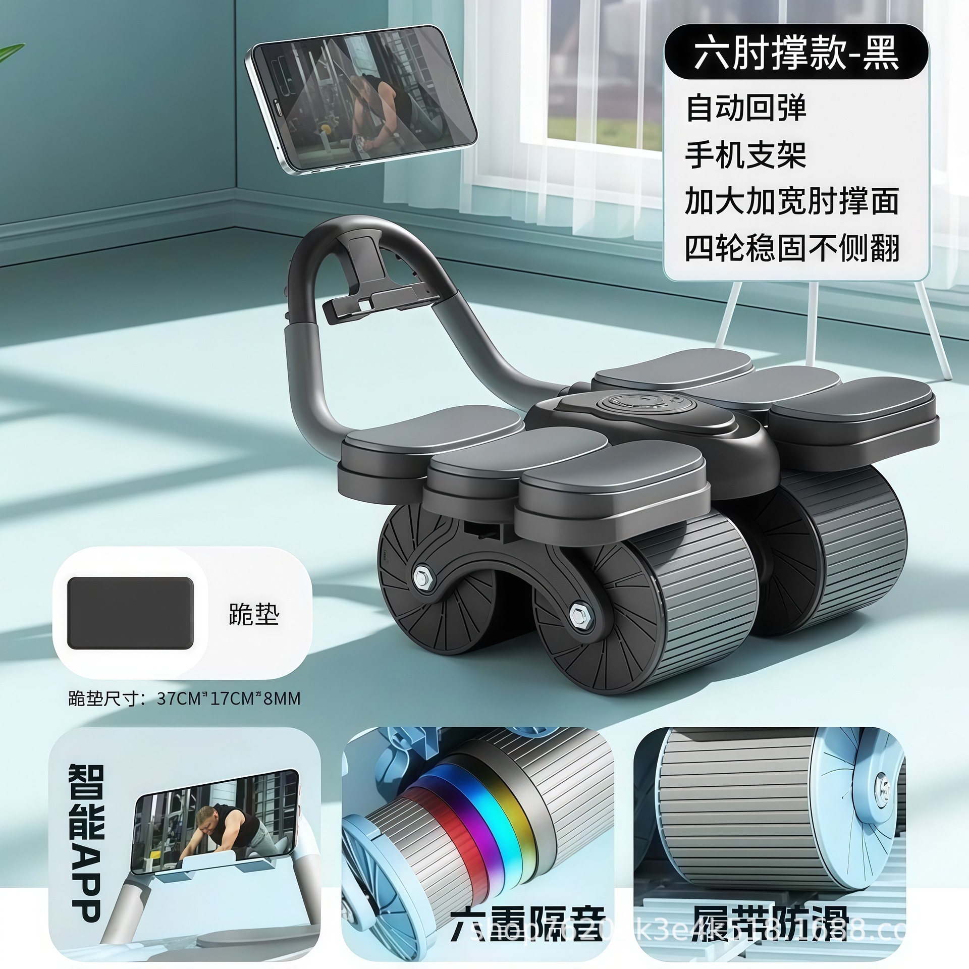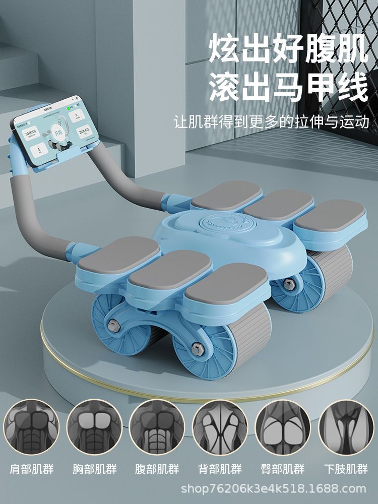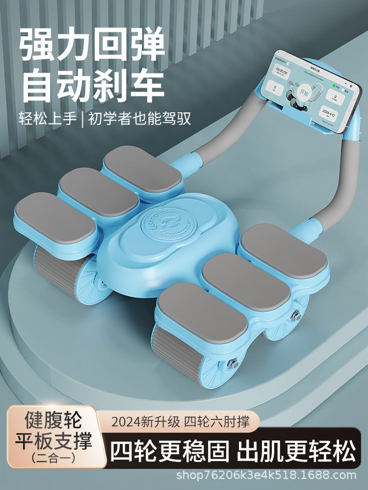 健腹轮六肘撑式自动回弹四轮卷腹肌轮男女训练卷腹器健身器材运动