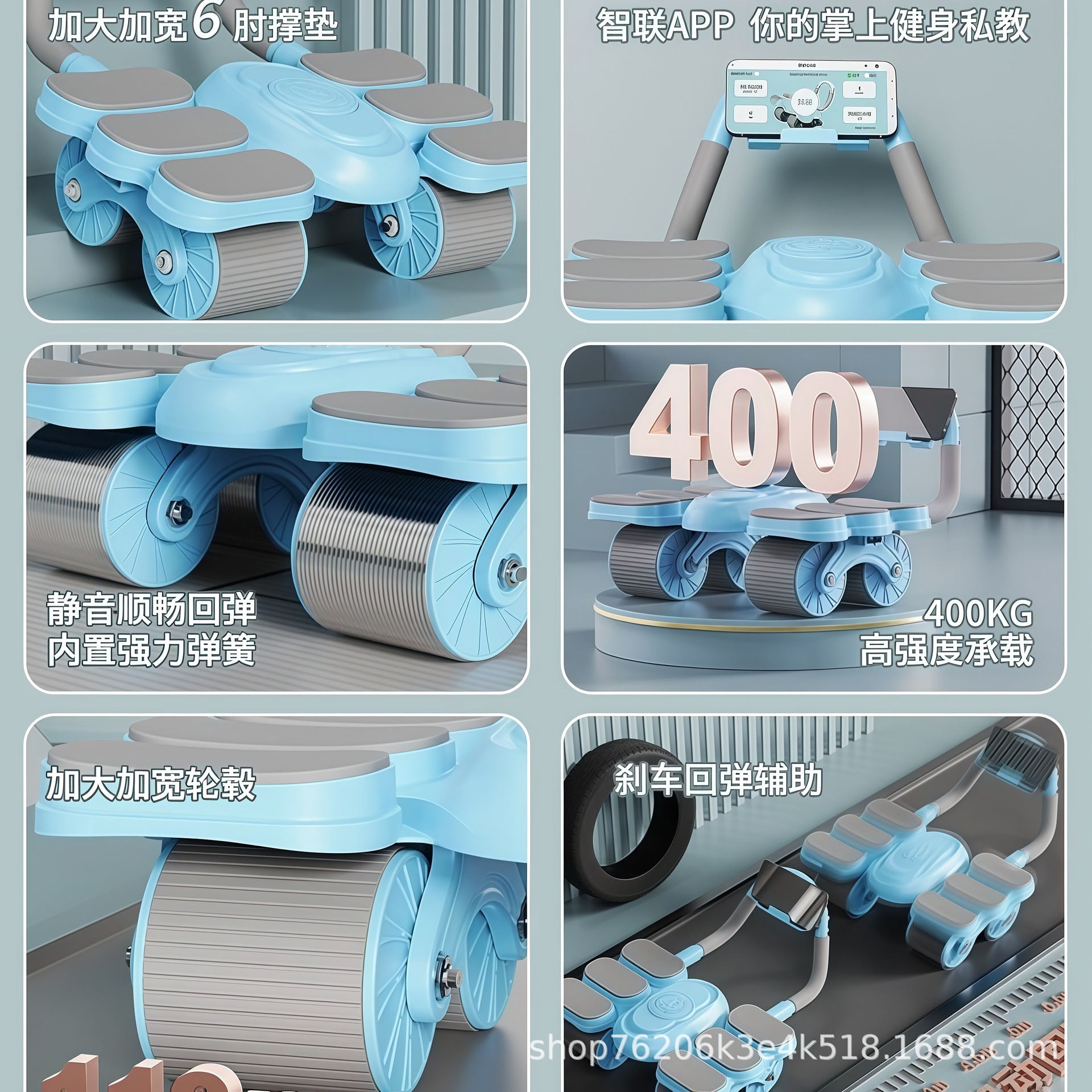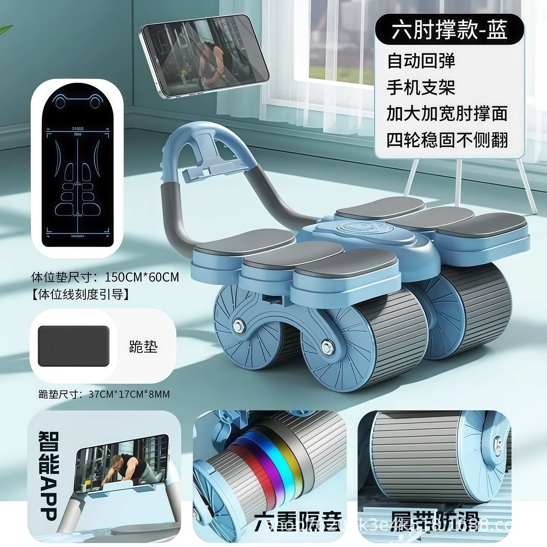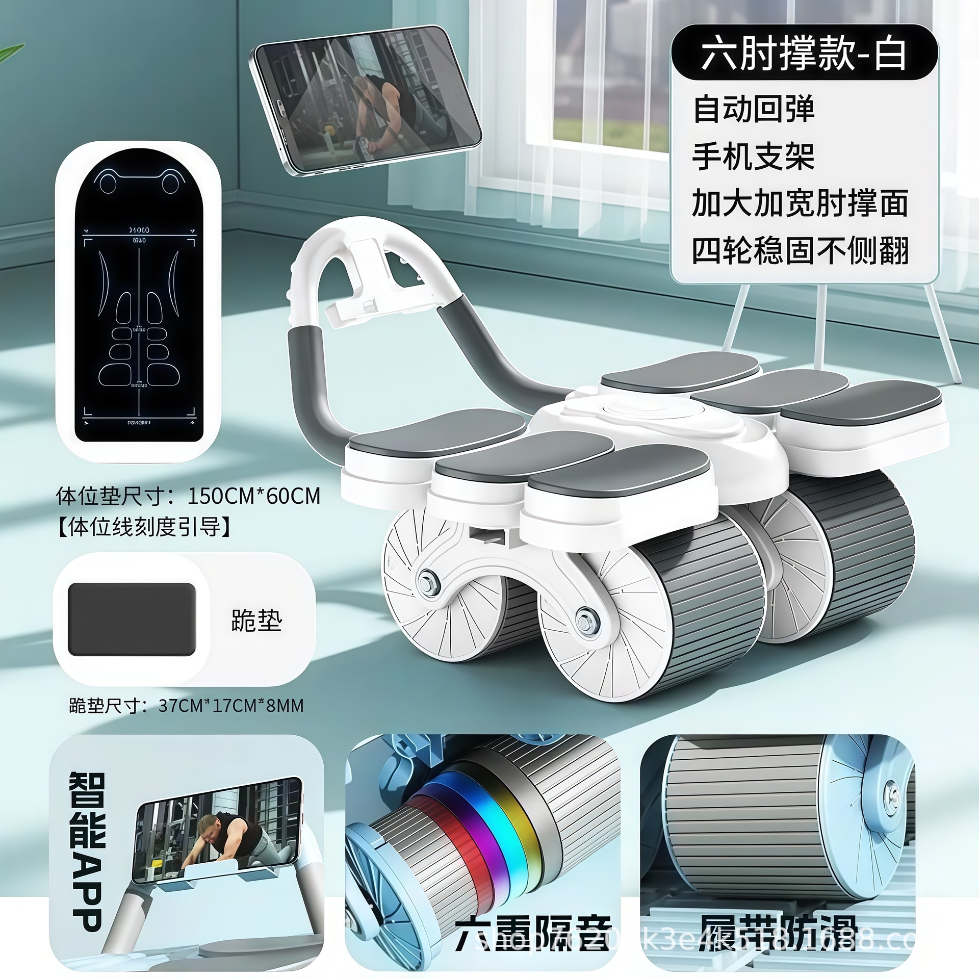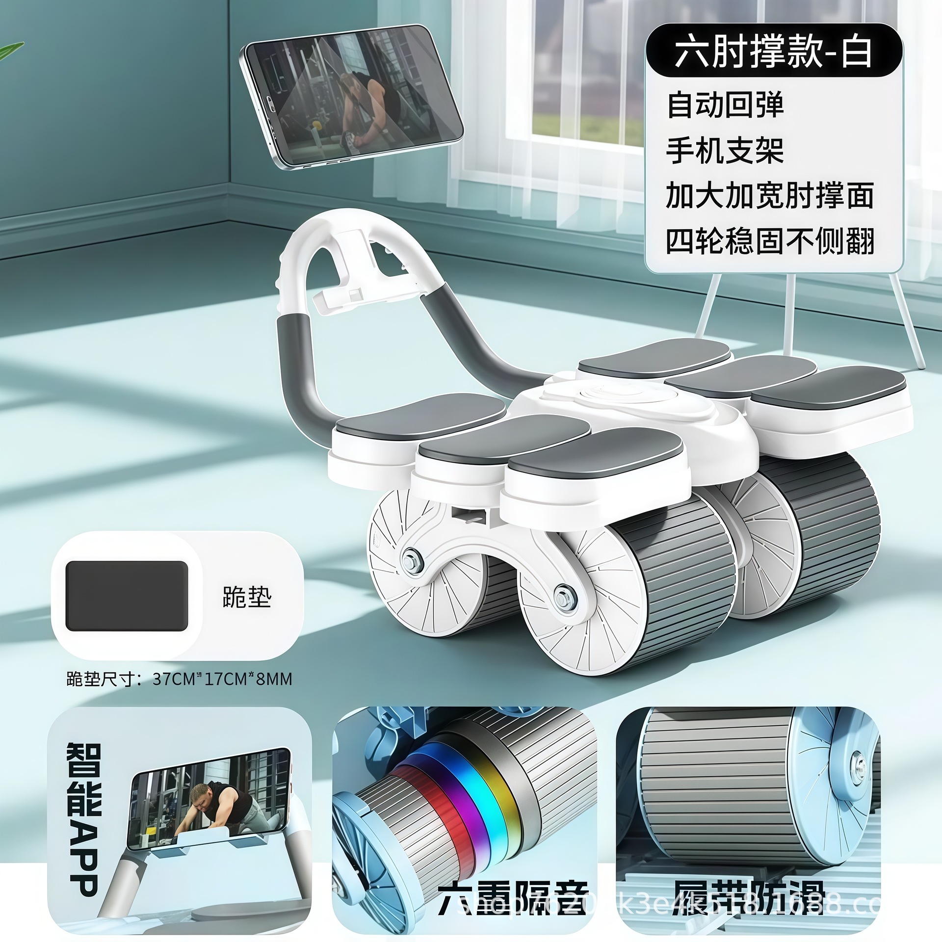 健腹轮六肘撑式自动回弹四轮卷腹肌轮男女训练卷腹器健身器材运动