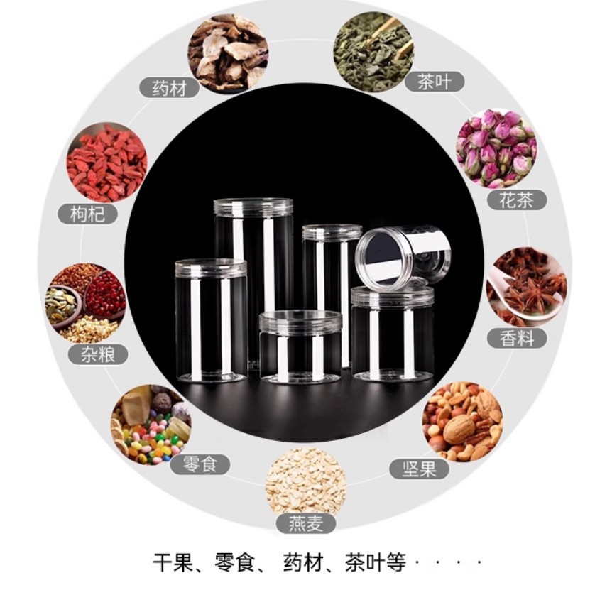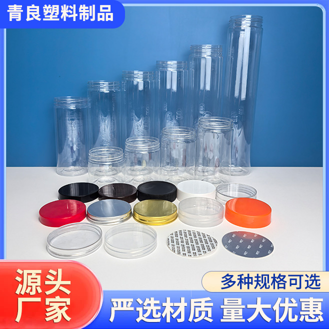 现货直径65mm透明pet塑料罐坚果零食礼品罐彩泥水晶泥鱼粮包装瓶
