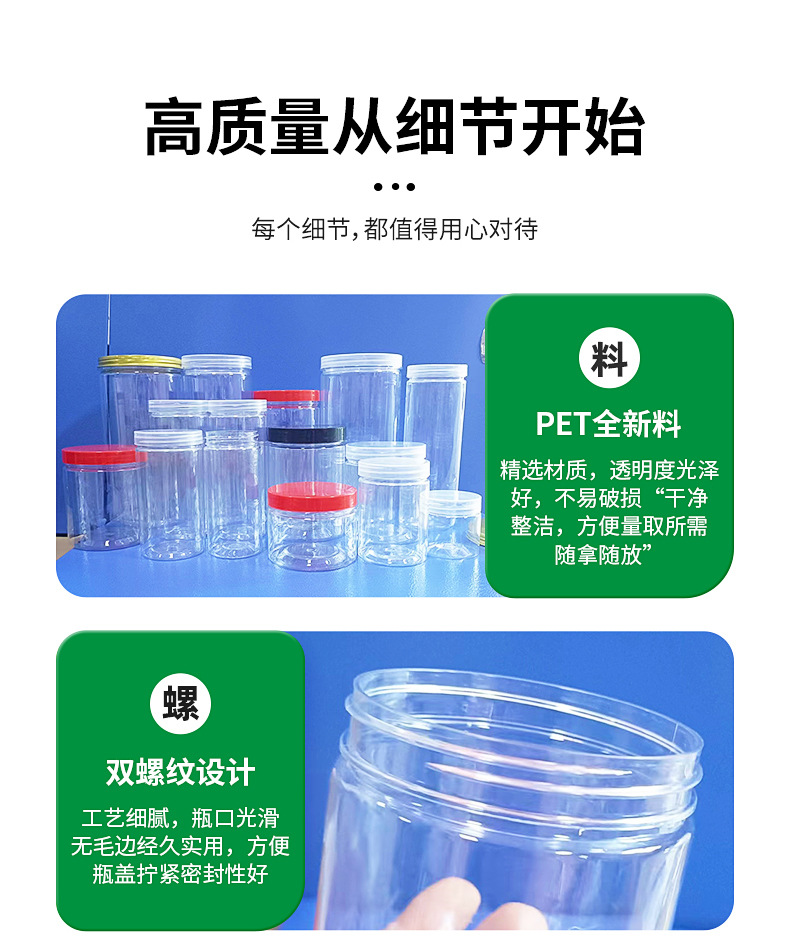 定制储物罐塑料pet密封罐铝盖密封广口塑料瓶包装罐子收纳塑料罐