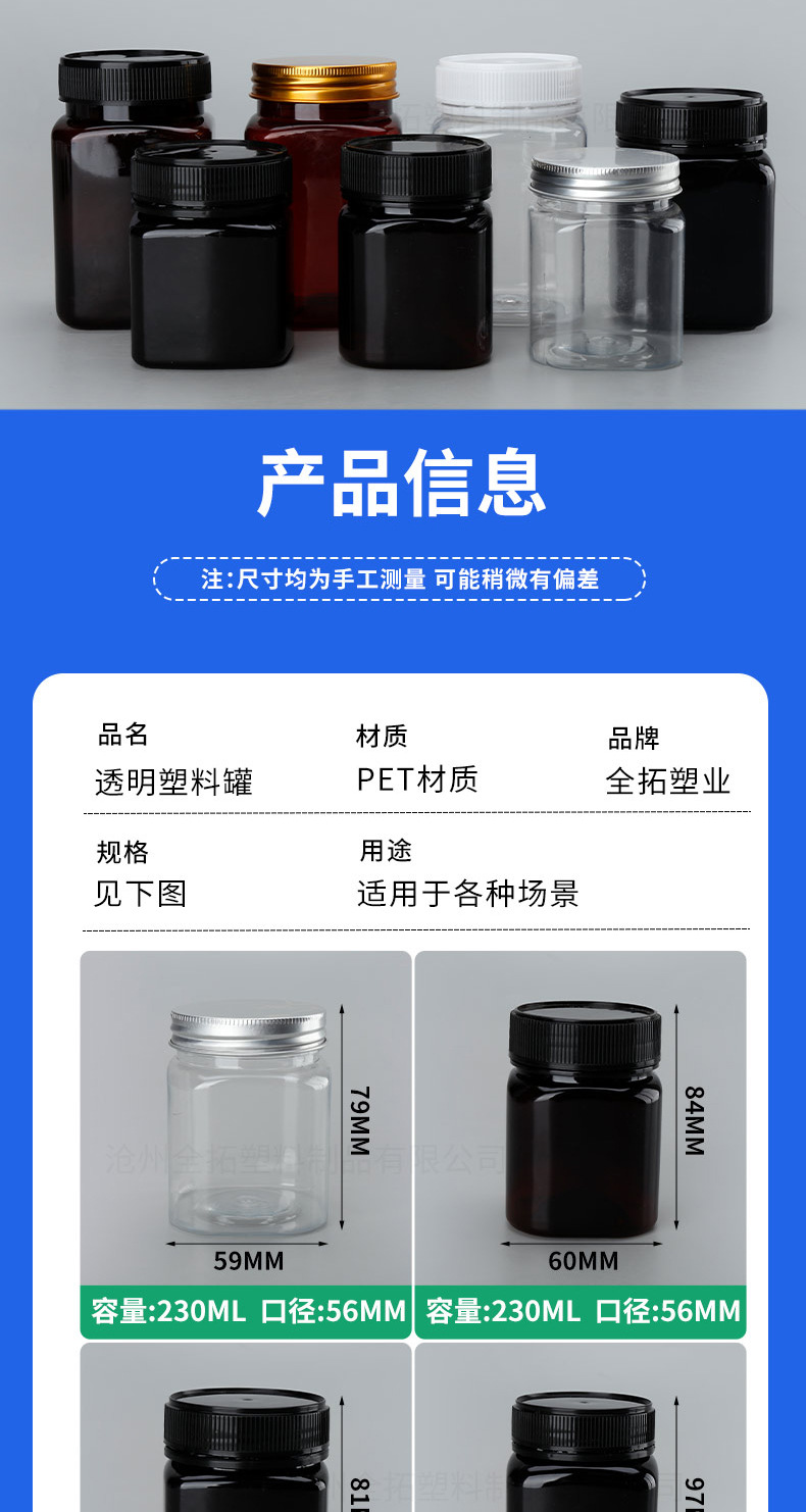 230ml蜂蜜罐 pet食品塑料包装罐剁椒酱密封瓶320ml防盗盖蜂蜜瓶子