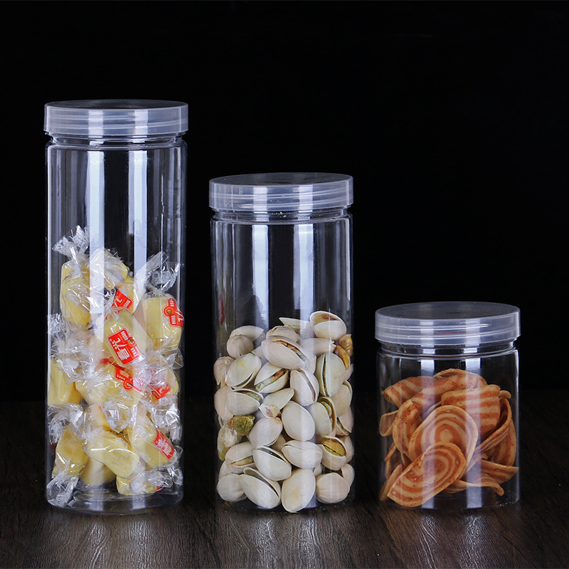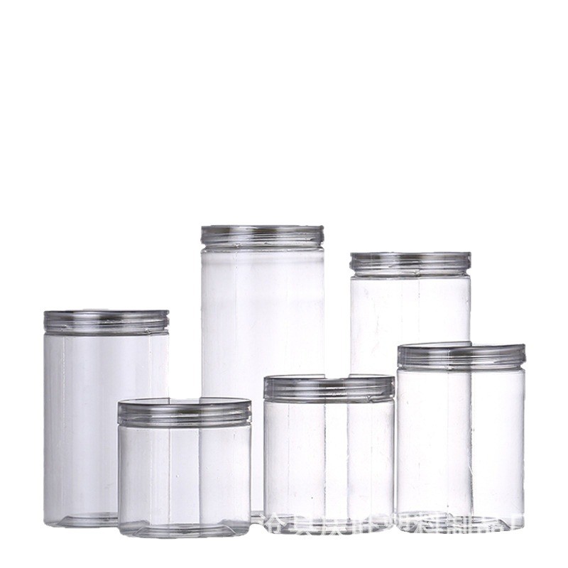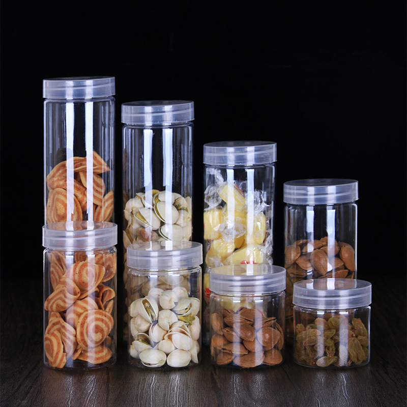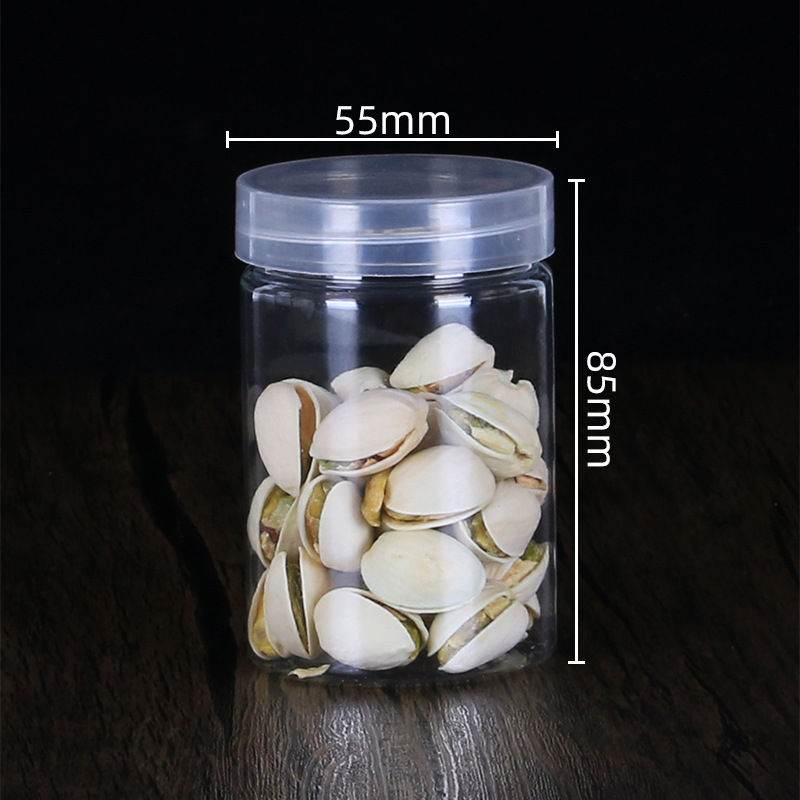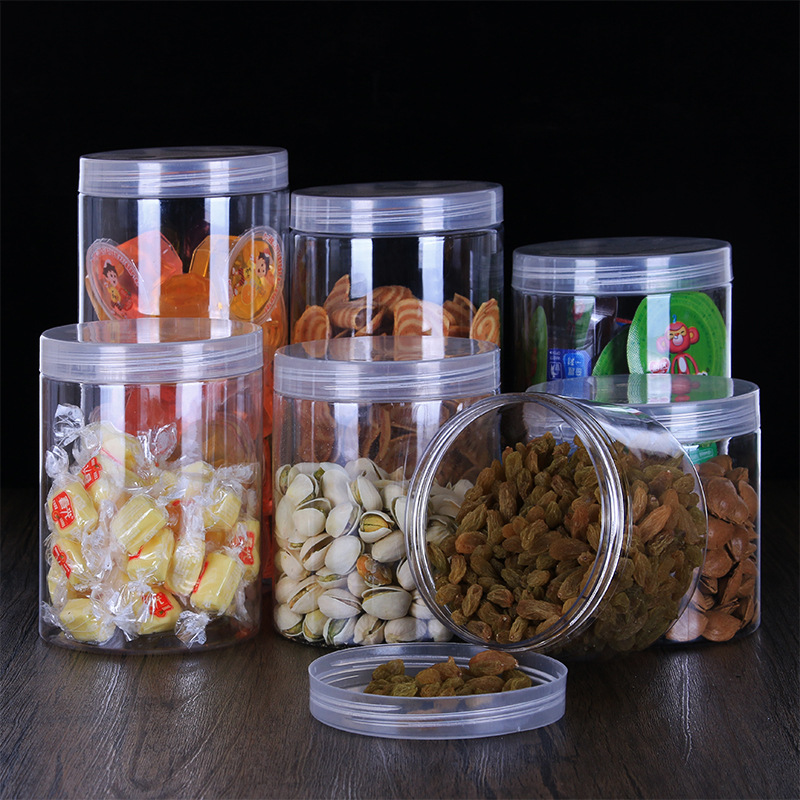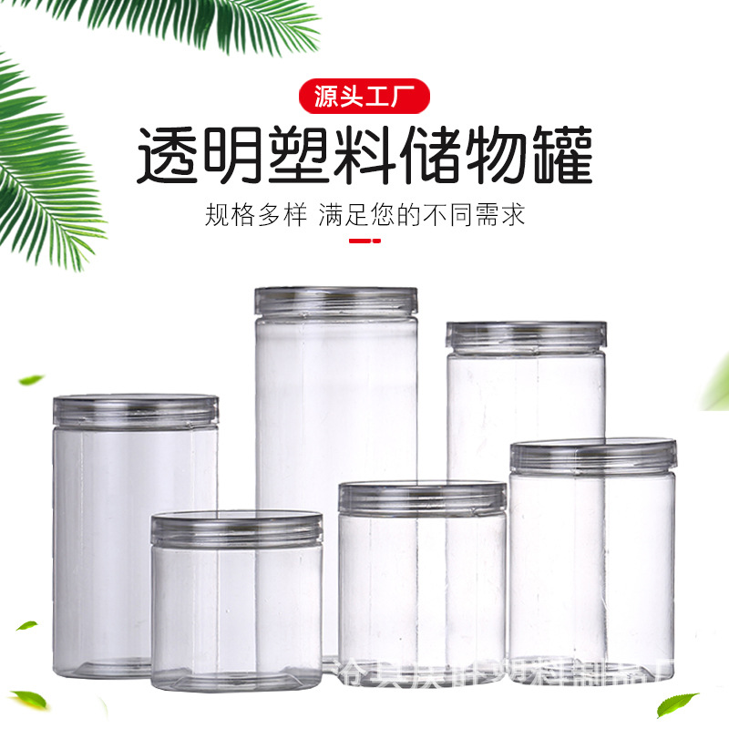 供应圆形广口密封透明塑料分装瓶 pet包装坚果花茶通用收纳储物罐