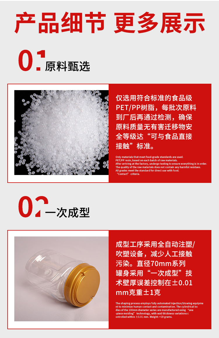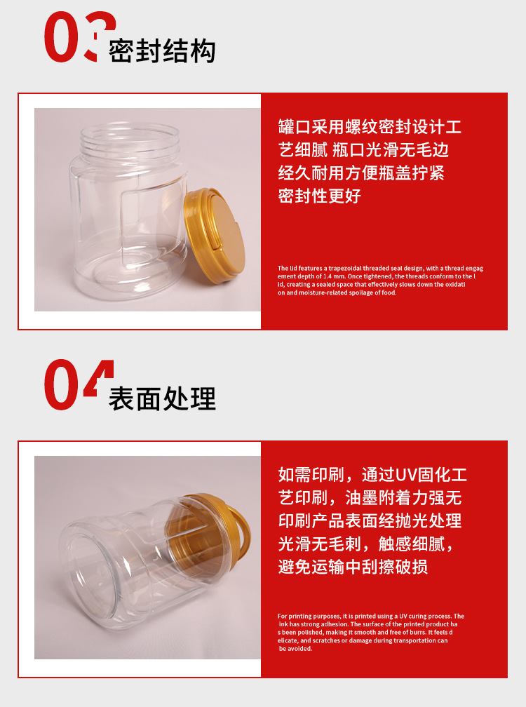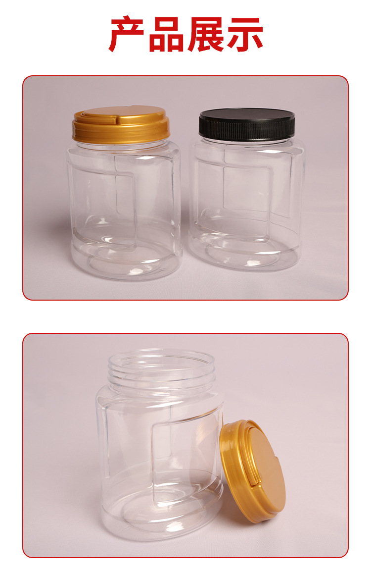 PET食品密封罐透明塑料瓶带盖蜂蜜酱料果干谷物零食储物罐塑料罐