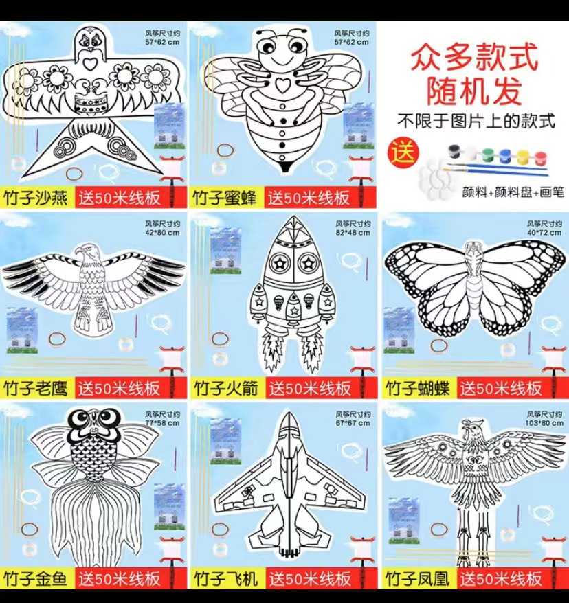 | 成品风筝混搭+8色+画笔+60米线 | USD $0.91 | 20550 piece available |