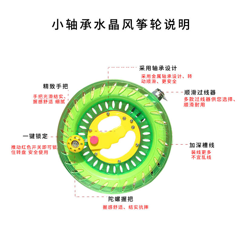 潍坊水晶塑料轮ABS合金碳纤维手握背带静音刹车防倒转自锁风筝轮