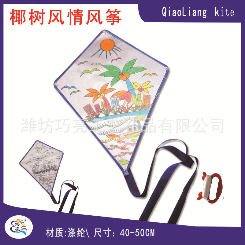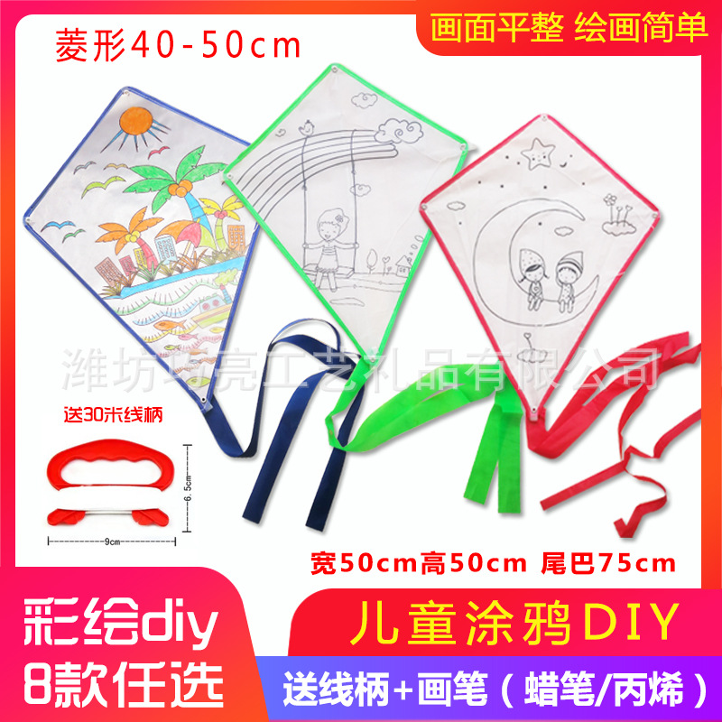 儿童涂鸦教学风筝绘画diy菱形风筝材料包教学风筝手工蝴蝶彩绘