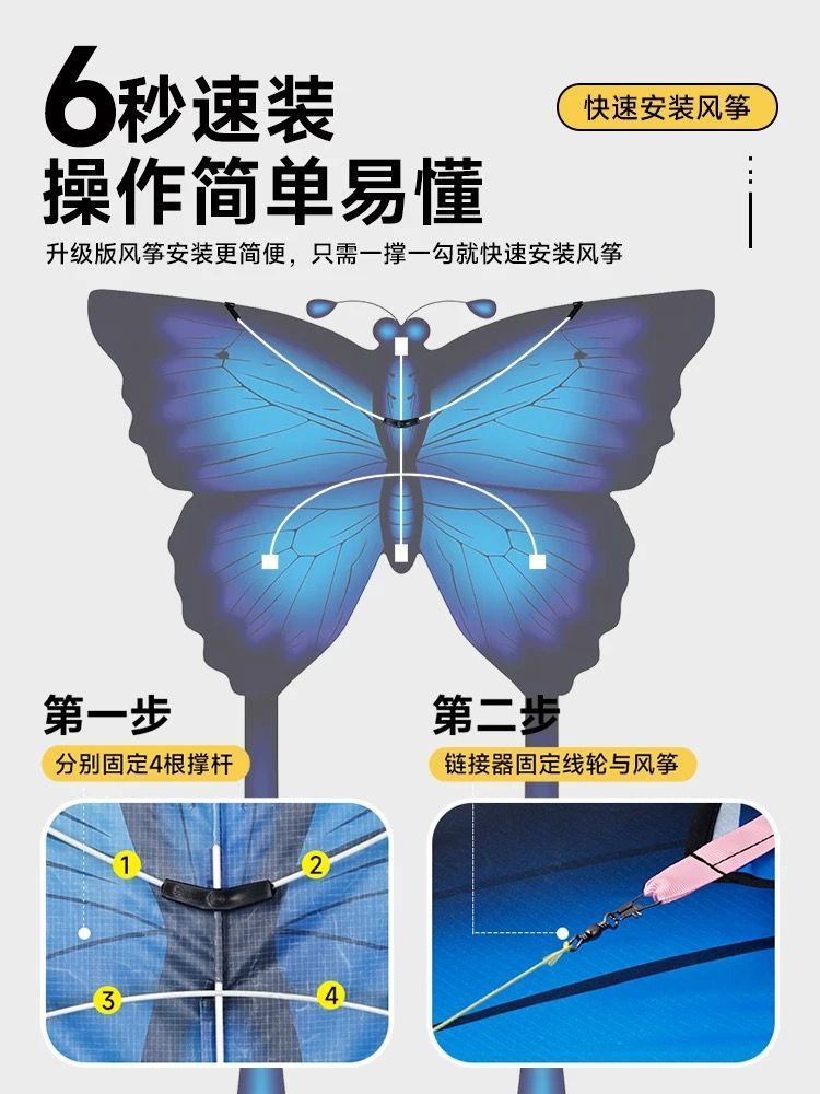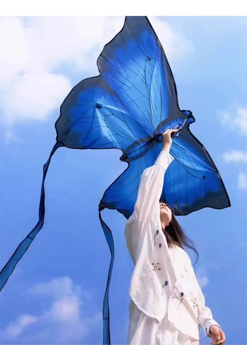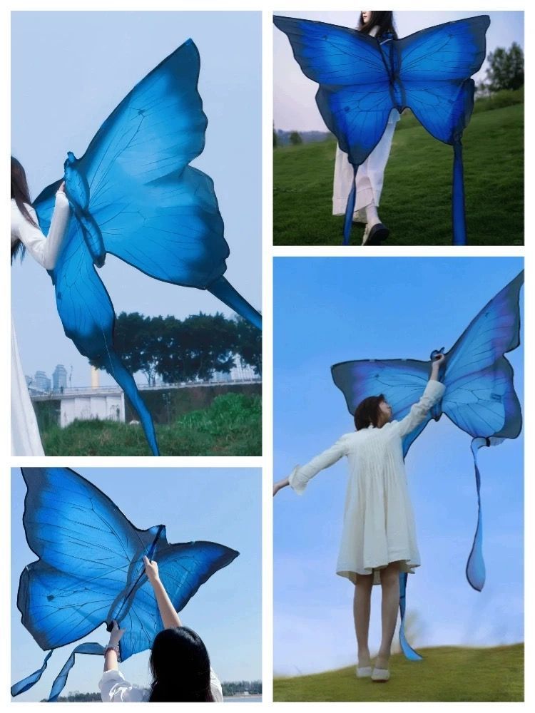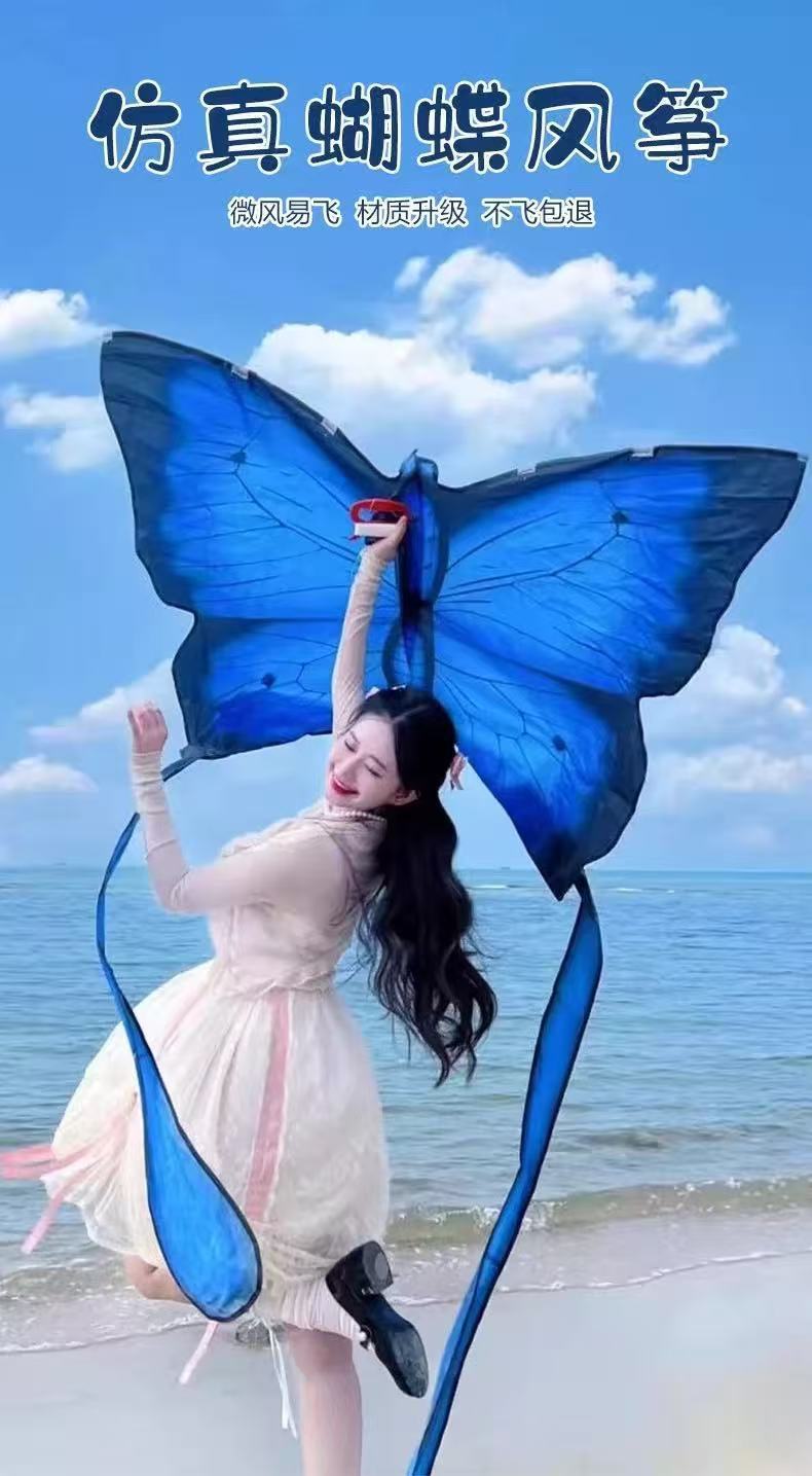 蓝色蝴蝶风筝高颜值拍照儿童成人专用秋天拍照潍坊风筝地摊批发