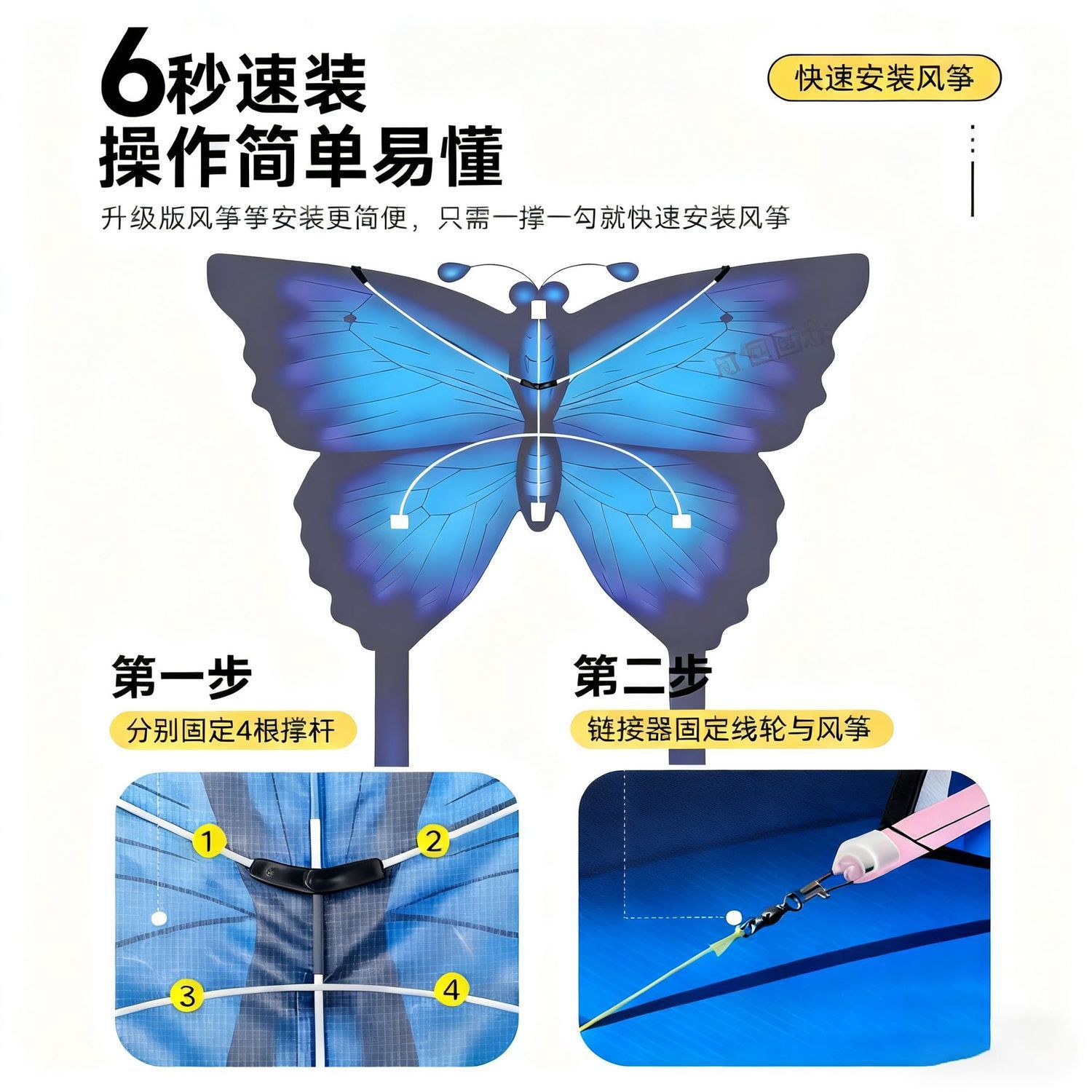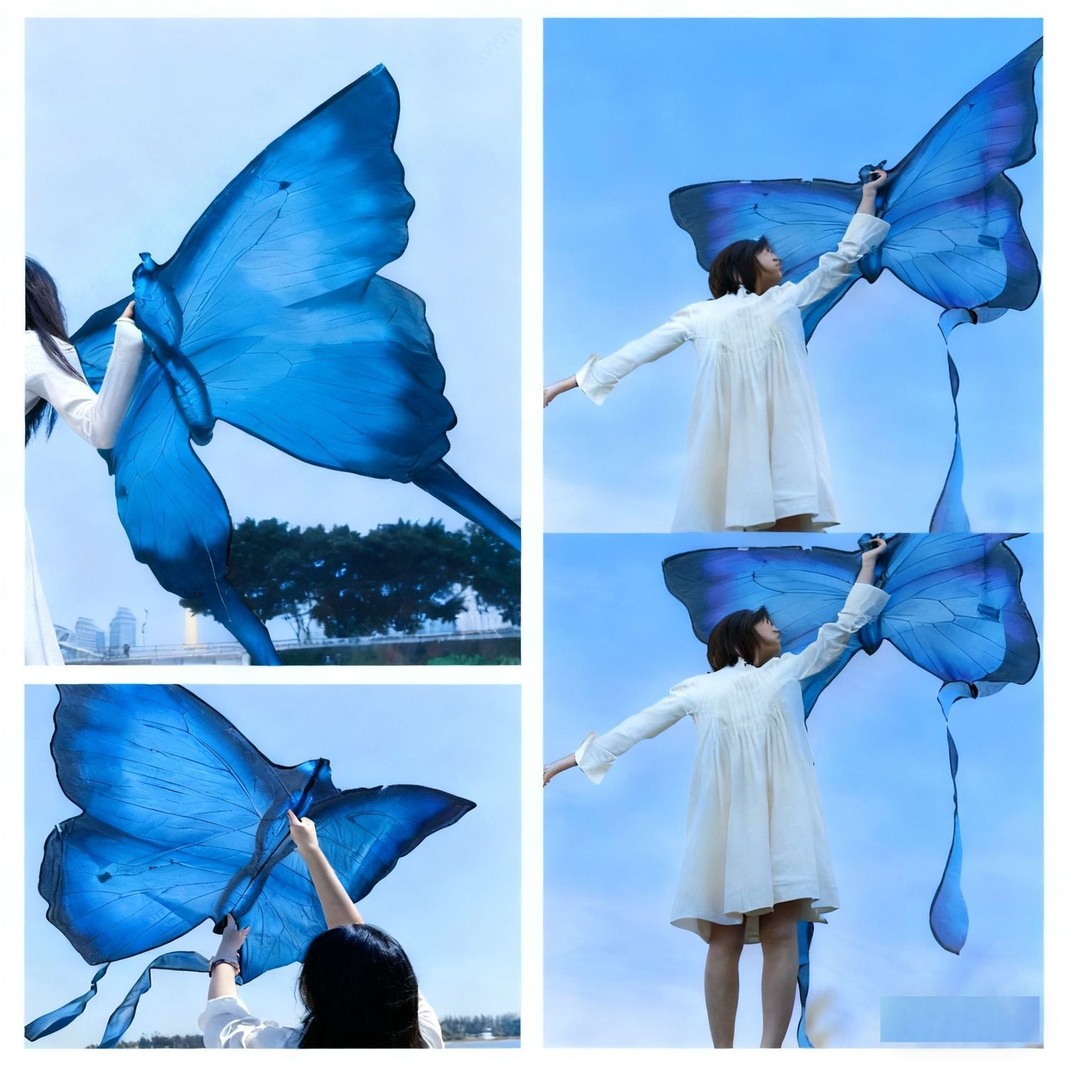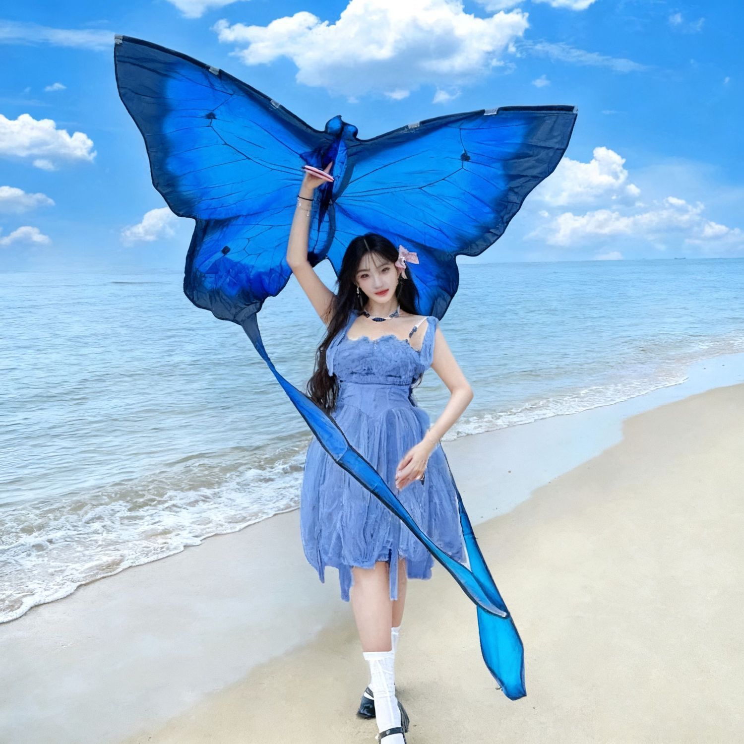 蓝色蝴蝶风筝高颜值拍照儿童成人专用秋天拍照潍坊风筝地摊批发