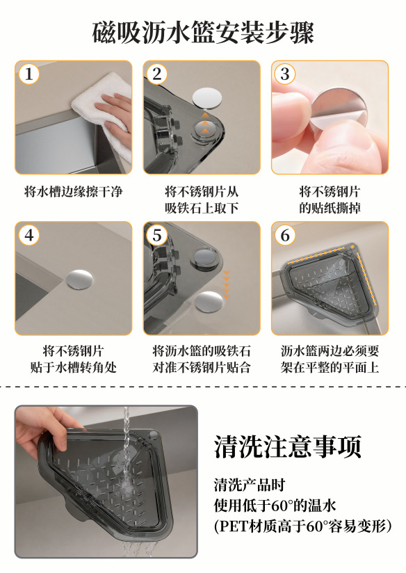 磁吸水槽过滤篮可挂式沥水篮厨房清洁食物残渣剩菜滤水篮新款