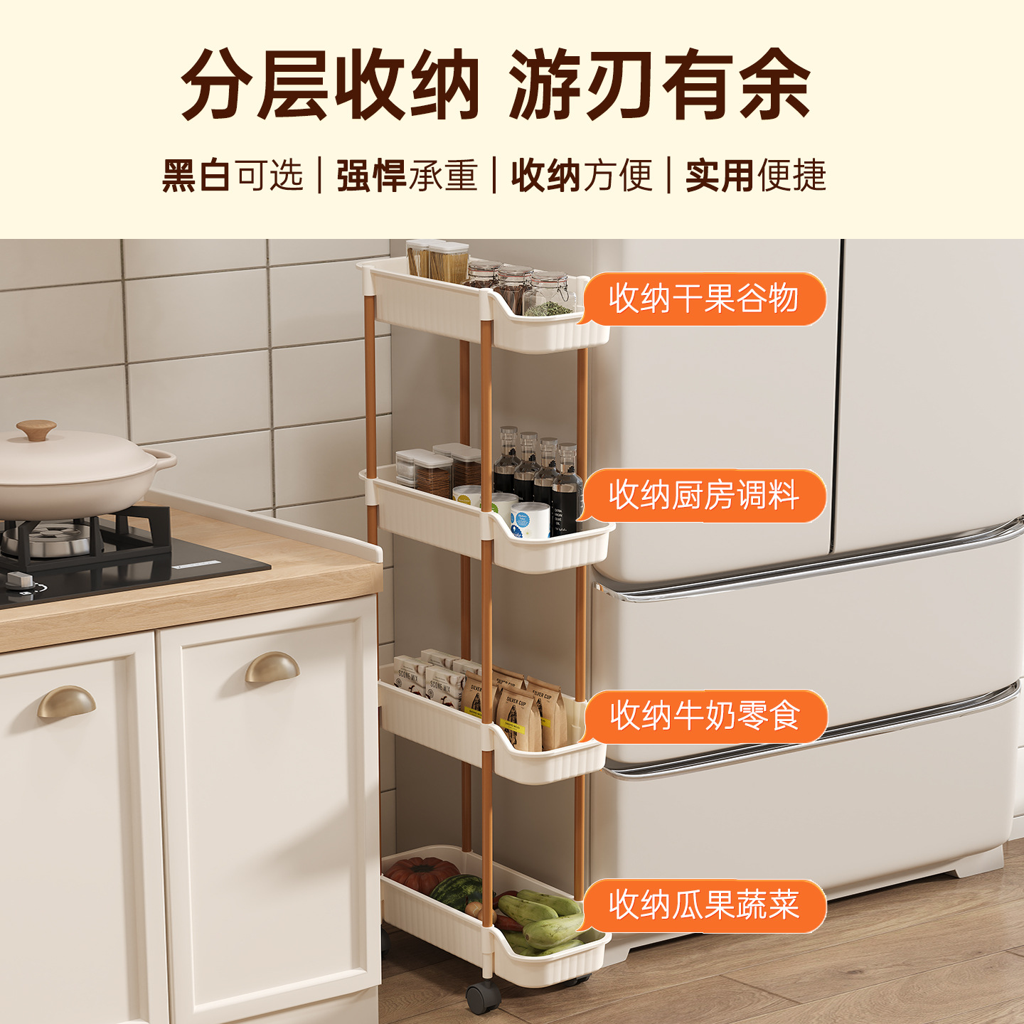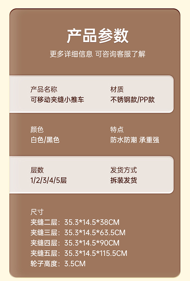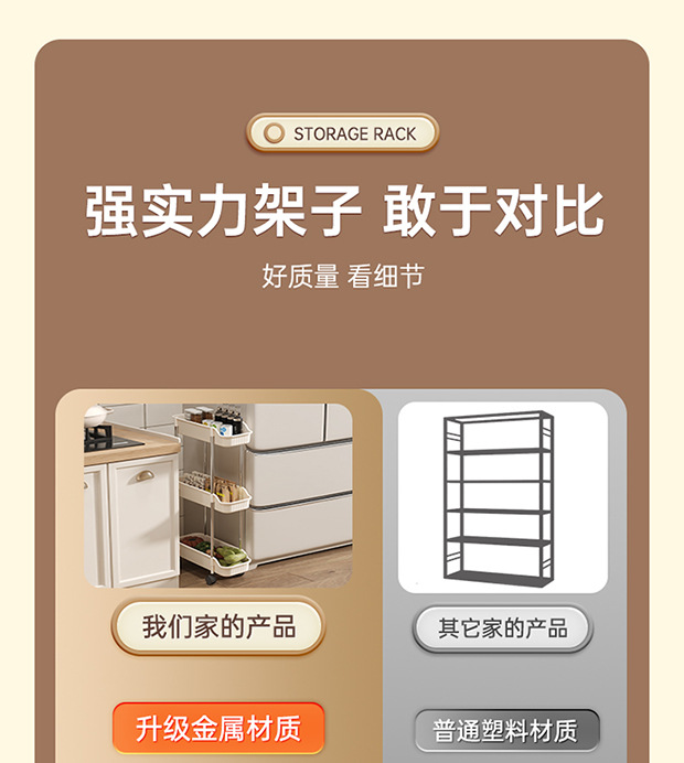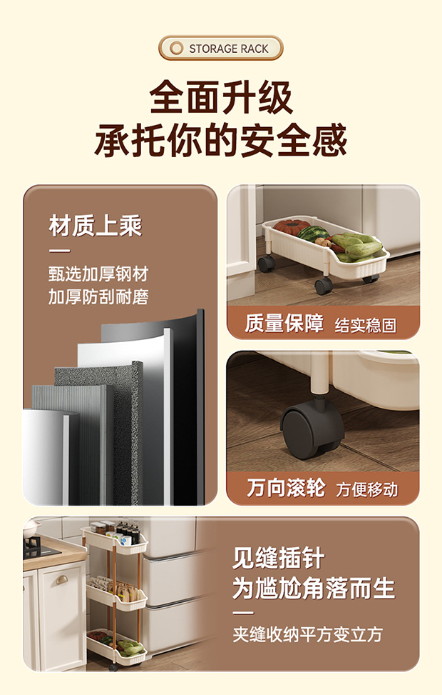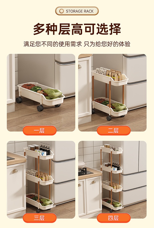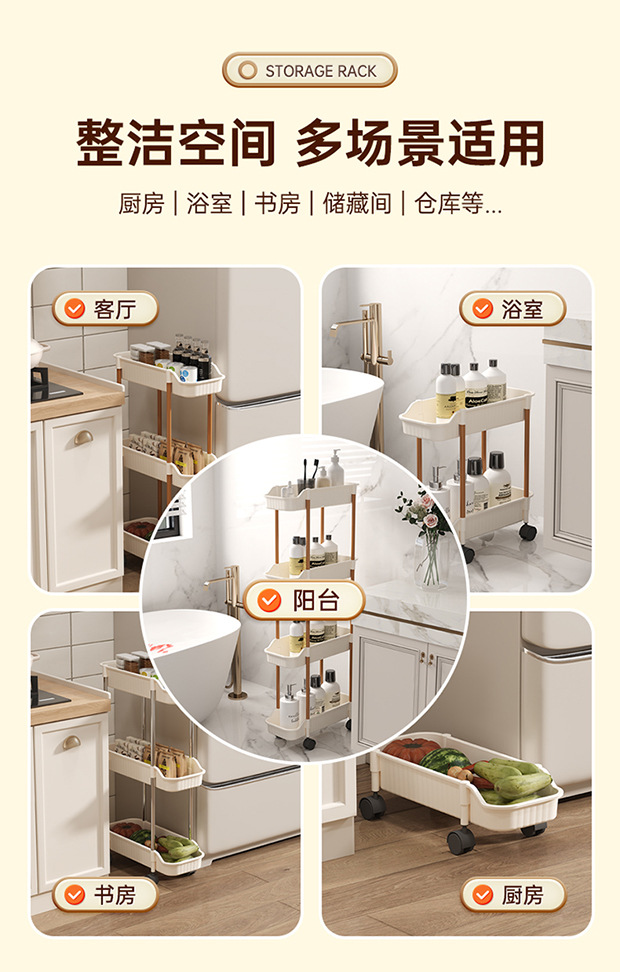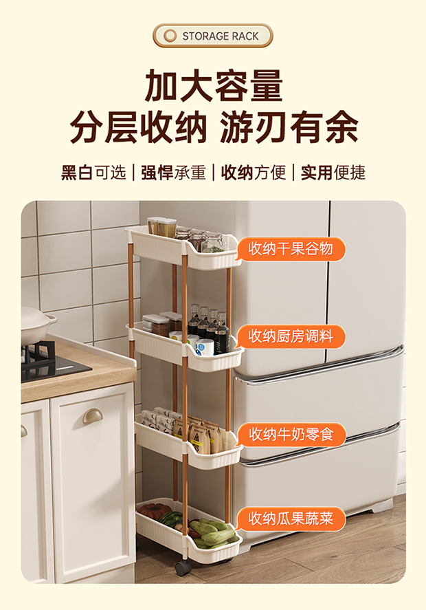 夹缝小推车置物架移动落地家用客厅零食厨房多层超窄收纳置物架