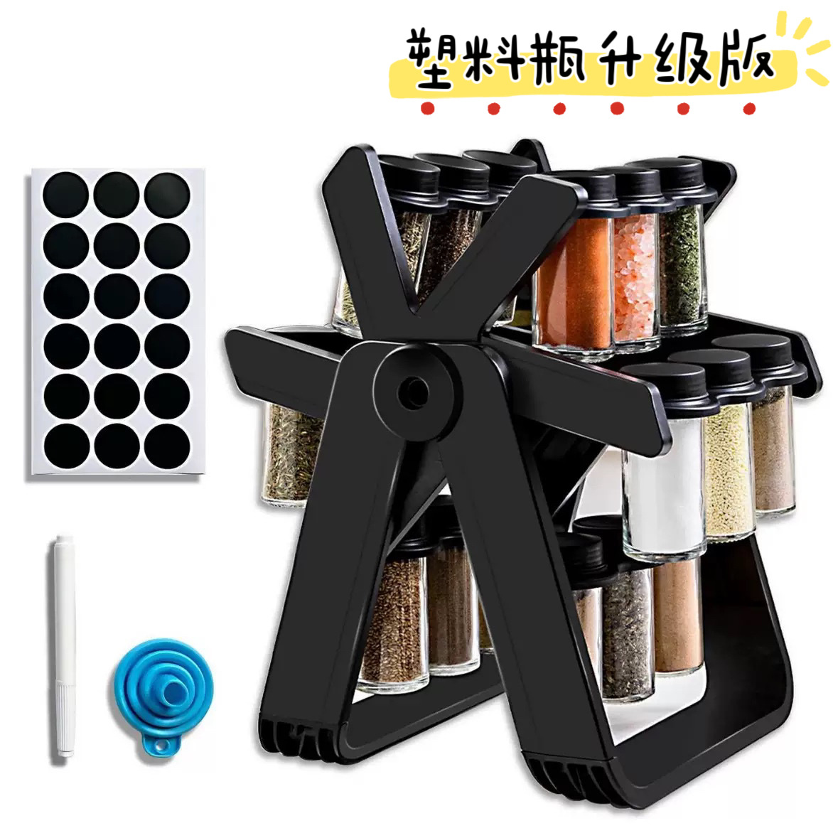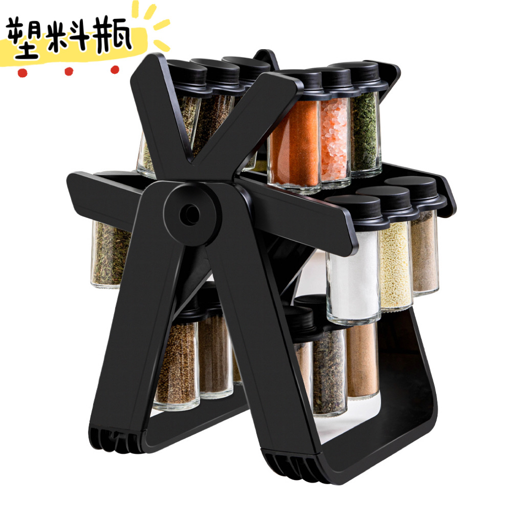 跨境亚马逊旋转调味置物架厨房专用玻璃调味瓶架旋转调料架