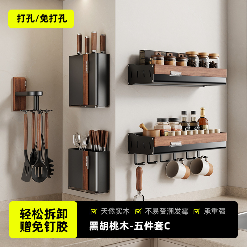 胡桃木壁挂式厨房置物架多功能案板砧板菜板放置架收纳挂架免打孔