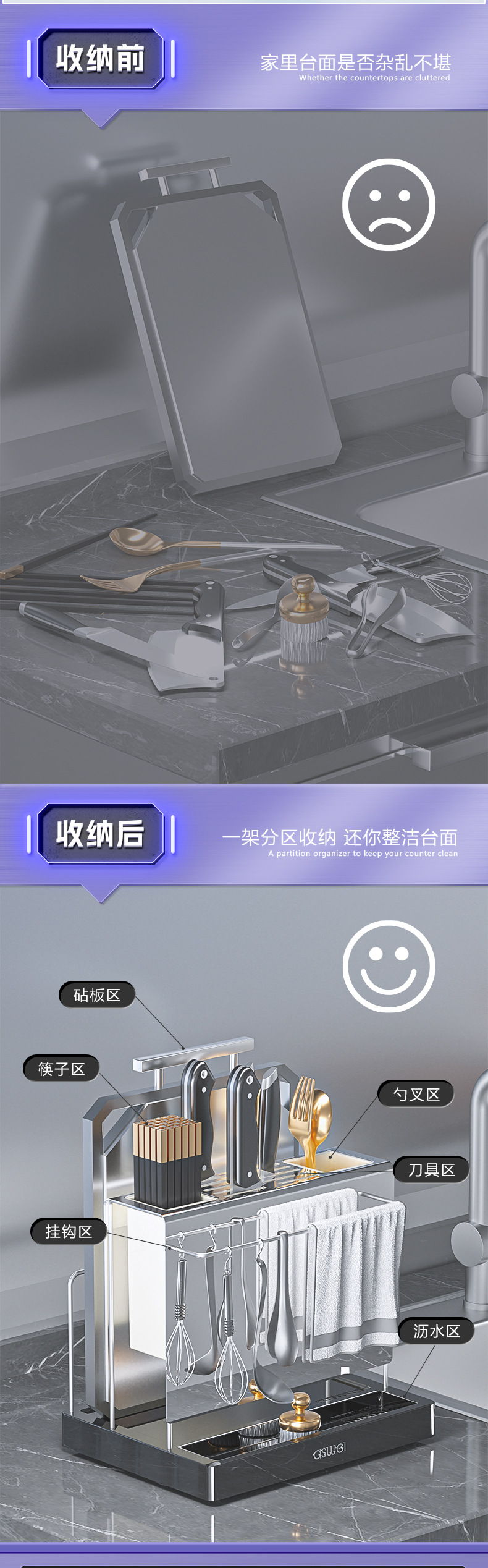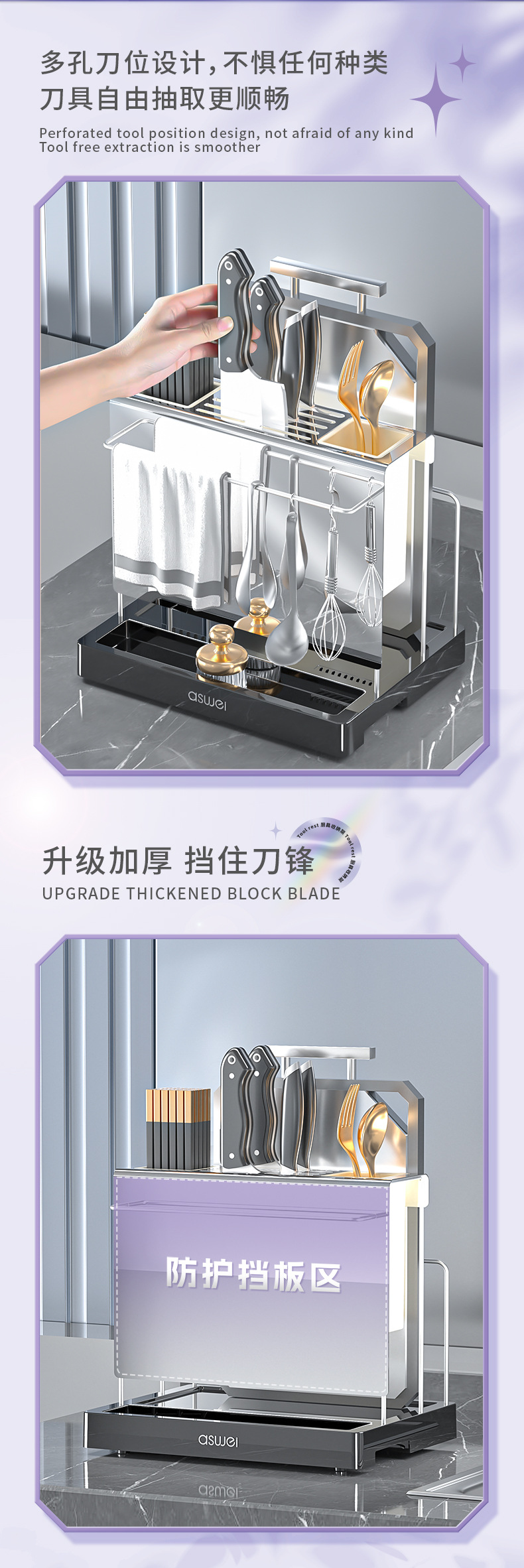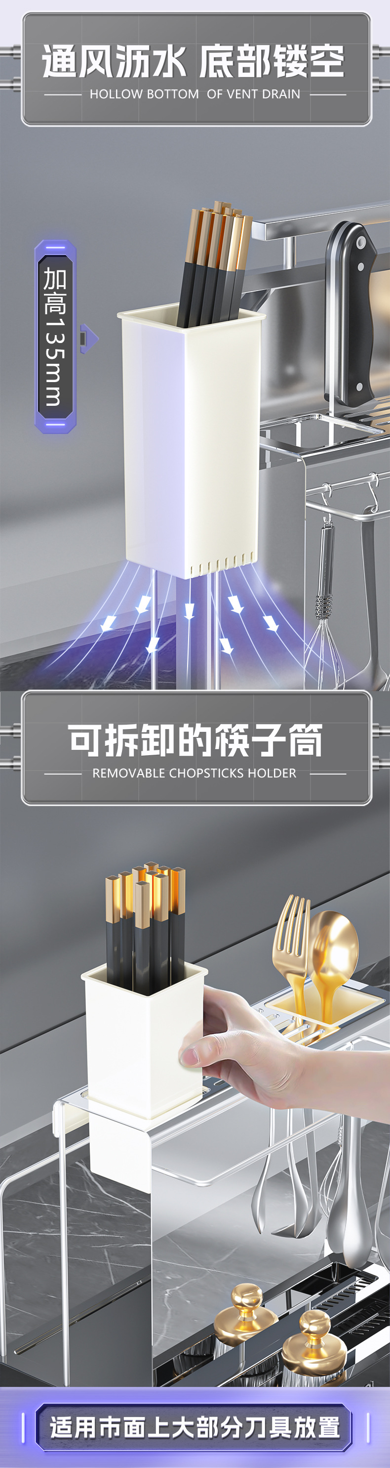 刀架置物架多功能厨房台面菜刀架砧板筷子筒整理架刀具一体收纳架