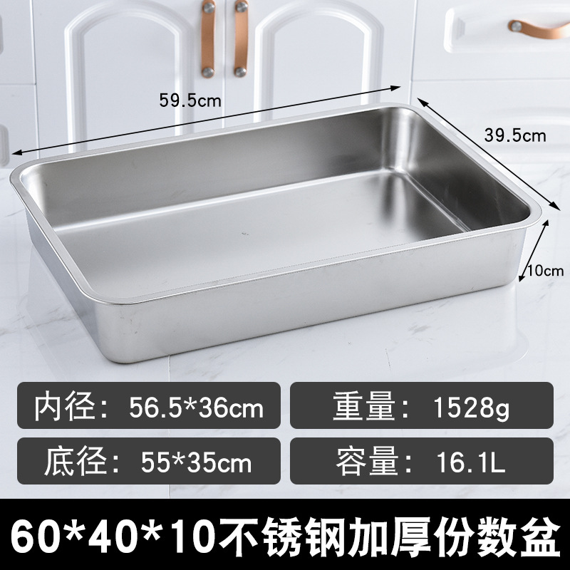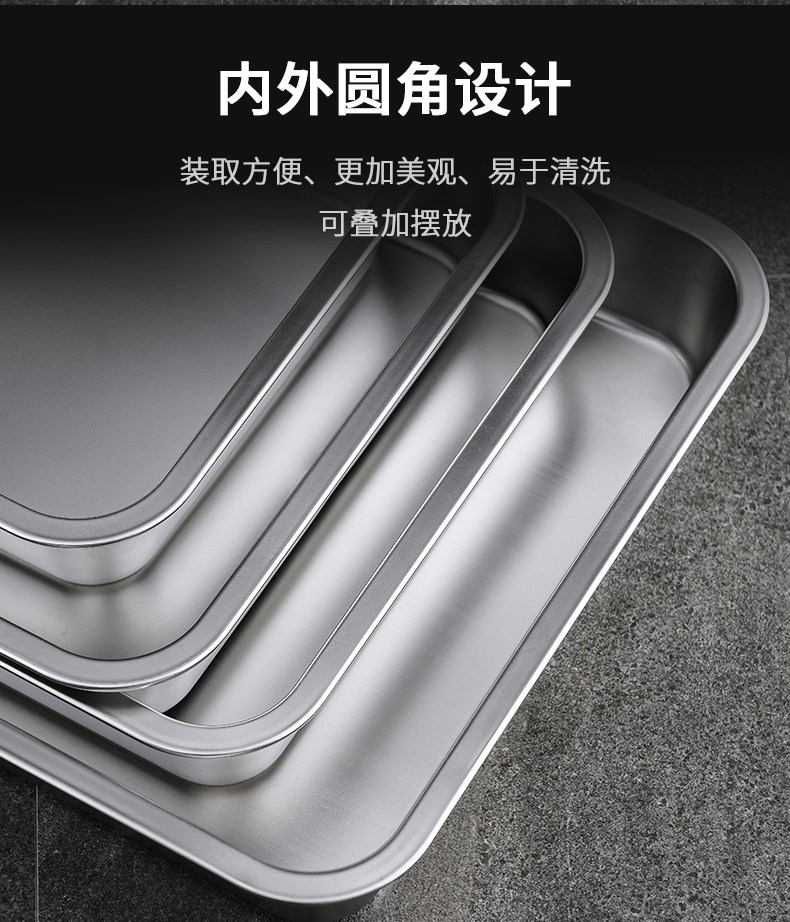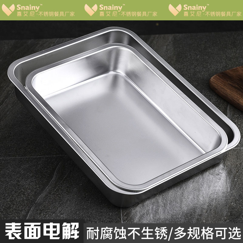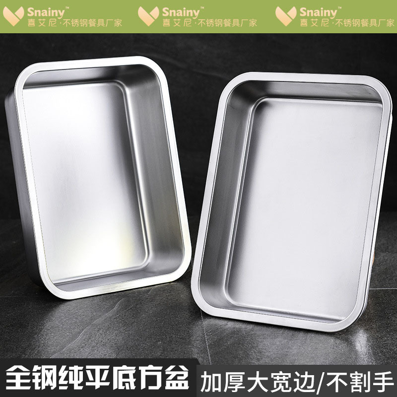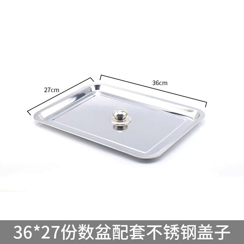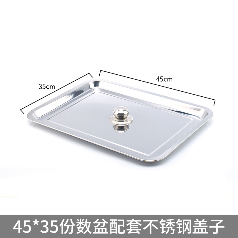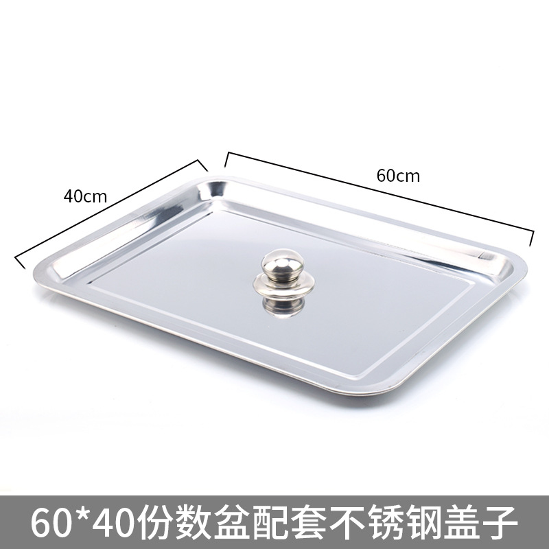 不锈钢加深加厚方盘 平底长方形蒸饭盘 自助餐盘子带盖托盘快餐盆