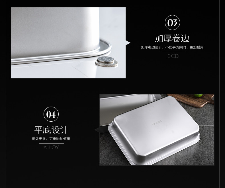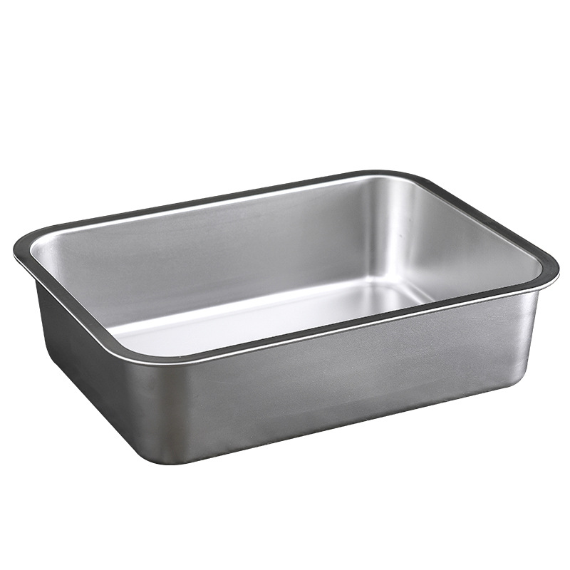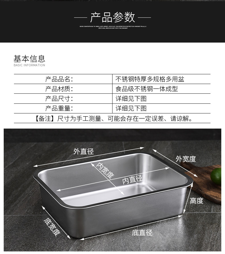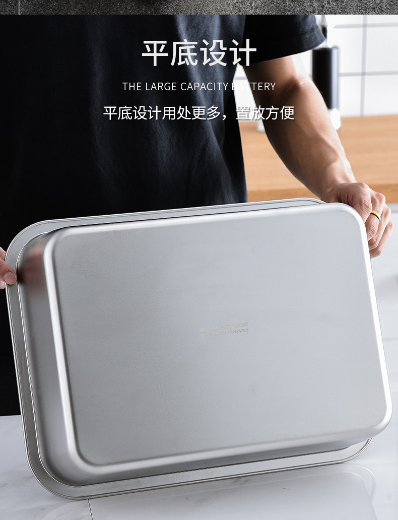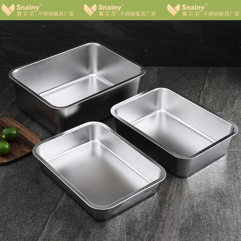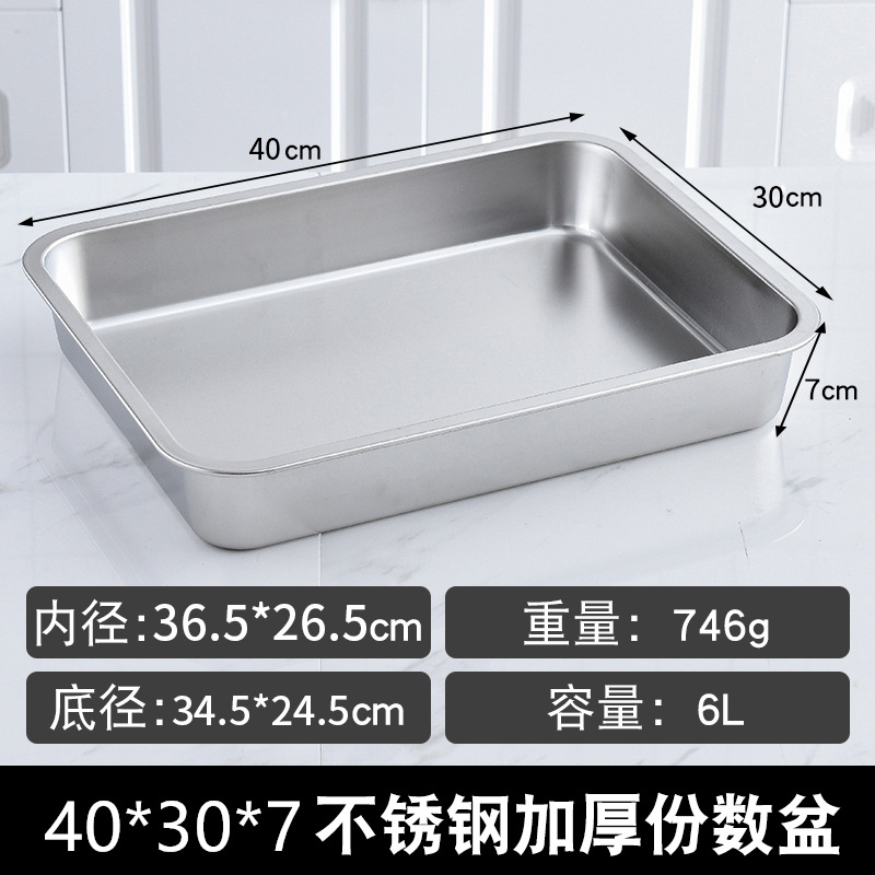 不锈钢加深加厚方盘 平底长方形蒸饭盘 自助餐盘子带盖托盘快餐盆