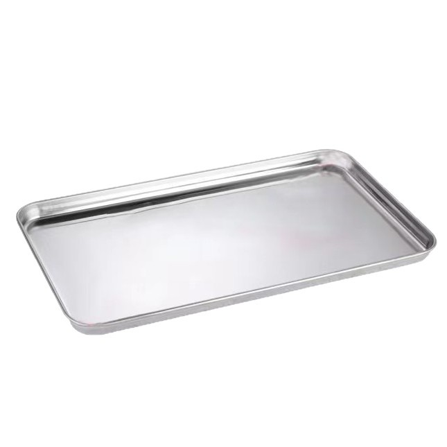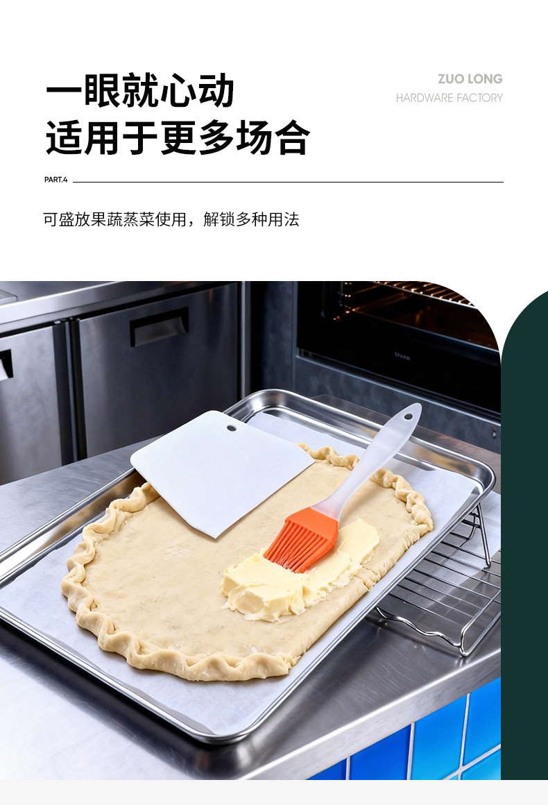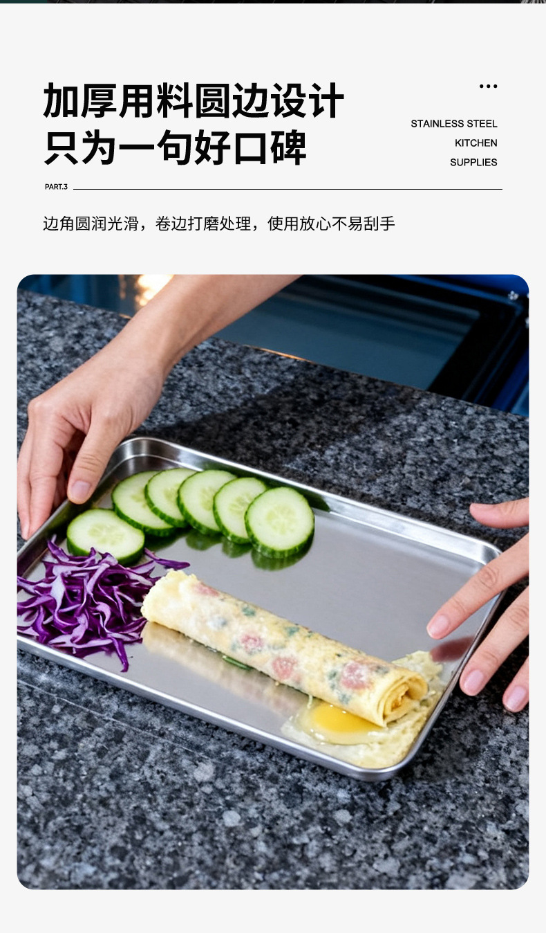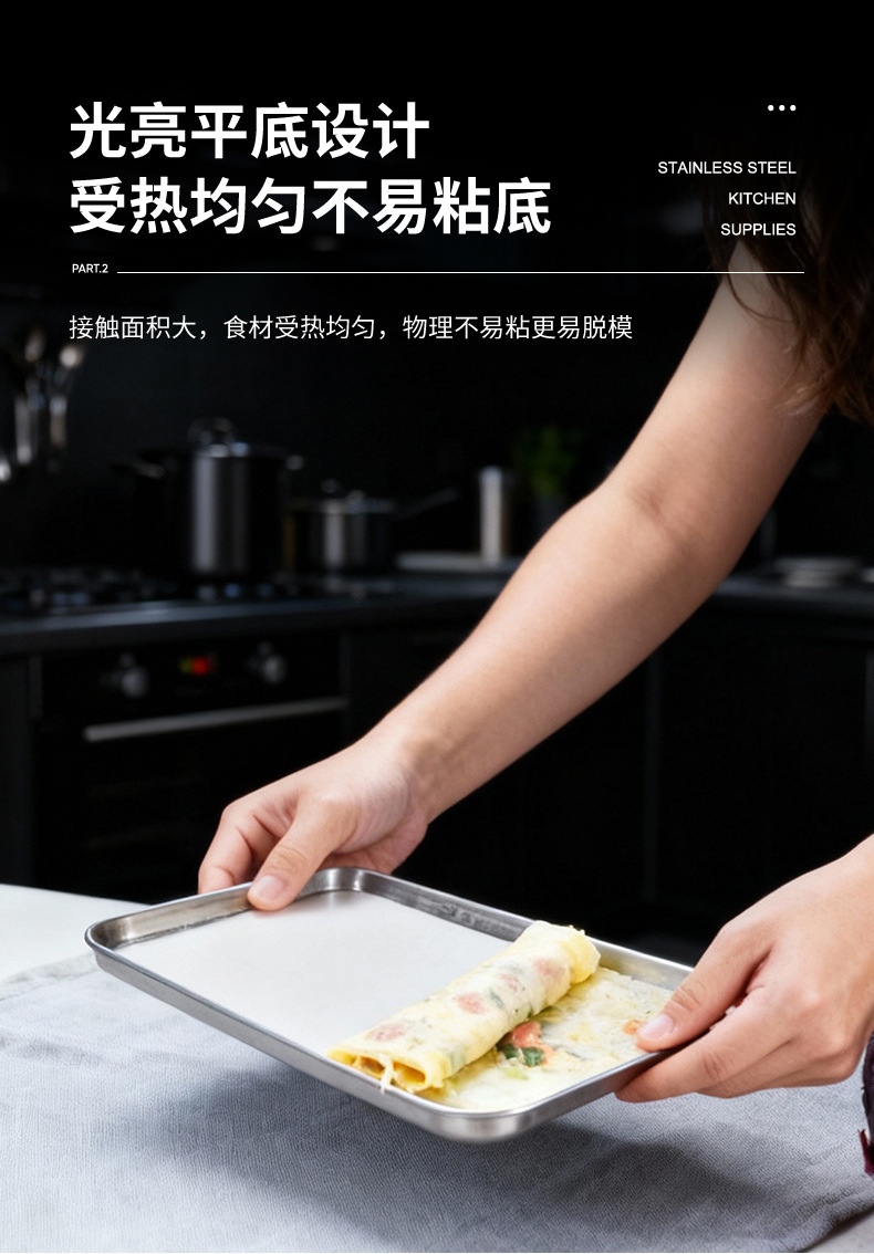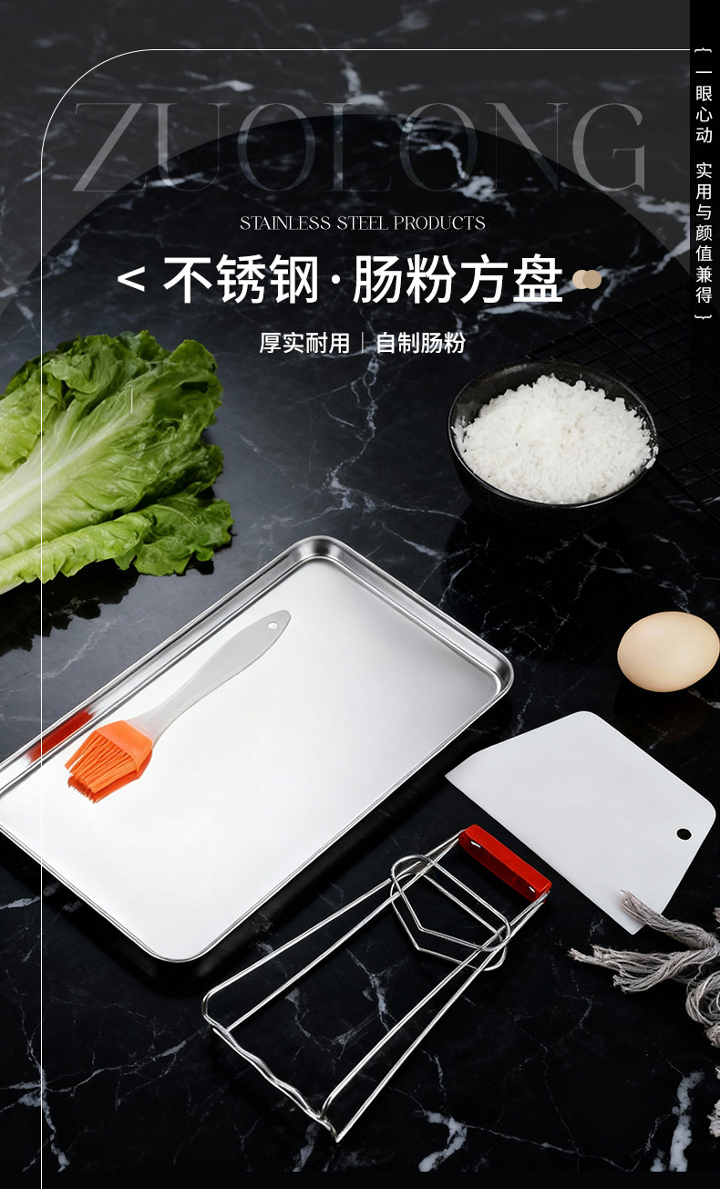 外贸日式肠粉蒸盘不锈钢凉皮盘卷边防刮手多用方盘烘焙托盘平底盘