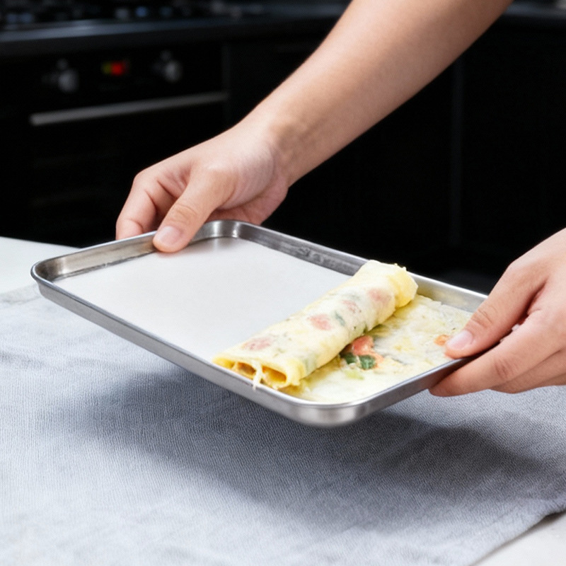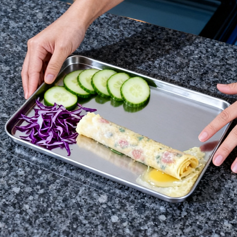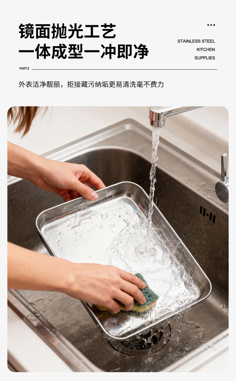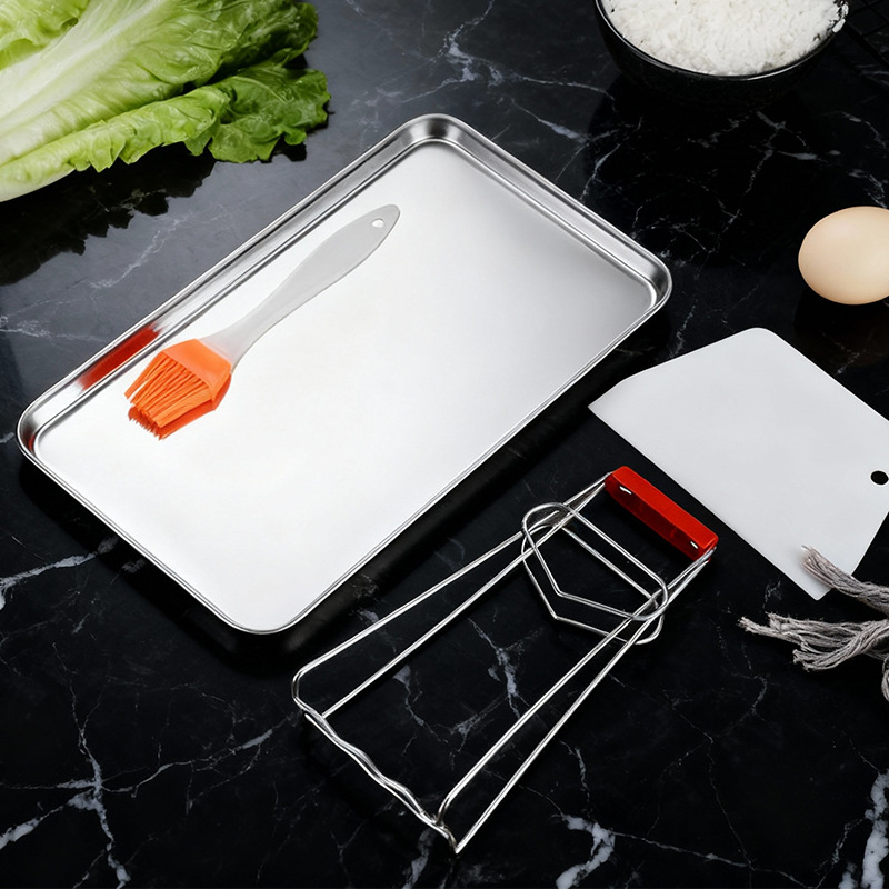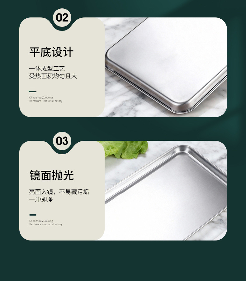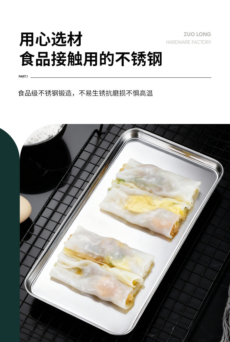 外贸日式肠粉蒸盘不锈钢凉皮盘卷边防刮手多用方盘烘焙托盘平底盘