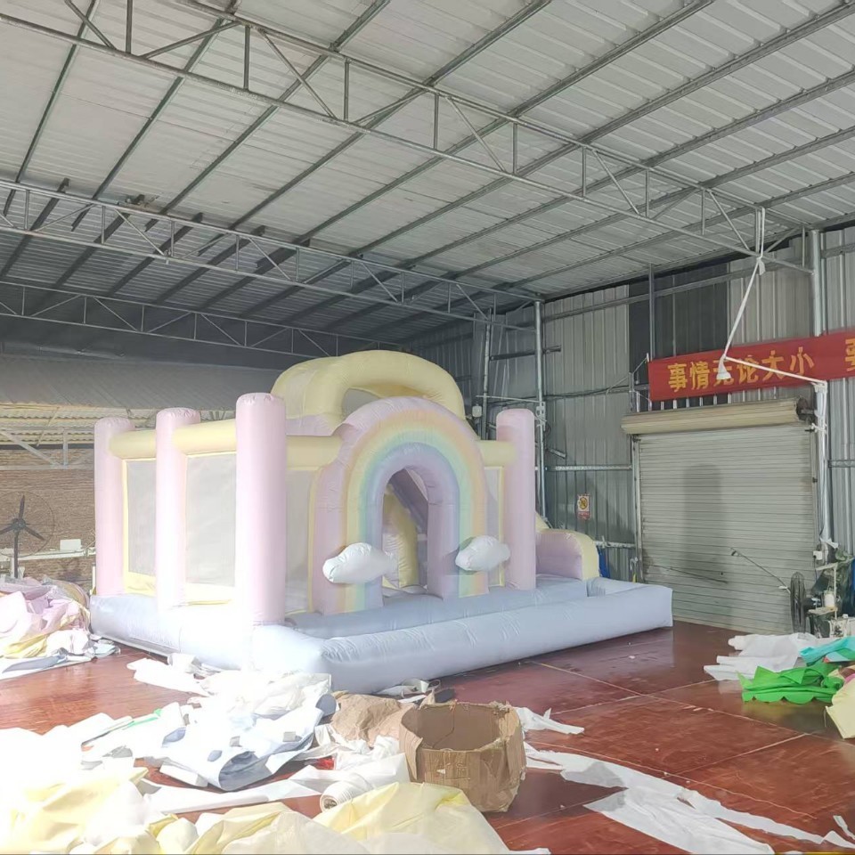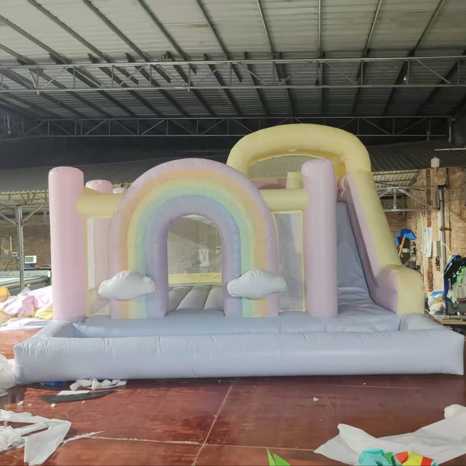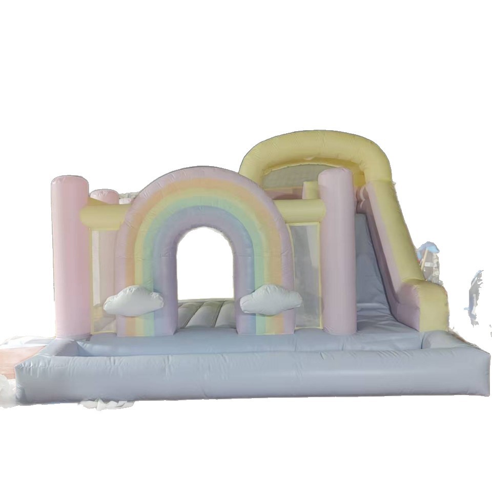 彩虹充气城堡儿童生日派对公园蹦蹦床家用跳床滑梯球池乐园