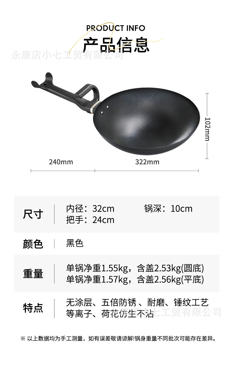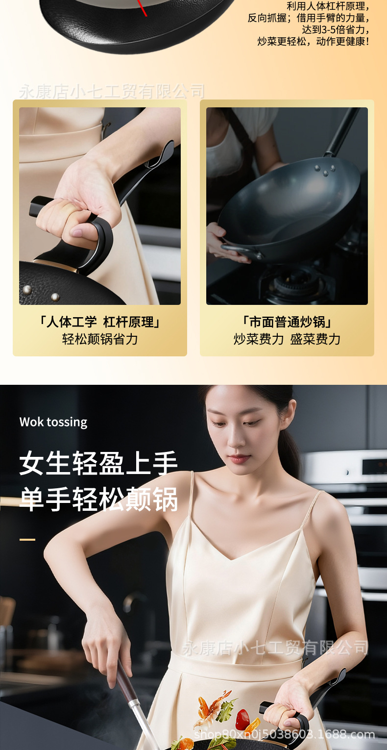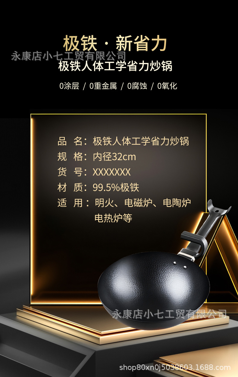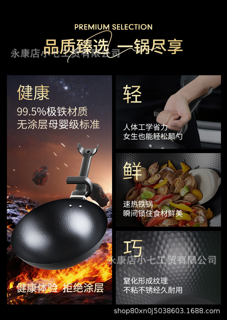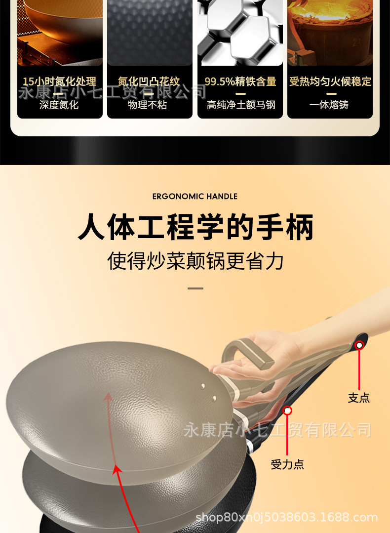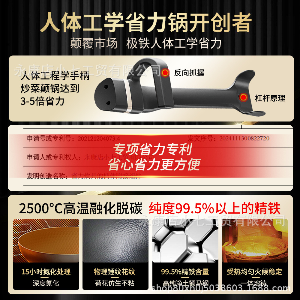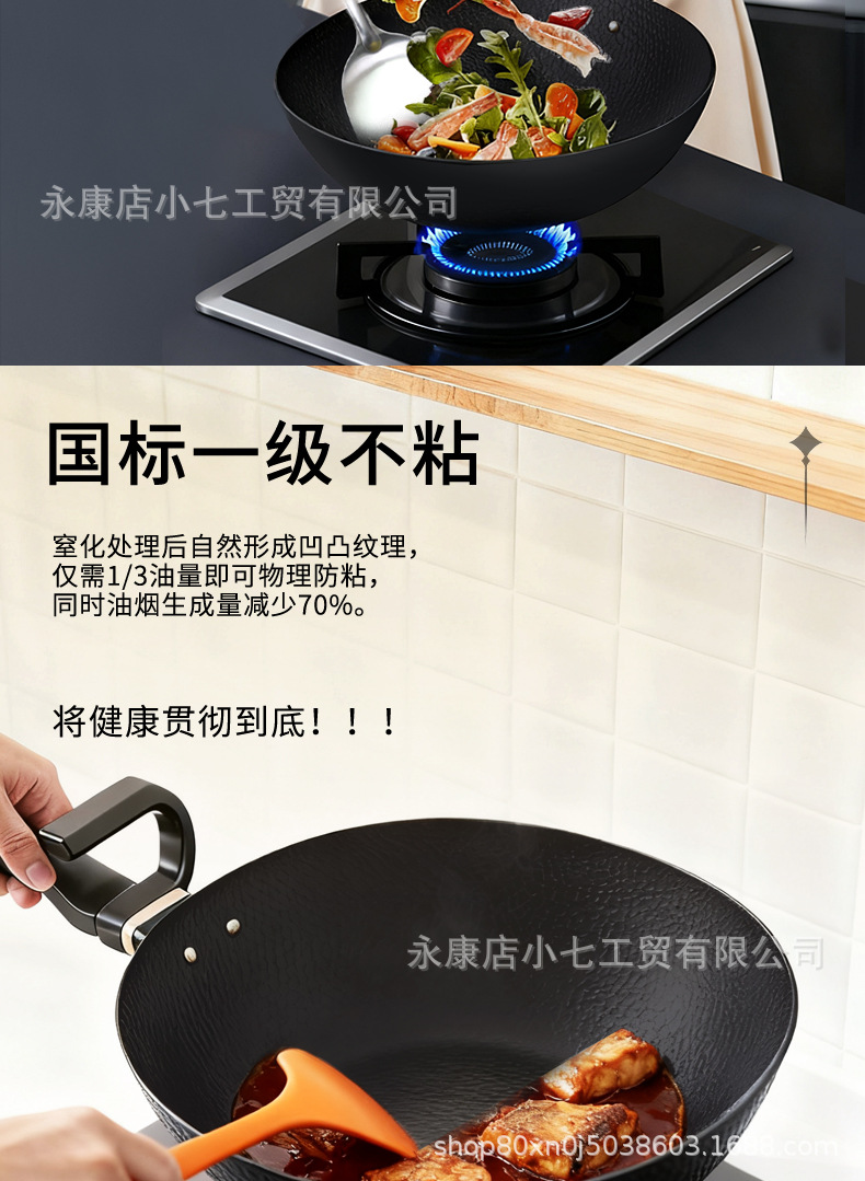 跨境专供批发极铁锤纹平底省力炒锅无涂层无油烟家用炒菜锅不粘锅