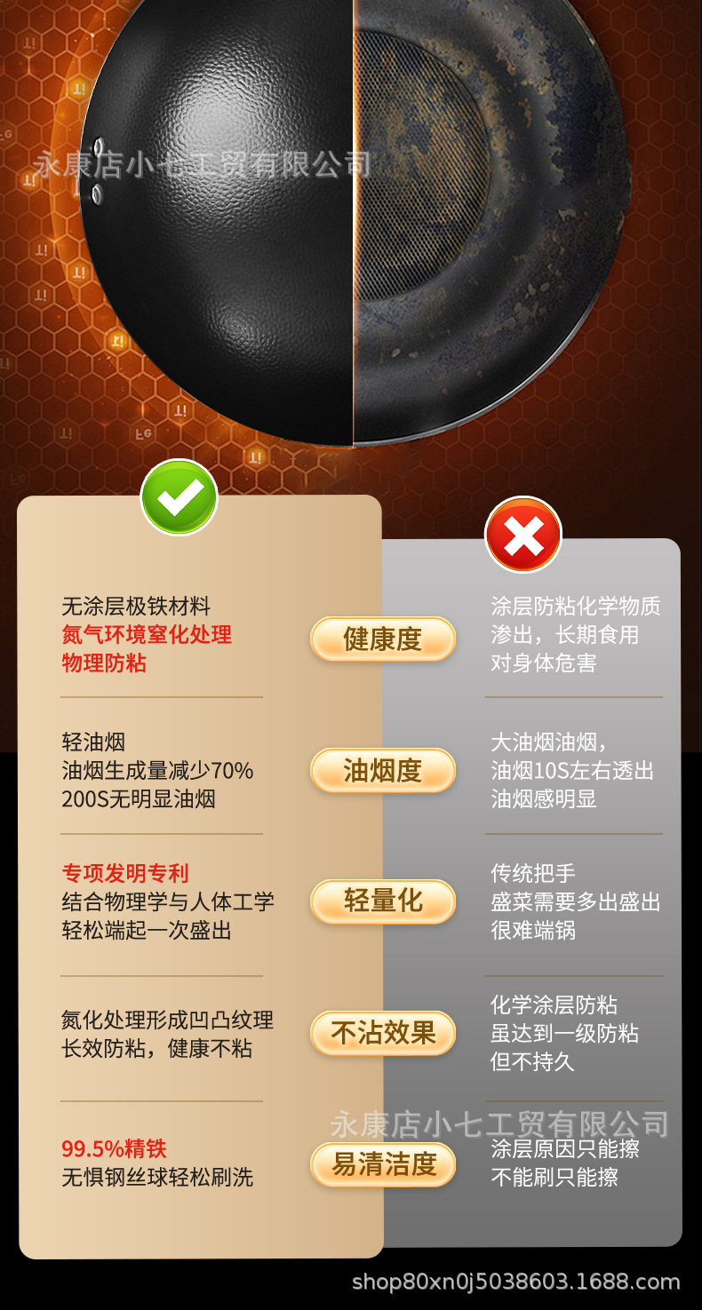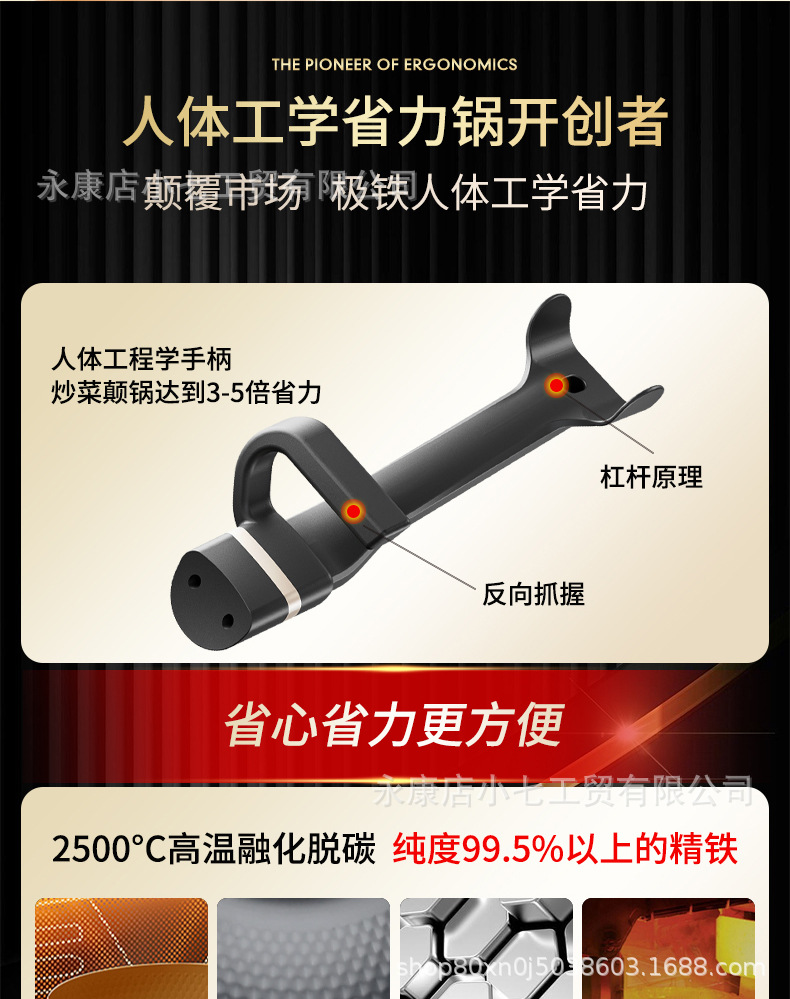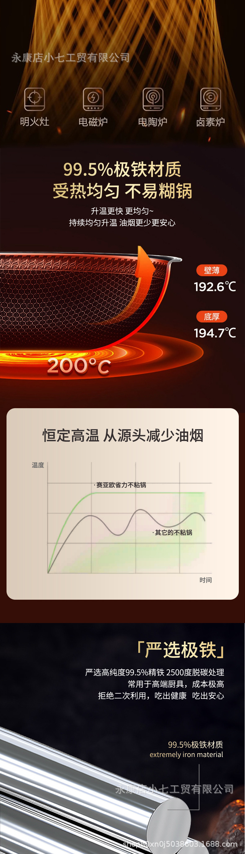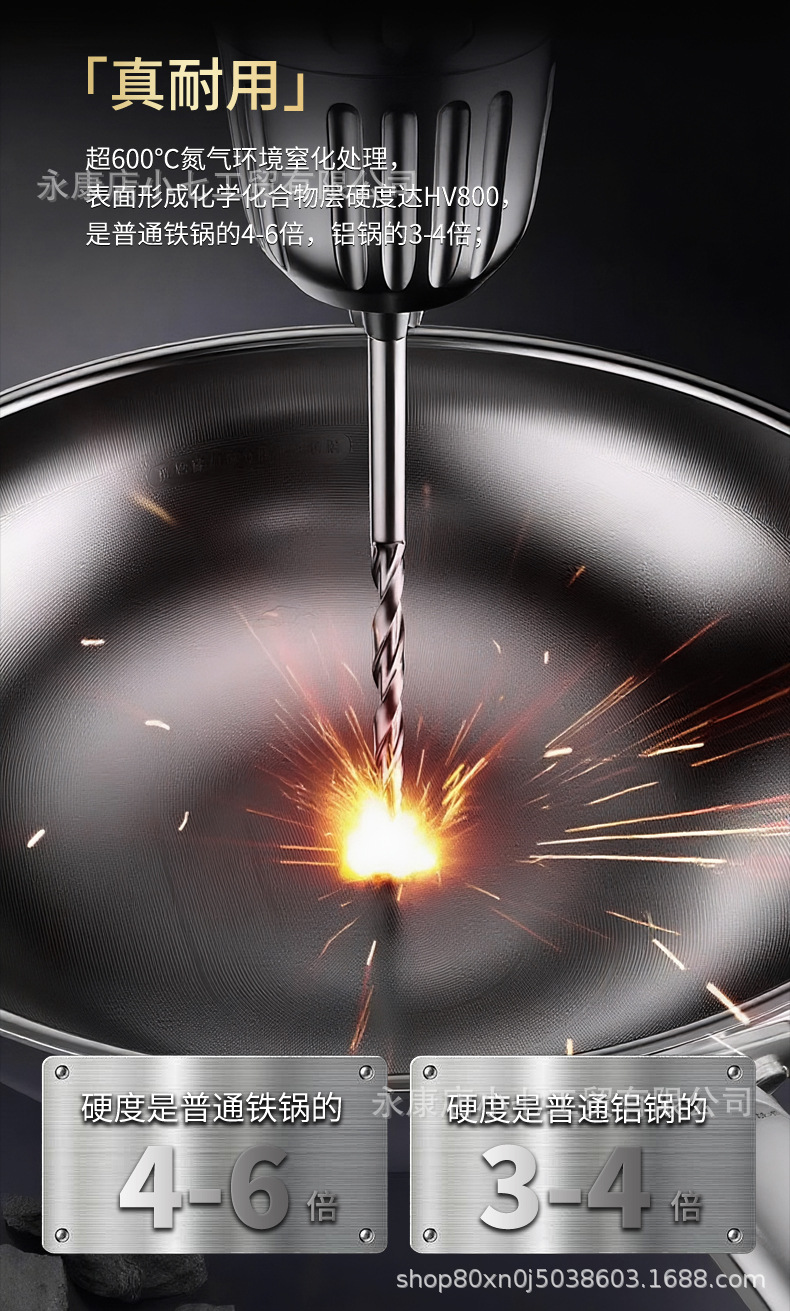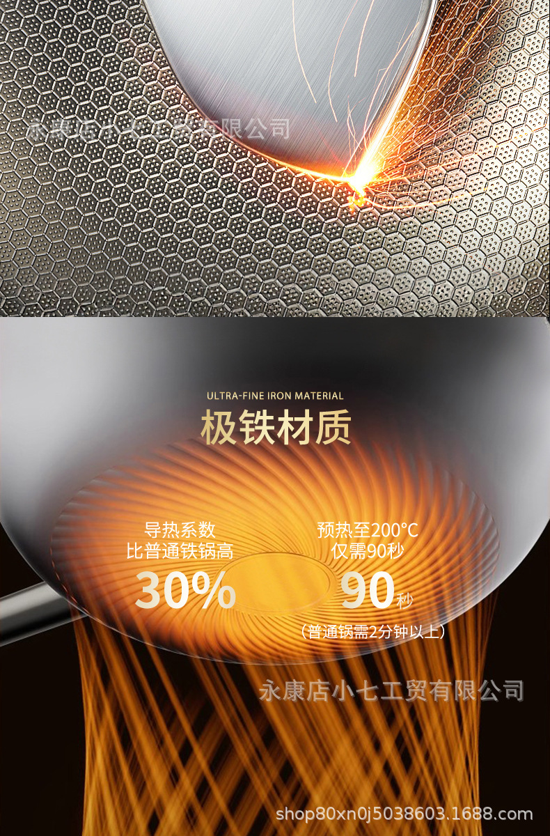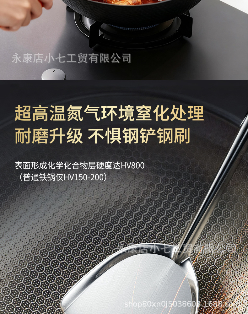 跨境专供批发极铁锤纹平底省力炒锅无涂层无油烟家用炒菜锅不粘锅