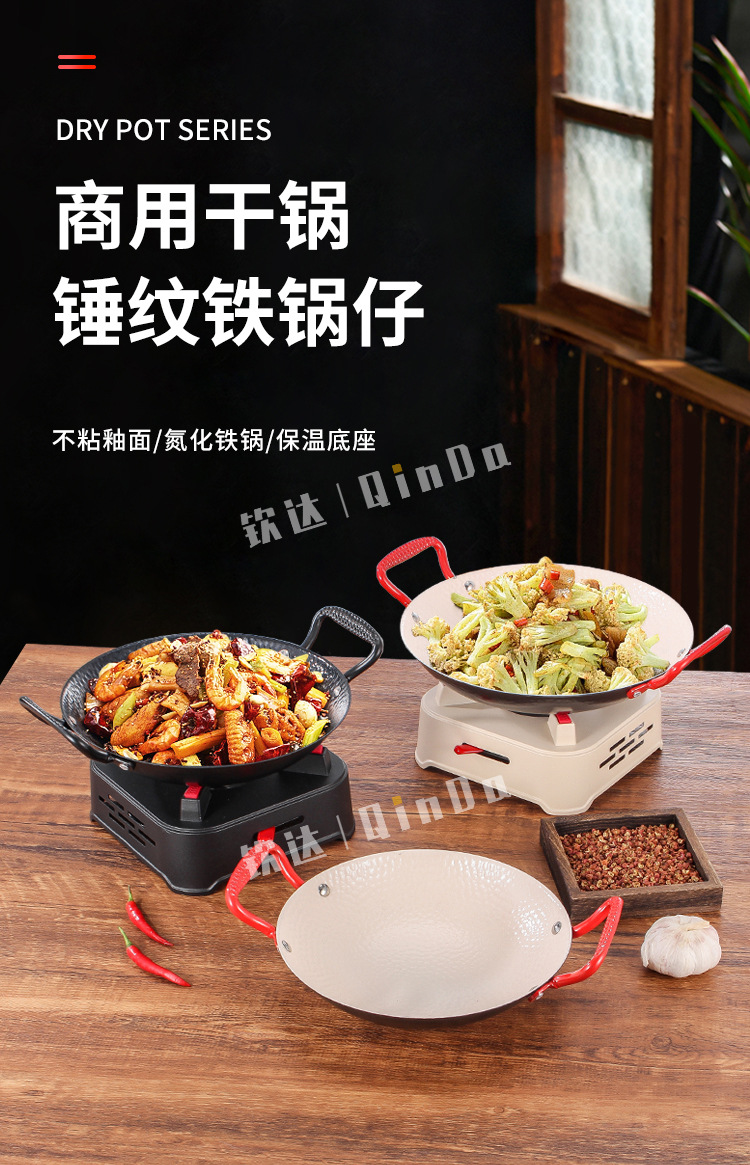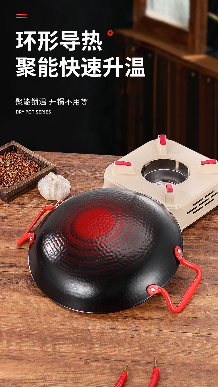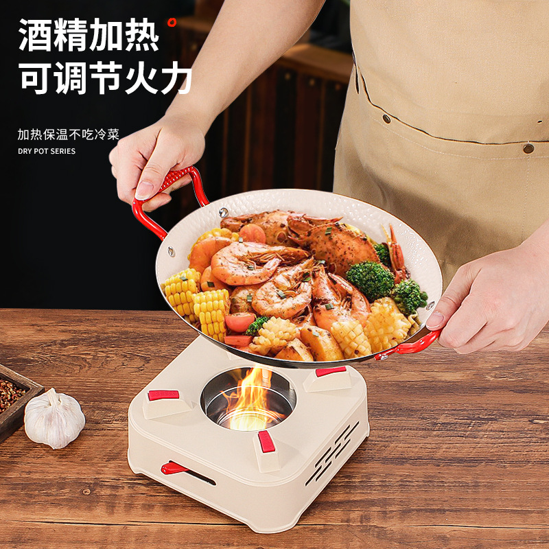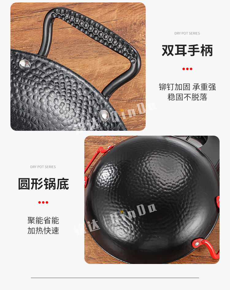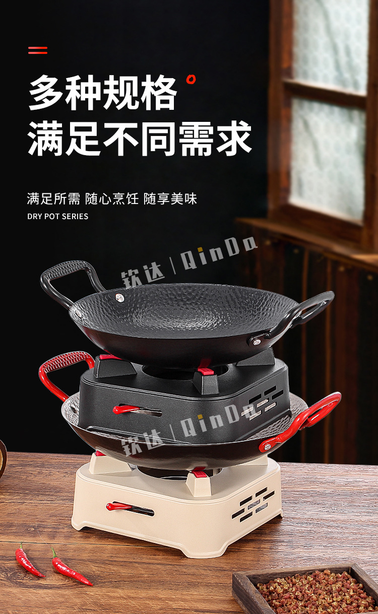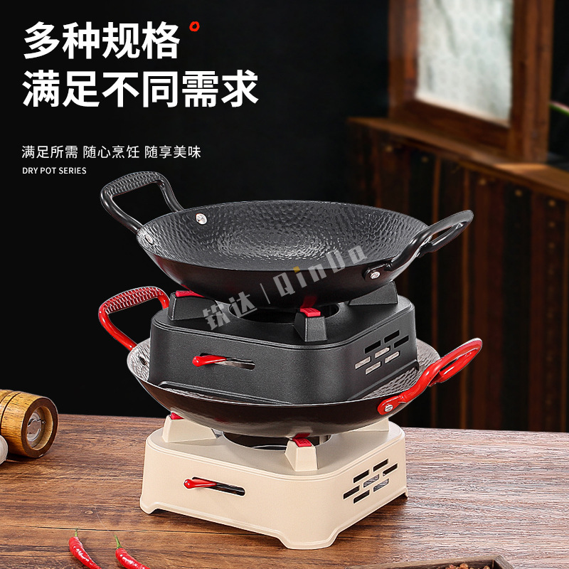 商用铁锅仔 饭店餐厅专用干锅锅具酒精炉明炉双耳加厚锅仔鼎批发