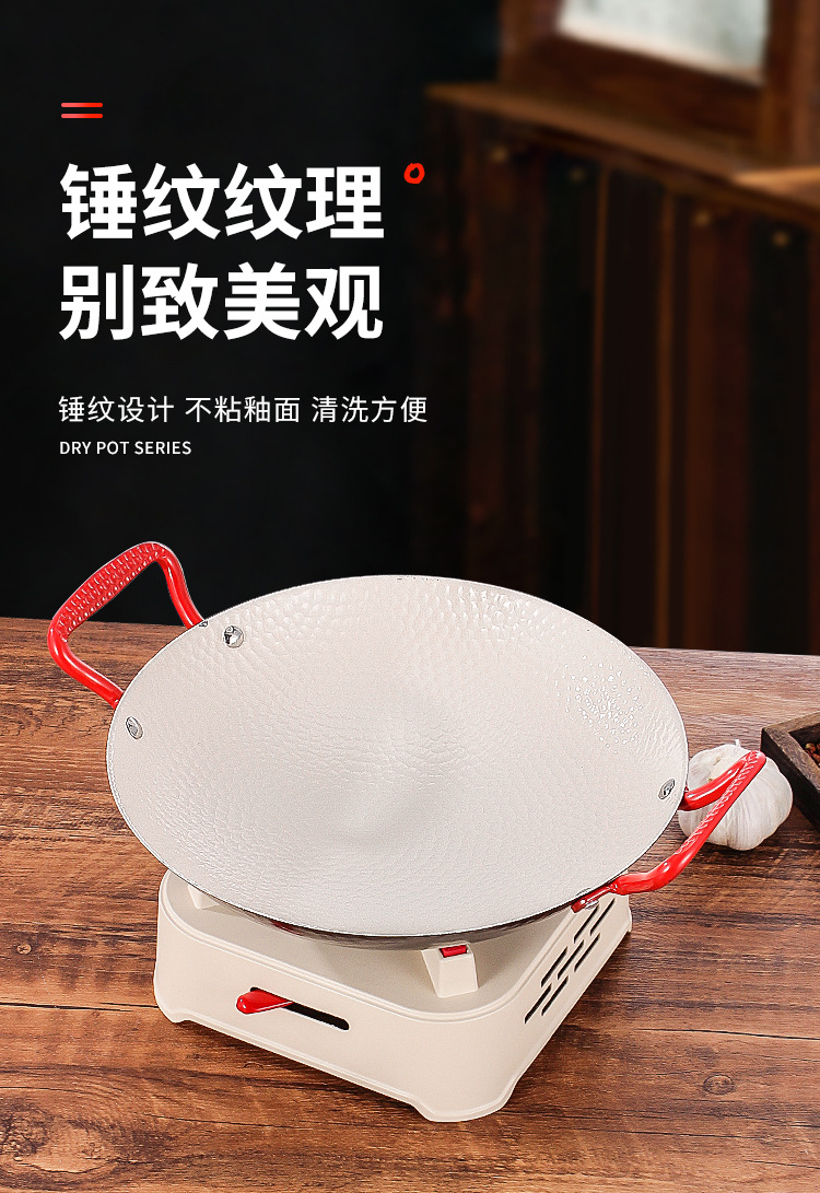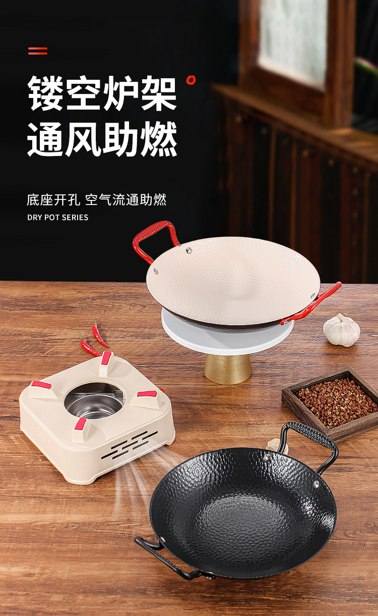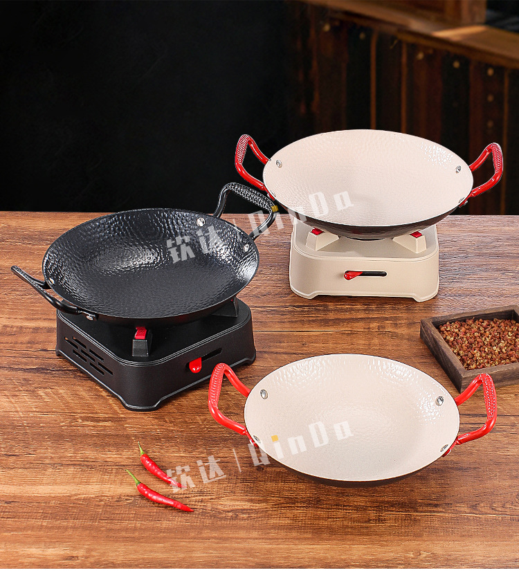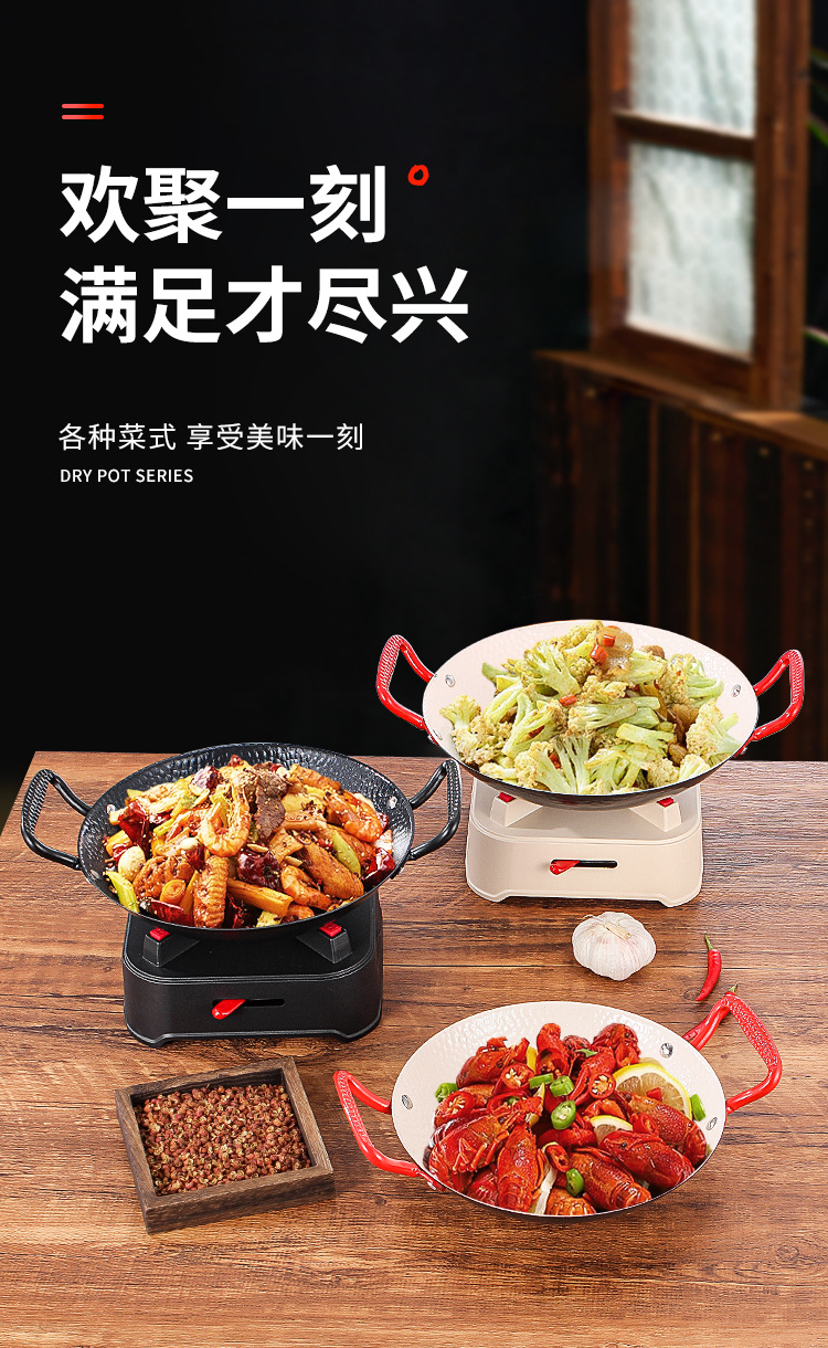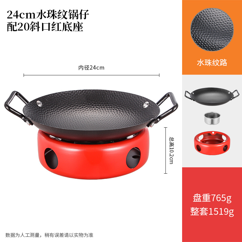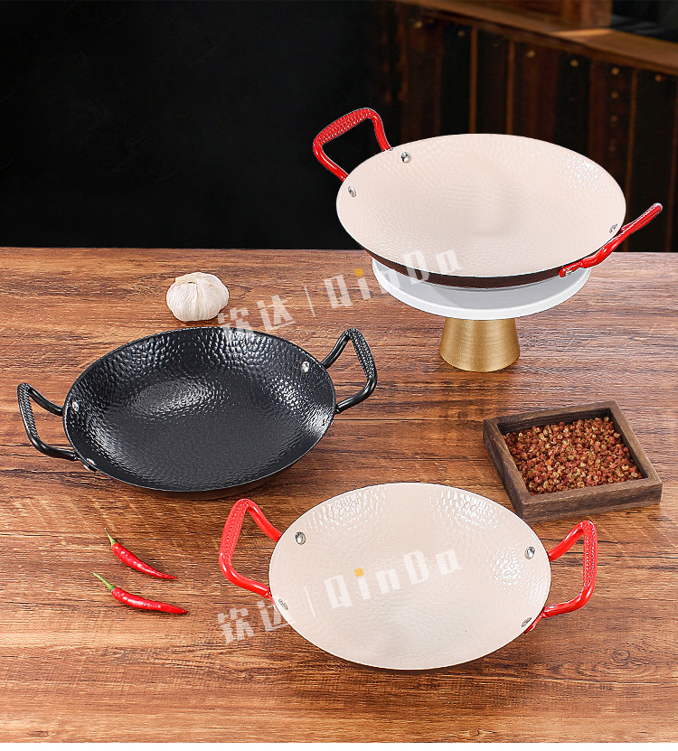 商用铁锅仔 饭店餐厅专用干锅锅具酒精炉明炉双耳加厚锅仔鼎批发
