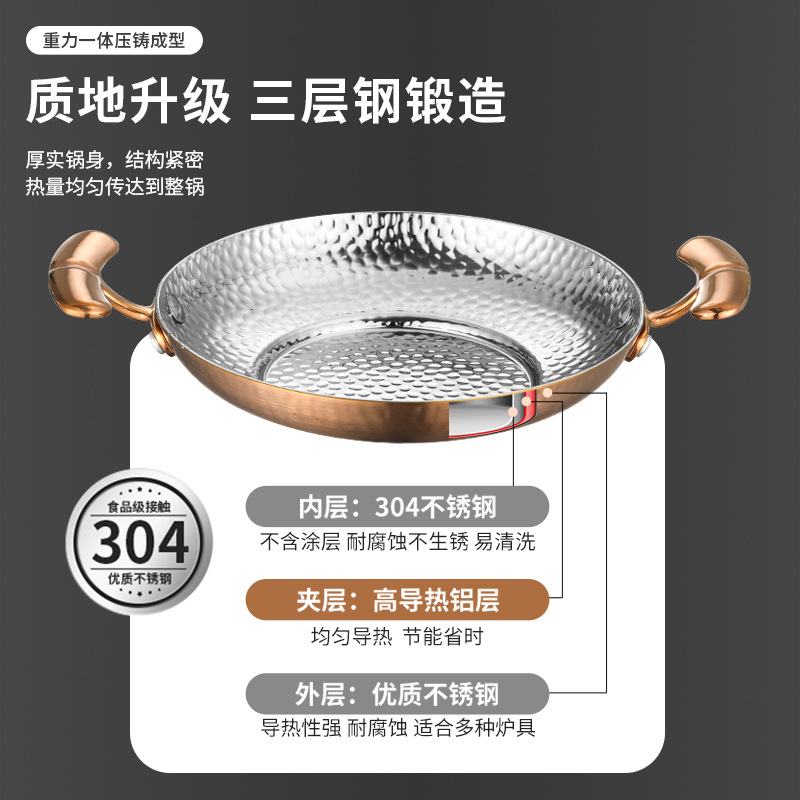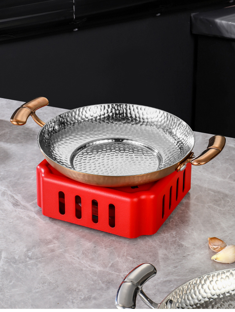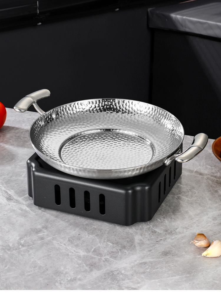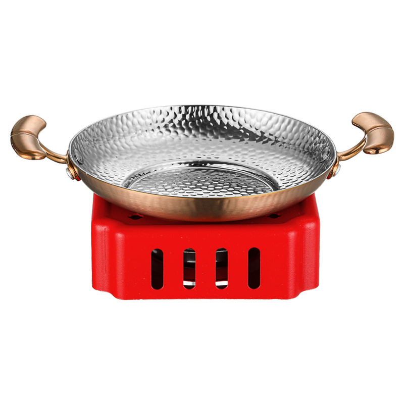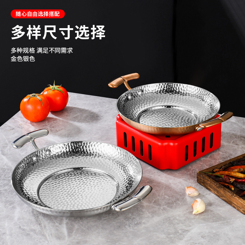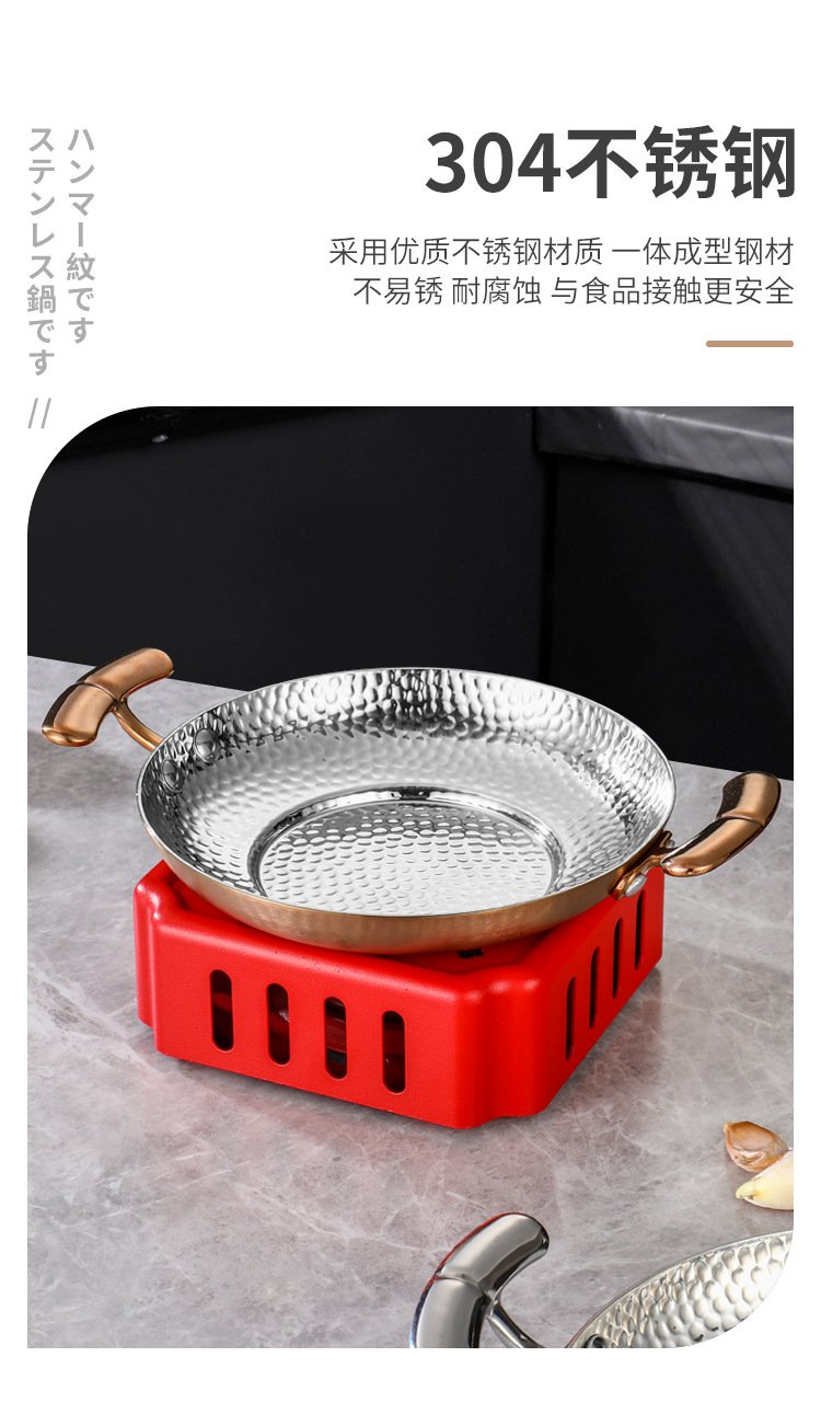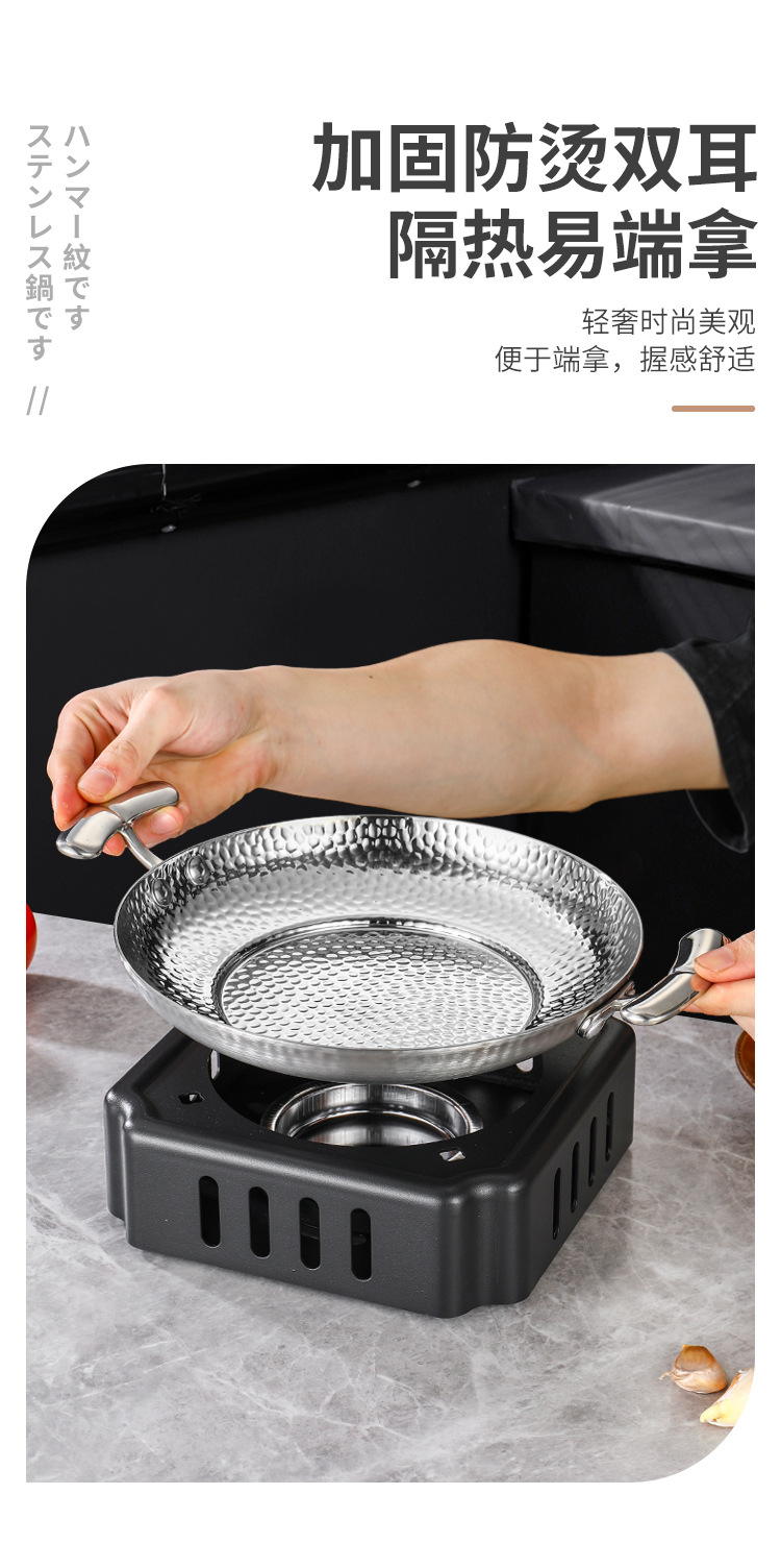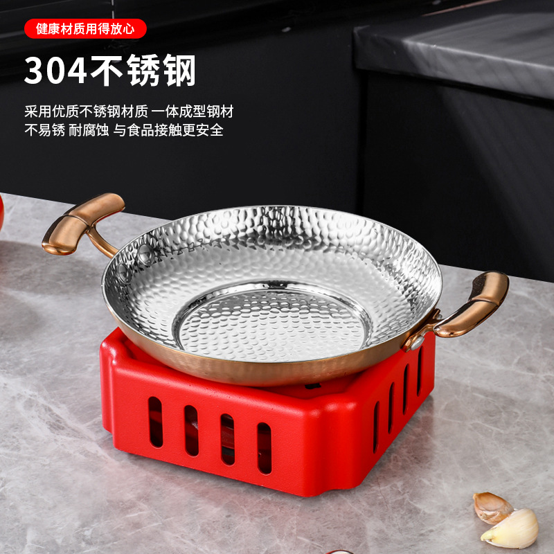 304不锈钢干锅锅具一套固体酒精炉双耳小锅仔饭店用保温小干锅炉